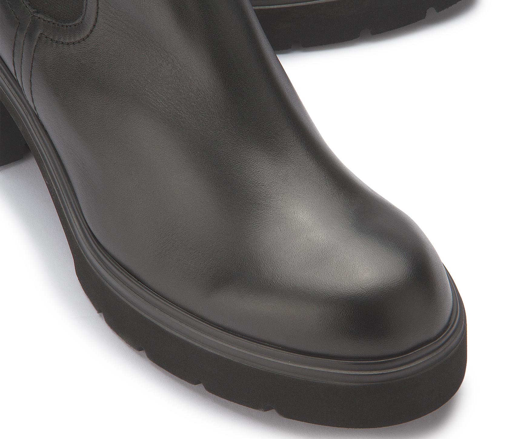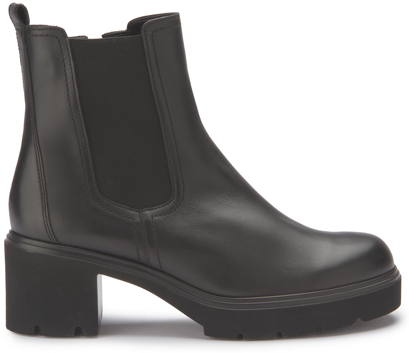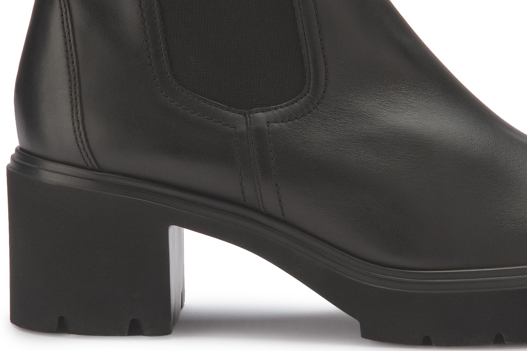 Simple Chelsea boot made from black leather with a stretch insert at the side. The comfortable block heel and profiled sole ensure comfort and a secure grip - a versatile companion for any occasion.