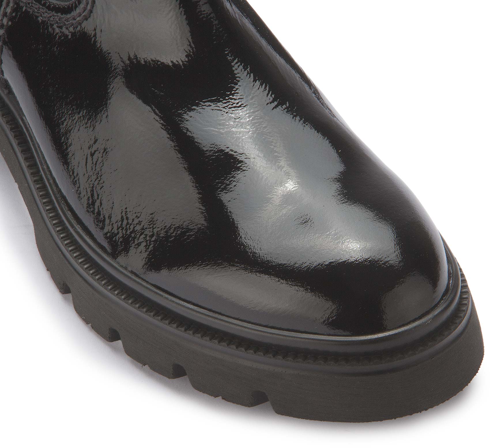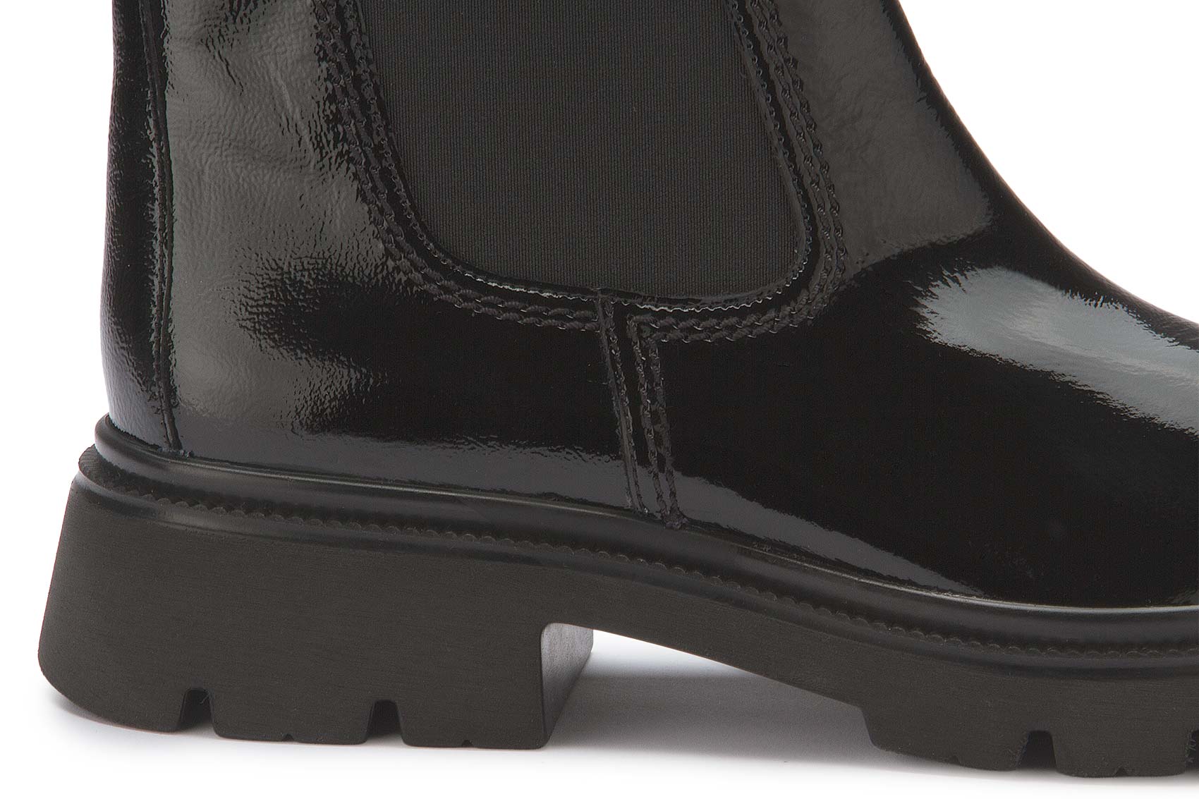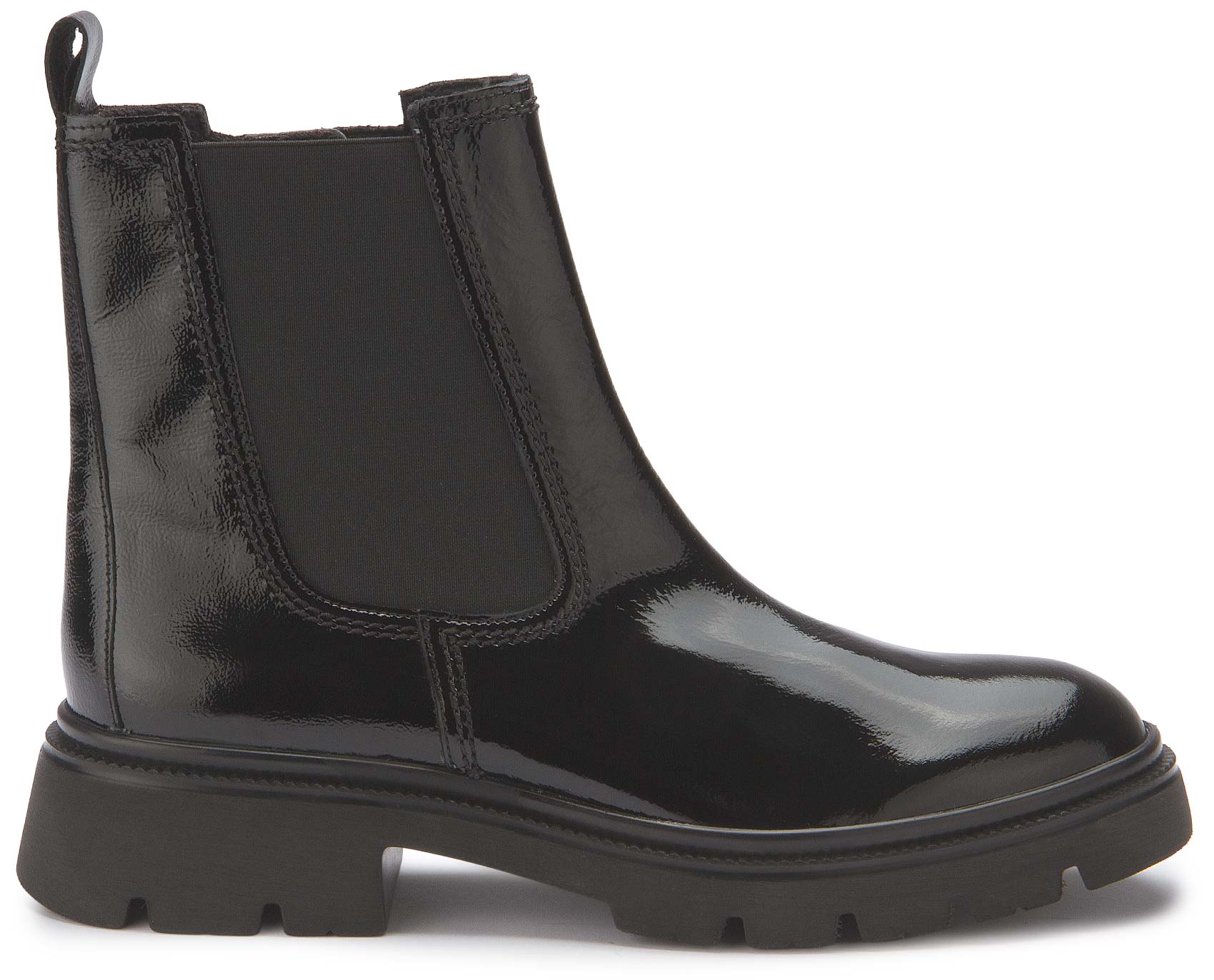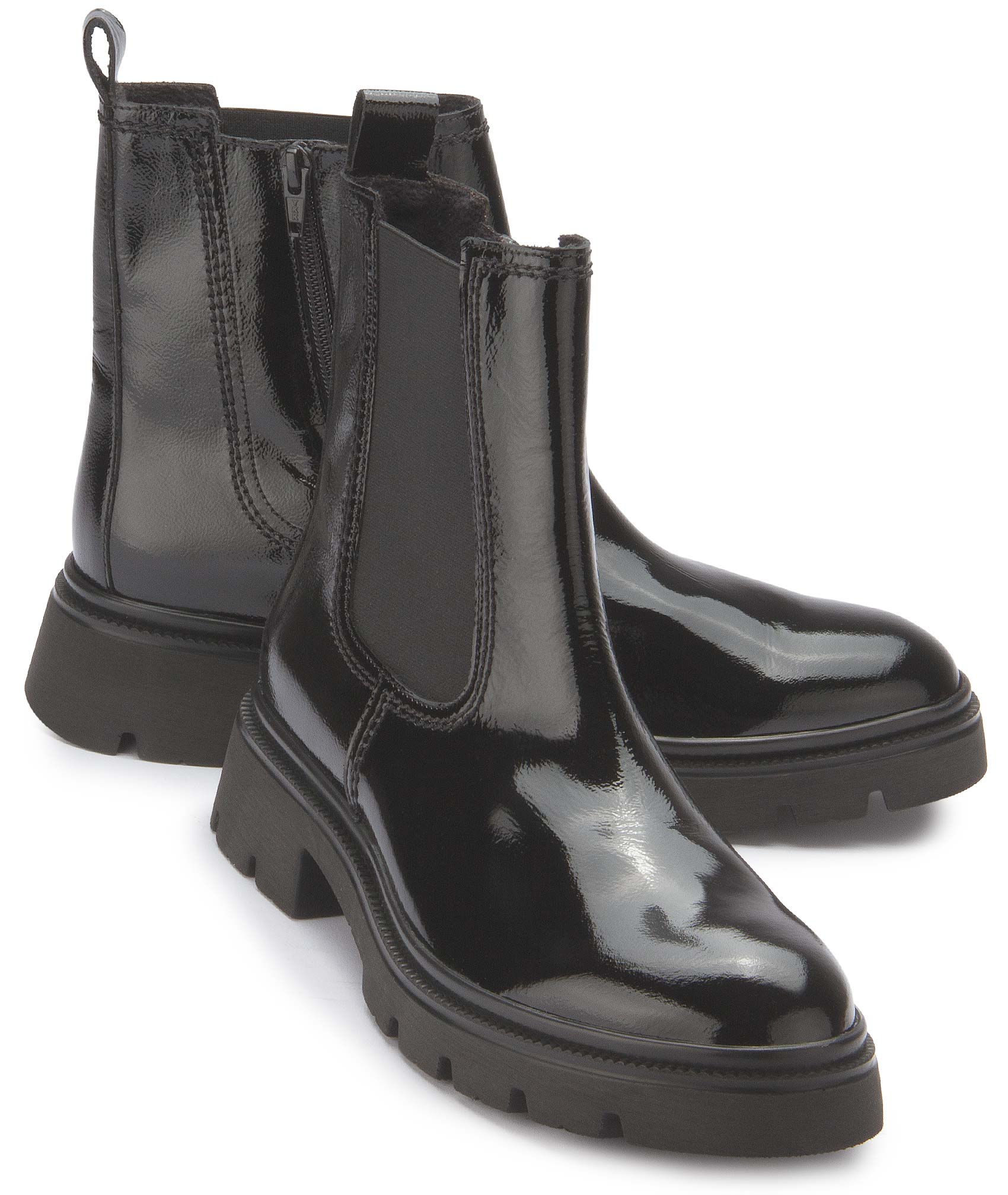The Chelsea boot made from high-quality black patent leather features a comfortable textile lining. The elasticated insert makes it easy to put on and take off. A shoe that perfectly combines style and comfort - a real statement for any occasion. Set fashionable accents, especially in the fall season!