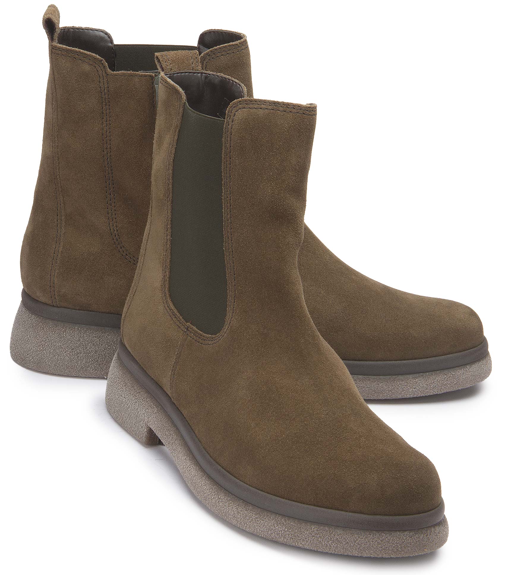 This Chelsea boot made from high-quality green suede features a comfortable textile lining. The elasticated insert makes it easy to put on and take off. A shoe that perfectly combines style and comfort - a real statement for any occasion. Set fashionable accents, especially in the fall season!