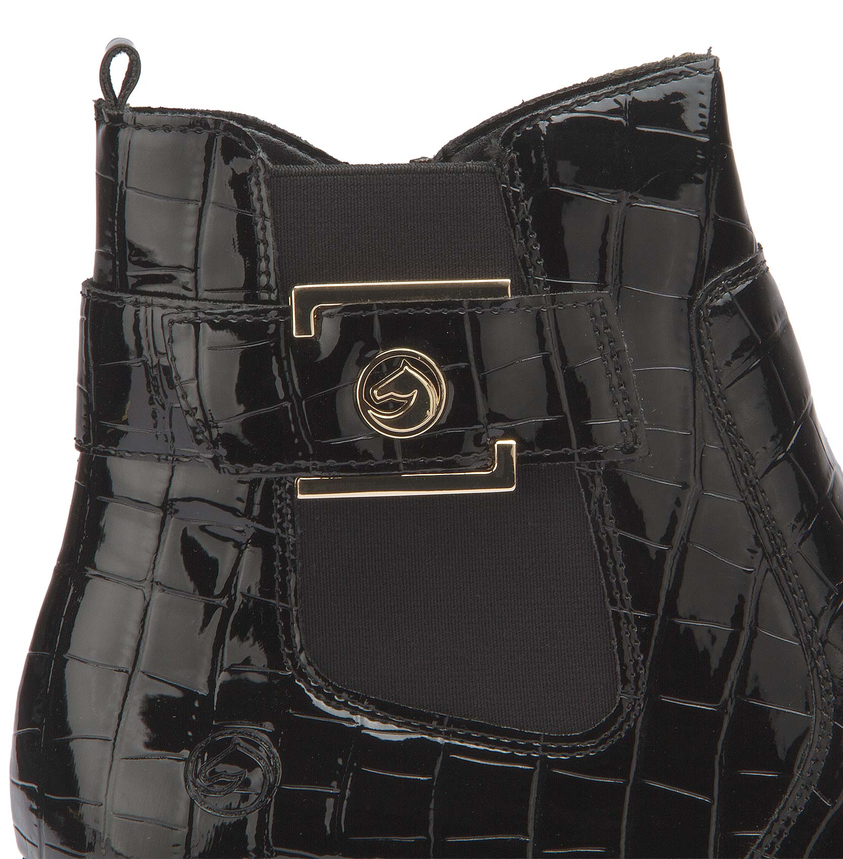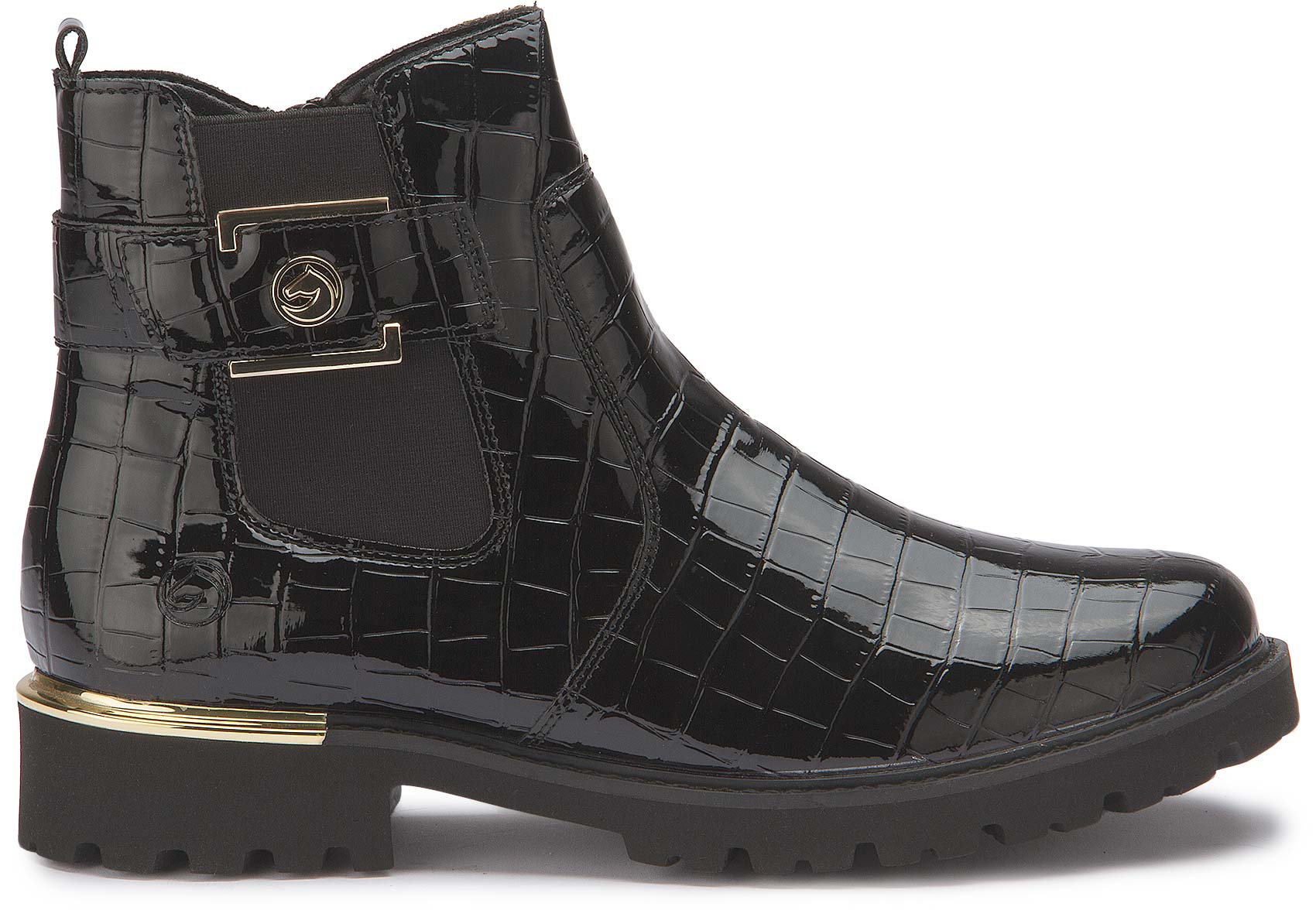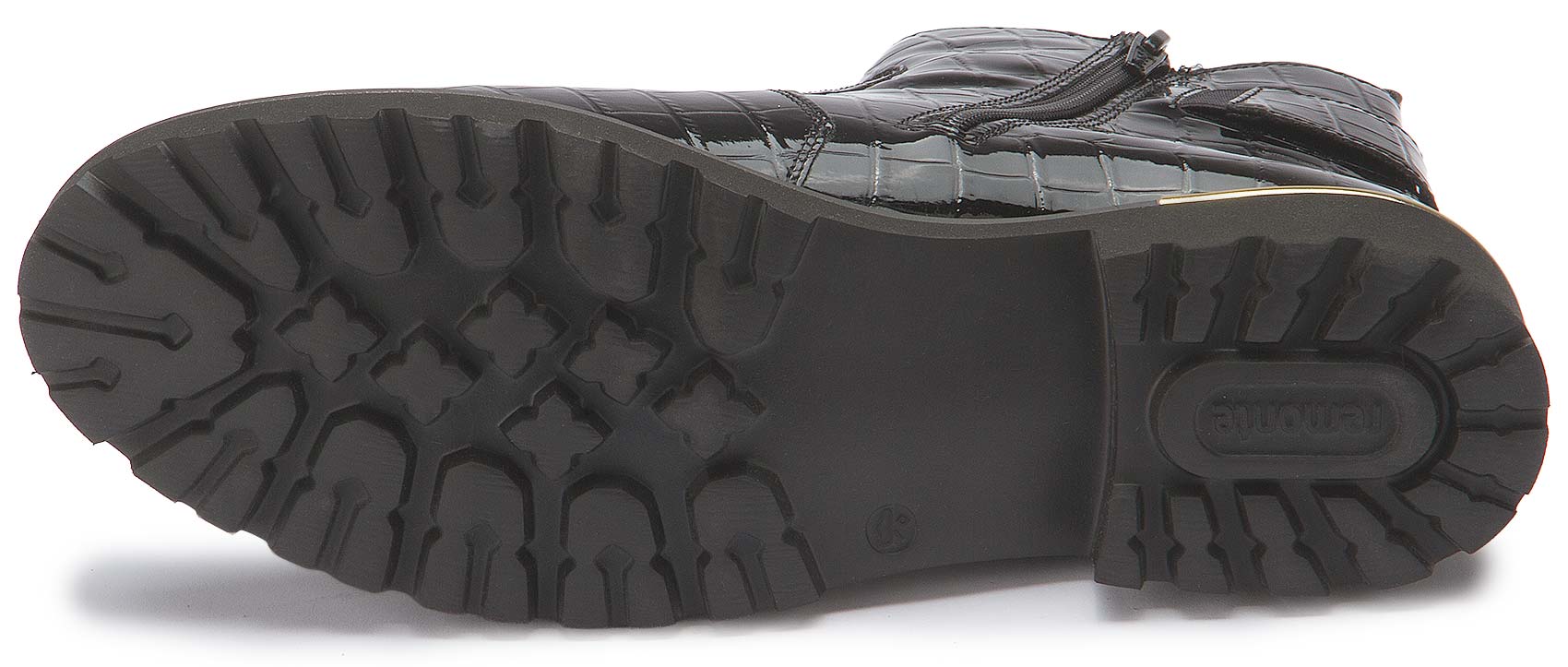 Maximum comfort at every turn! These patent black remonte Chelsea boots made of faux patent know exactly how style works. The zipper and the typical elastic insert on Chelsea boots make them easy to put on and take off. The gold decorative buckle on the side is a real eye-catcher. A particularly lightweight and cushioning sole with a block heel and the padded and removable insole are further arguments in favor of this shoe.