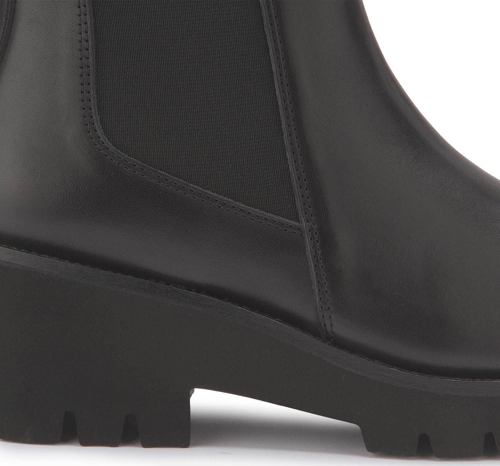 The black Chelsea boot from Bariello combines classic style with modern comfort. Made from high-quality smooth leather and equipped with a striking treaded sole, it offers secure support and adds an urban touch to any outfit.