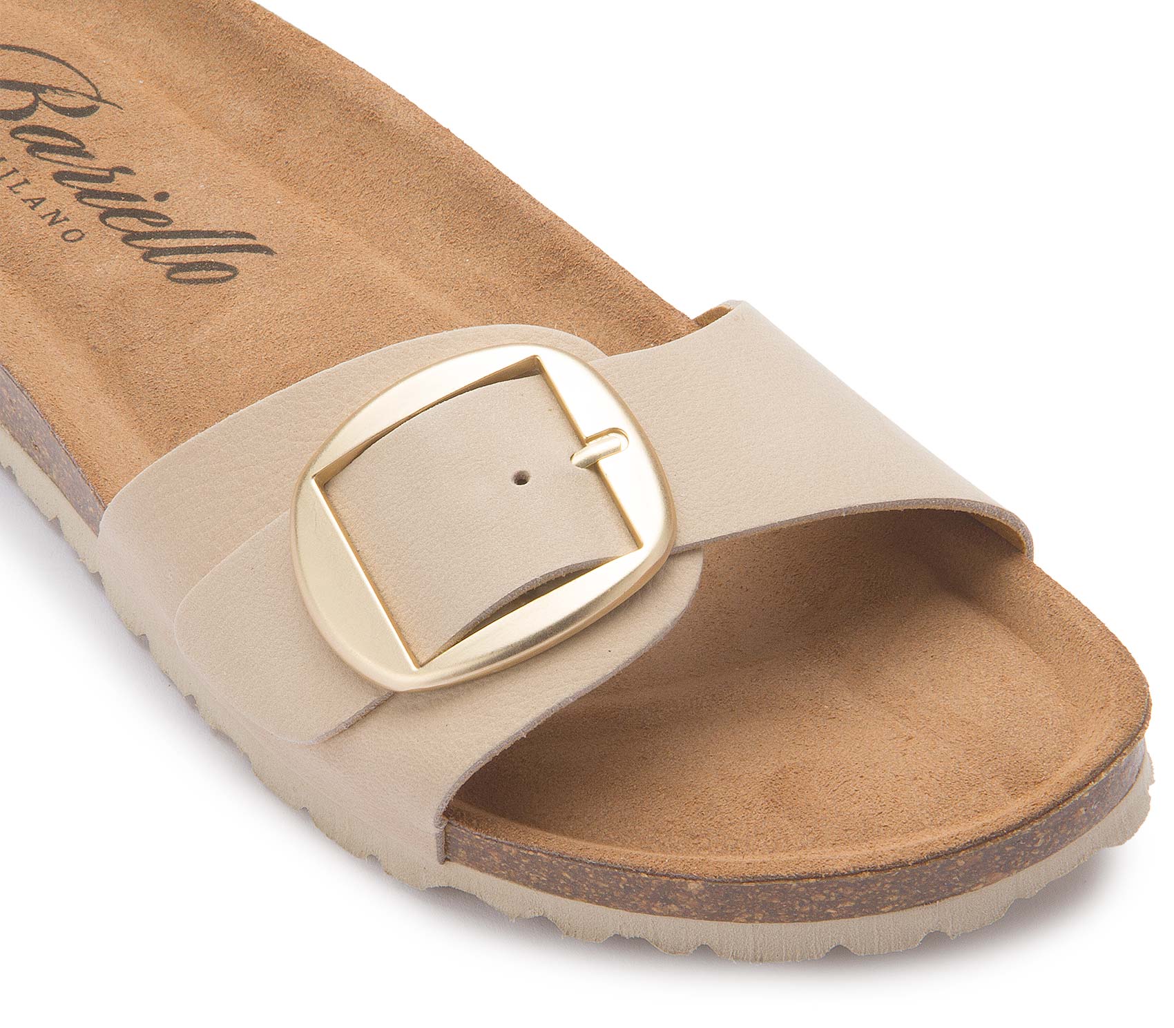 Die schlichte Pantolette von Bariello in softem Beige kombiniert zeitloses Design mit hochwertiger Verarbeitung – perfekt für die warmen Tage. Aus weichem Rauleder gefertigt und mit einem verstellbaren Riemen versehen, lässt sie sich individuell anpassen und sitzt angenehm am Fuß. Das Innenfutter aus Leder sorgt auch an sommerlichen Tagen für ein angenehmes, luftiges Tragegefühl.