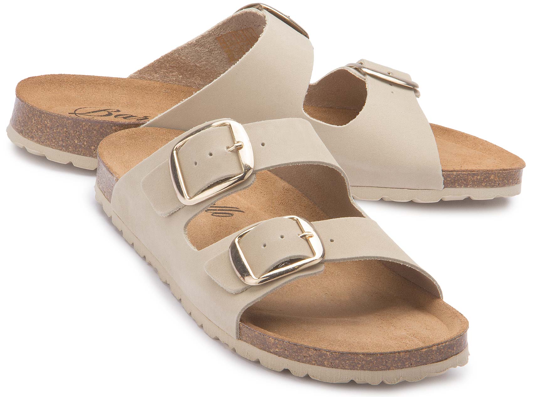 Die dezente Pantolette von Bariello in elegantem Beige vereint schlichtes Design mit hoher Qualität. Gefertigt aus weichem Glattleder und ausgestattet mit zwei verstellbaren Riemen, lässt sie sich optimal an den Fuß anpassen. Das lederne Innenfutter rundet den Tragekomfort ab und sorgt für ein angenehmes Laufgefühl.