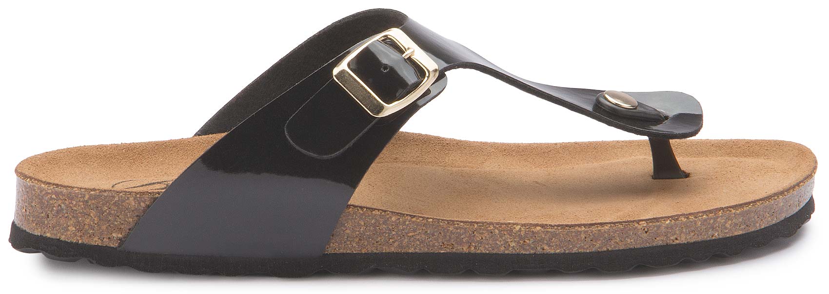 Der schlichte Zehentrenner von Bariello in elegantem Schwarz überzeugt mit einem hochwertigen Lederriemen und komfortabler Korksohle. Die ergonomisch geformte Fußbettung sowie der verstellbare Riemen mit goldfarbener Schnalle sorgen für optimalen Halt und angenehmen Tragekomfort. Ideal für warme Tage – stilvoll und bequem zugleich.