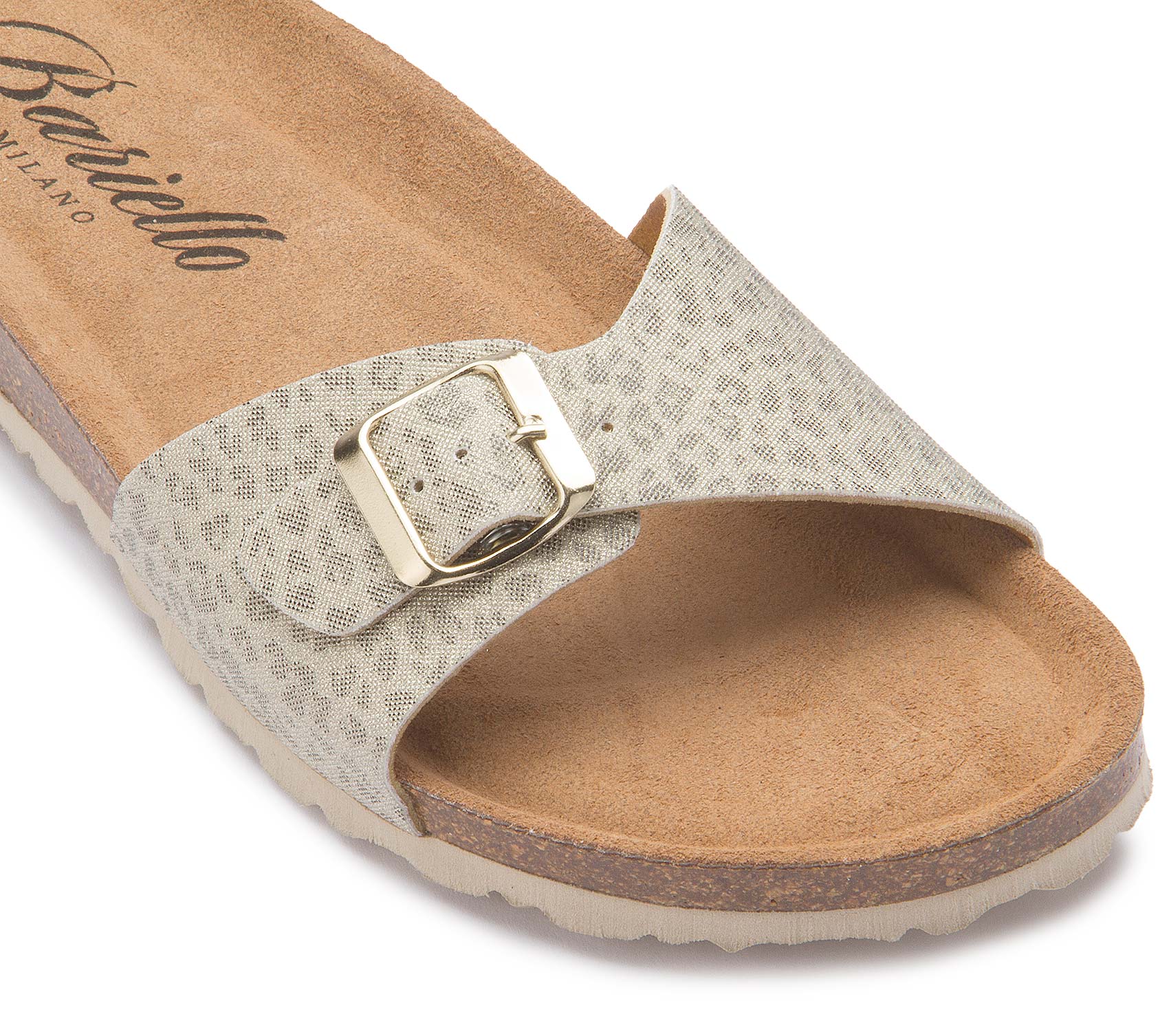Bequem und stilvoll zugleich: Diese Pantolette von Bariello überzeugt mit einem dezent gemusterten Obermaterial und einer verstellbaren Schnalle für individuellen Sitz. Das anatomisch geformte Fußbett sorgt für angenehmen Komfort, während die leichte Sohle ein entspanntes Laufgefühl unterstützt. Ideal für unkomplizierte, sommerliche Looks.