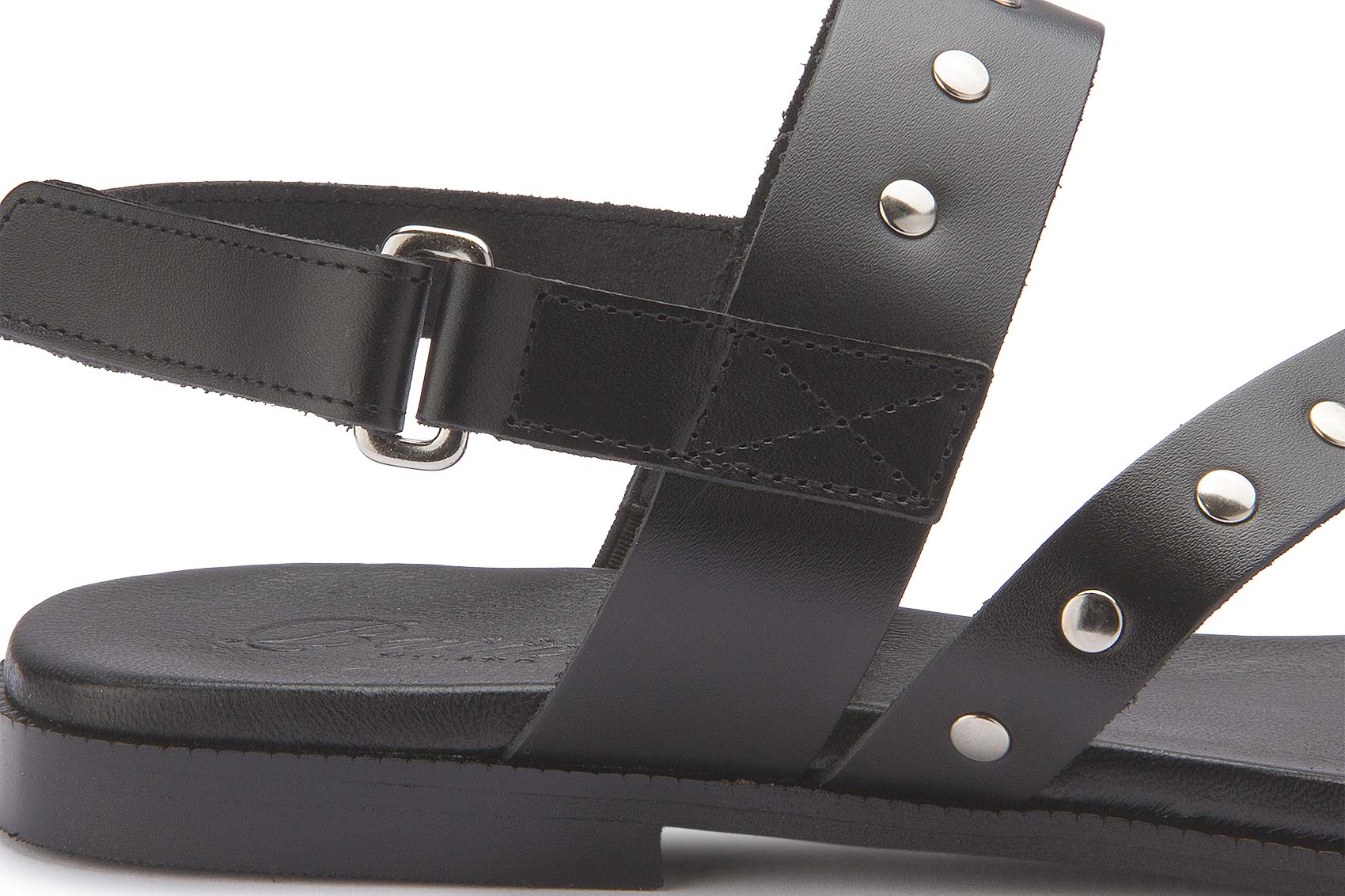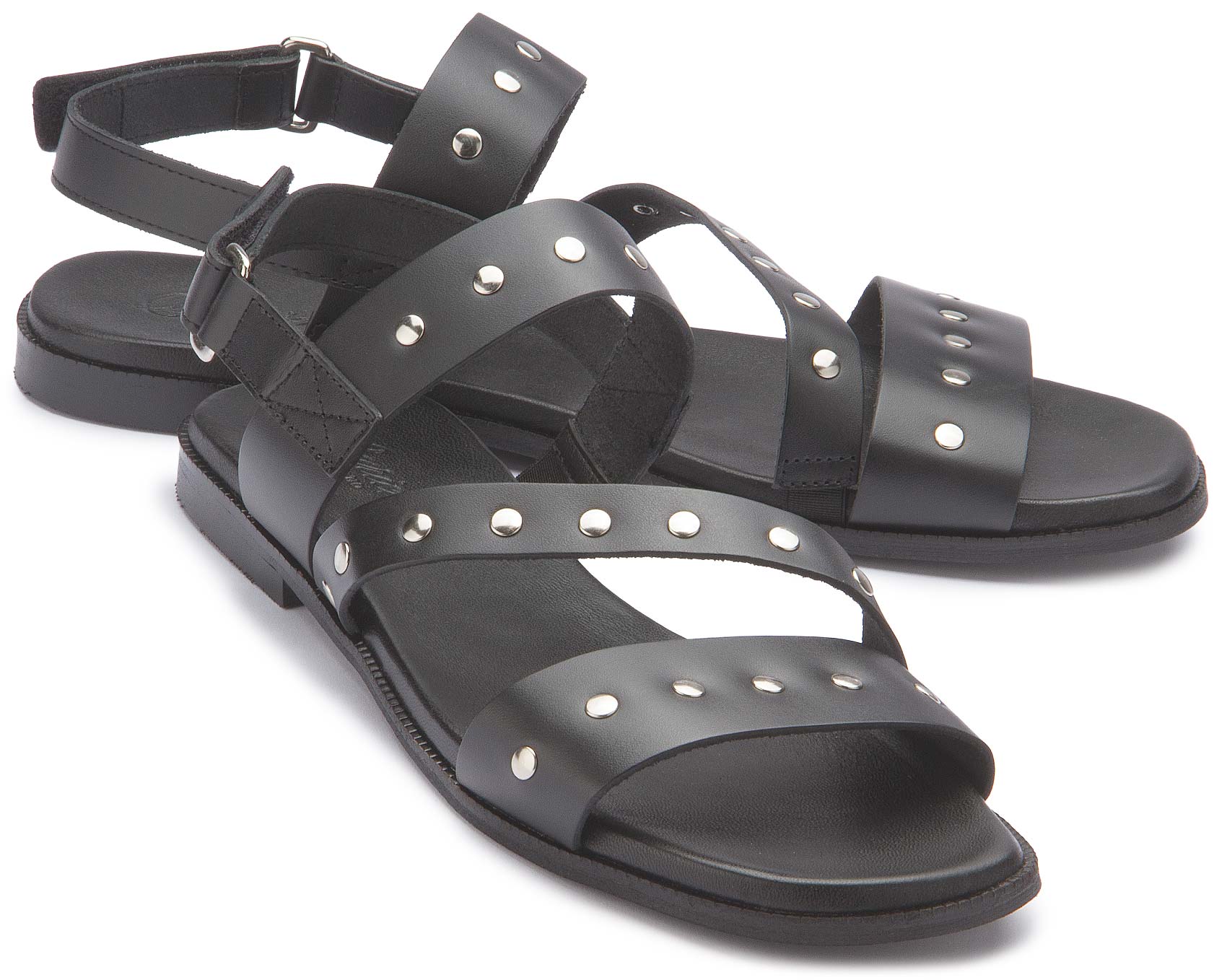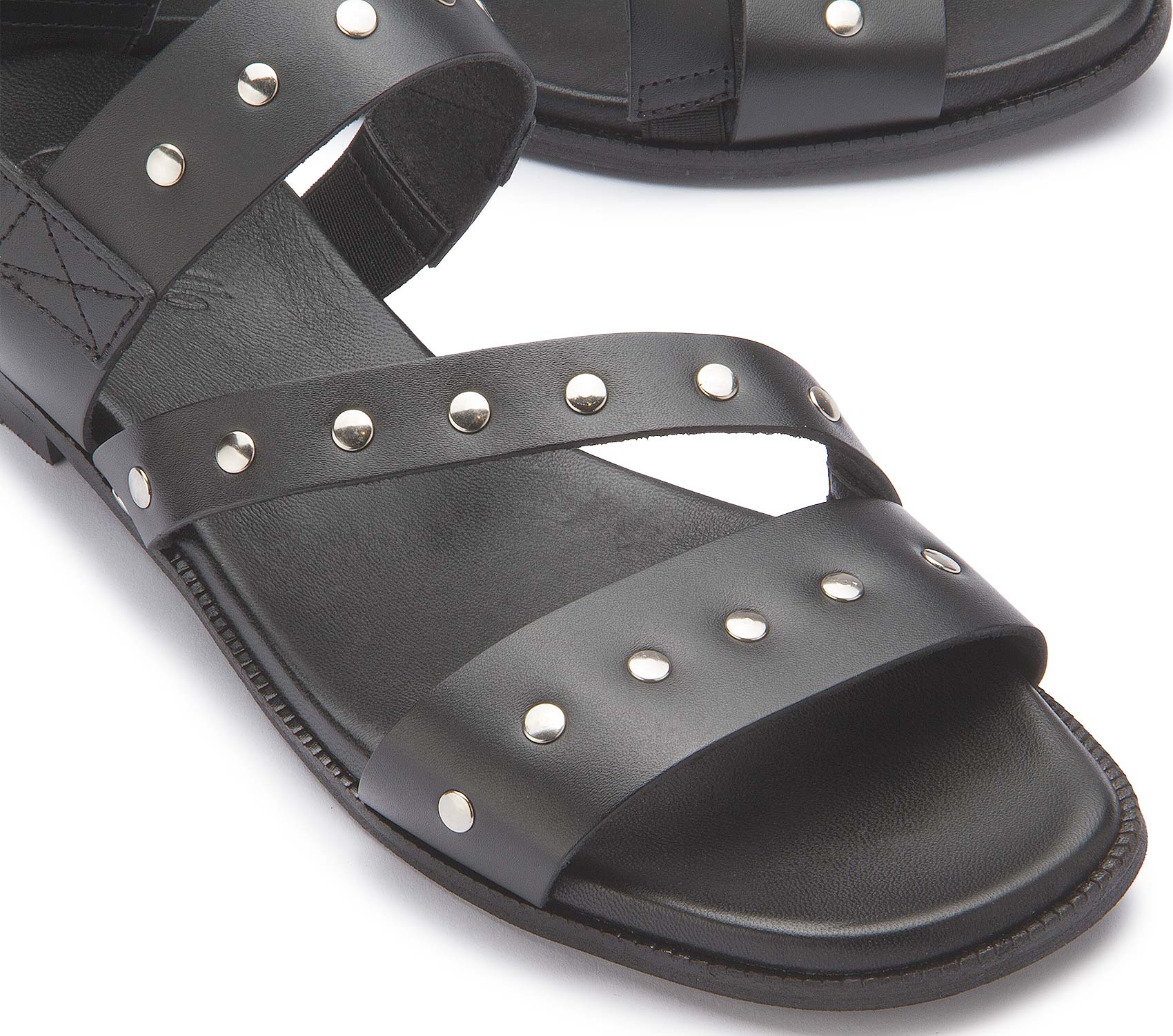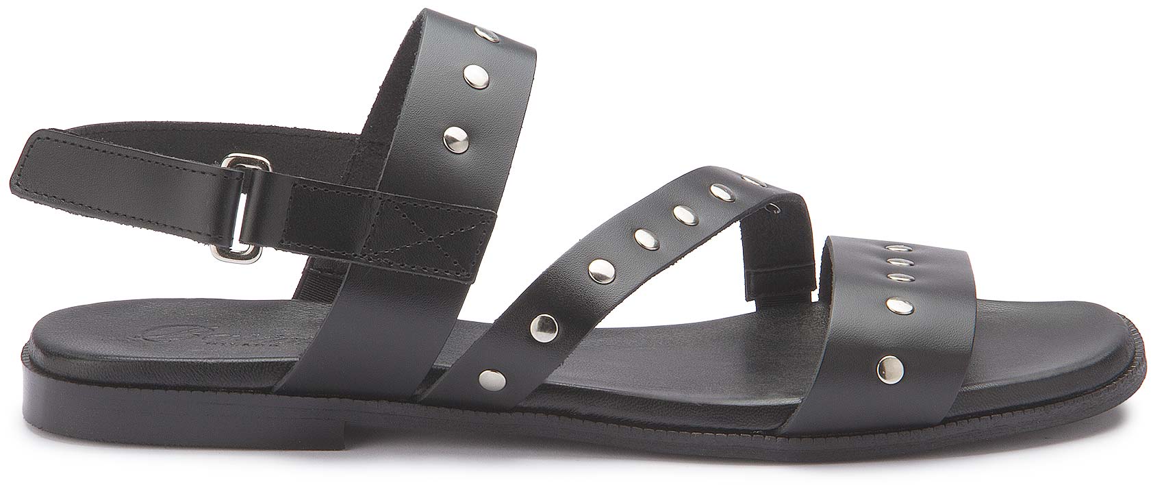 Markant und stilvoll: Diese Sandale überzeugt mit hochwertigem Leder und dekorativen Nieten, die dem Design eine moderne, ausdrucksstarke Note verleihen. Die verstellbaren Riemen sorgen für einen sicheren Sitz und individuellen Komfort. Dank der flachen Sohle ist sie der ideale Begleiter für warme Tage mit modischem Anspruch.