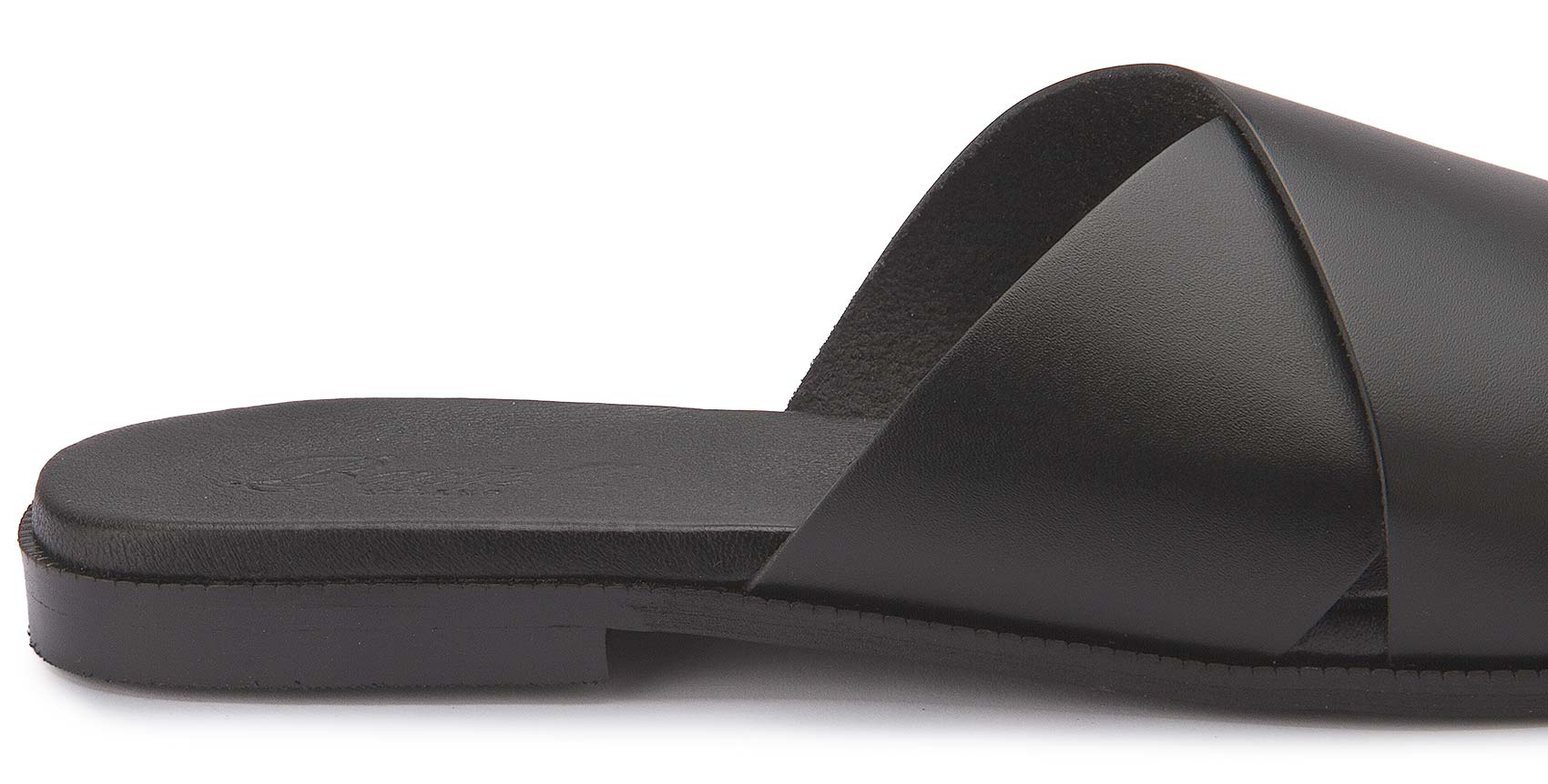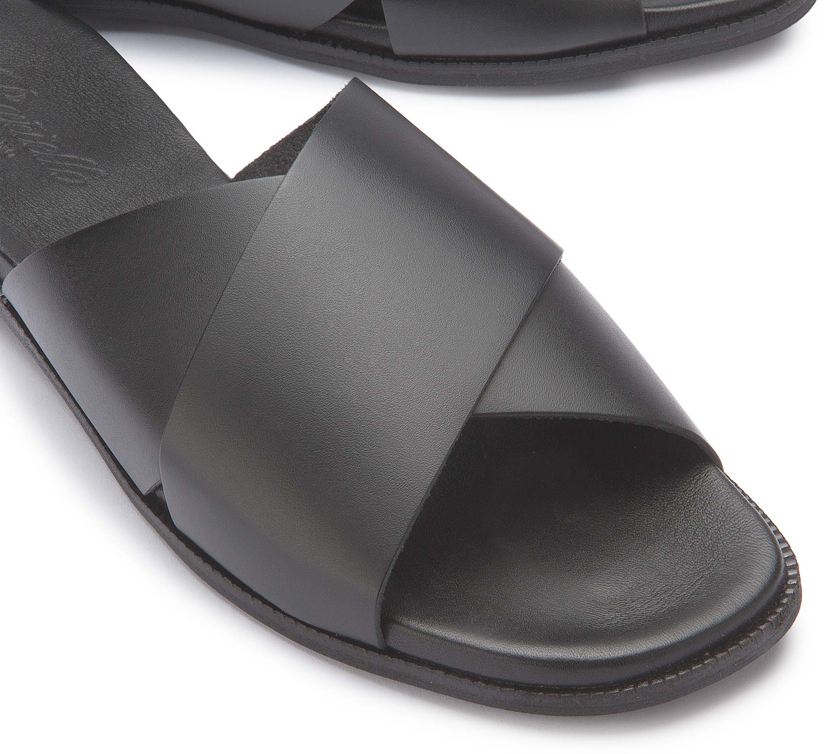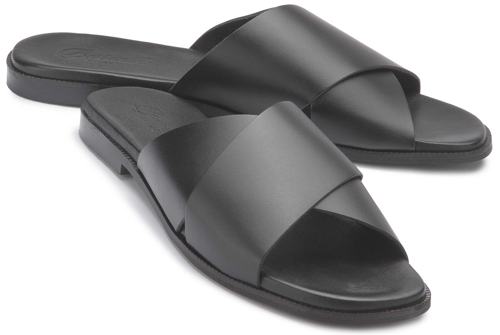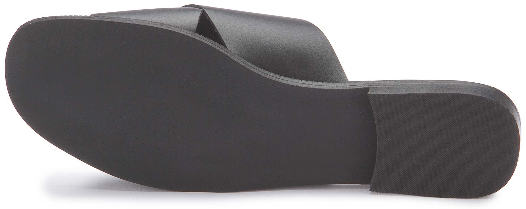 Puristisch und vielseitig: Diese Pantolette überzeugt mit überkreuzten Riemen aus weichem Glattleder für einen modernen, entspannten Look. Das angenehme Fußbett und die leichte Sohle sorgen für hohen Tragekomfort an warmen Tagen. Ein stilvoller Begleiter für unkomplizierte Sommer-Outfits.