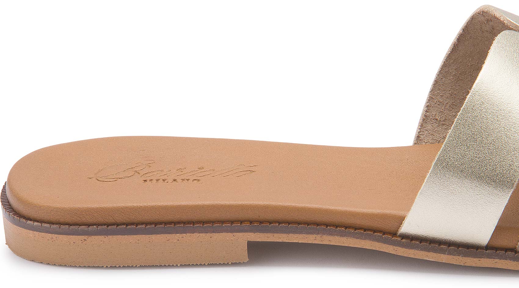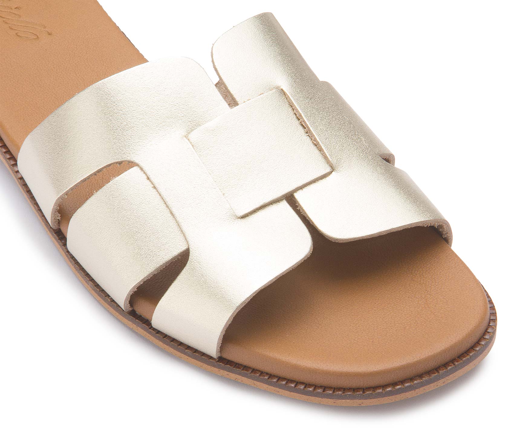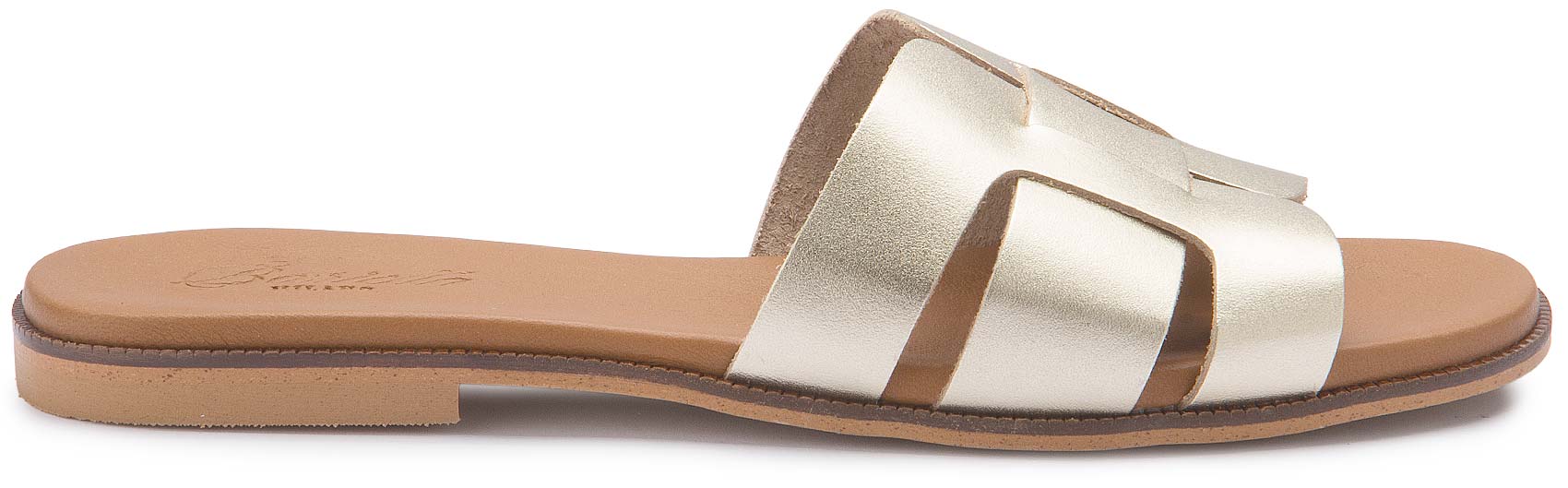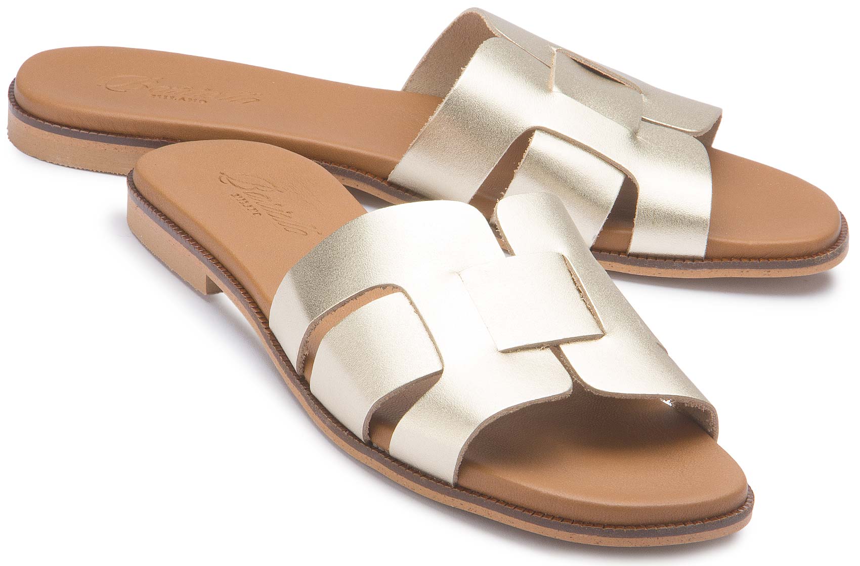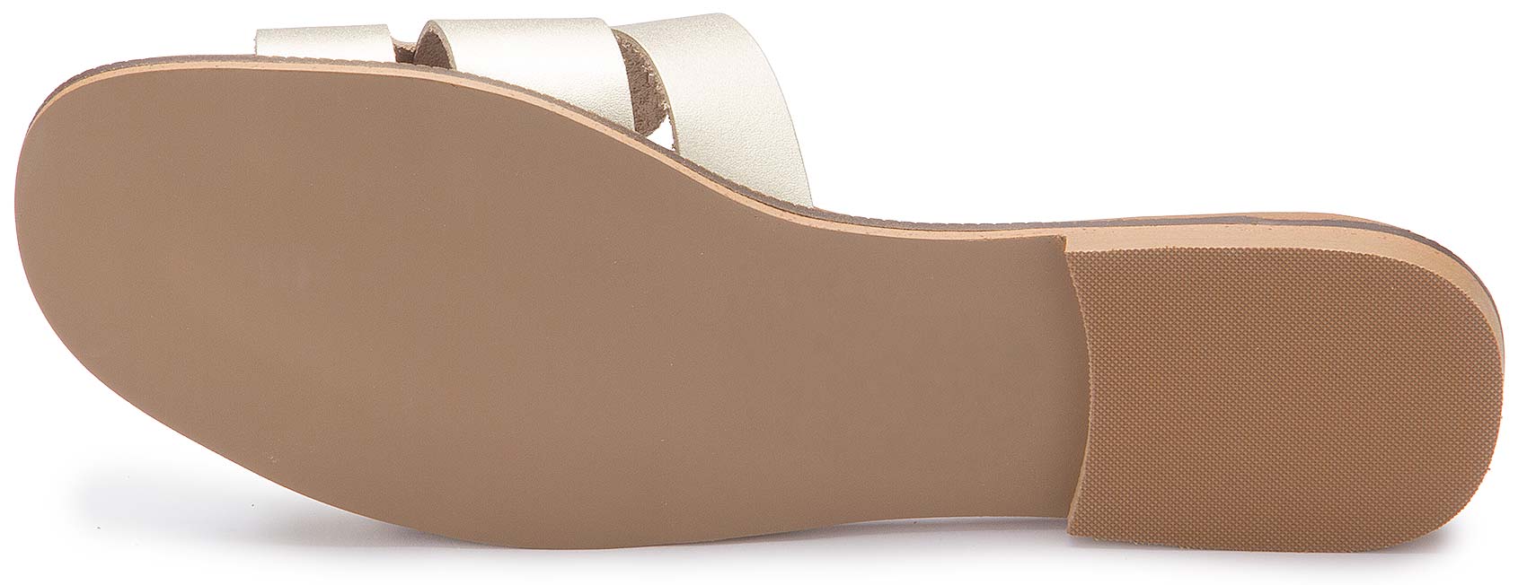 Diese elegante Pantolette in schlichtem Look ist ein echter Allrounder für den Sommer. Das weiche, strukturierte Leder schmiegt sich angenehm an den Fuß, während die moderne Gestaltung der Riemen dem Design eine raffinierte Note verleiht. Die flache Sohle sorgt für bequemen Laufkomfort – ideal für warme Tage in der Stadt oder den Urlaub.