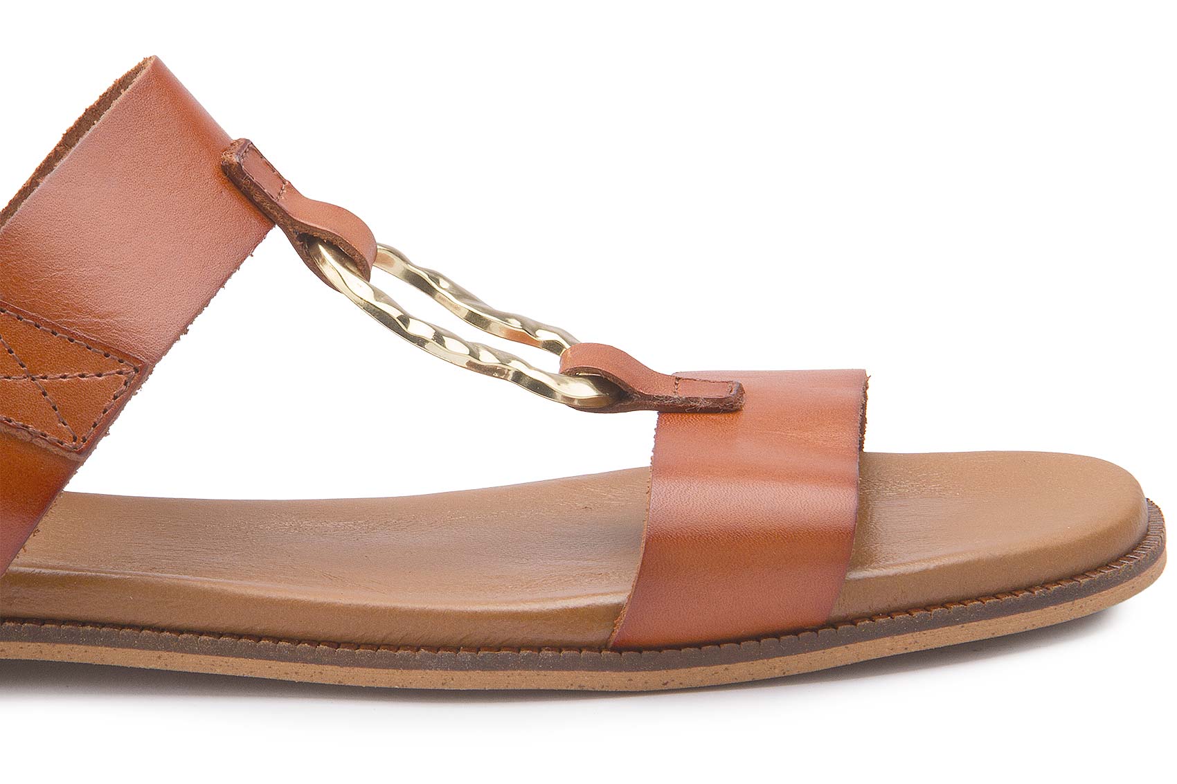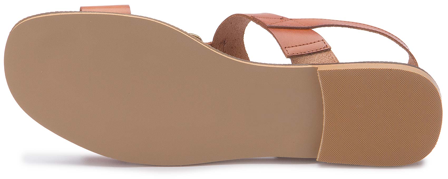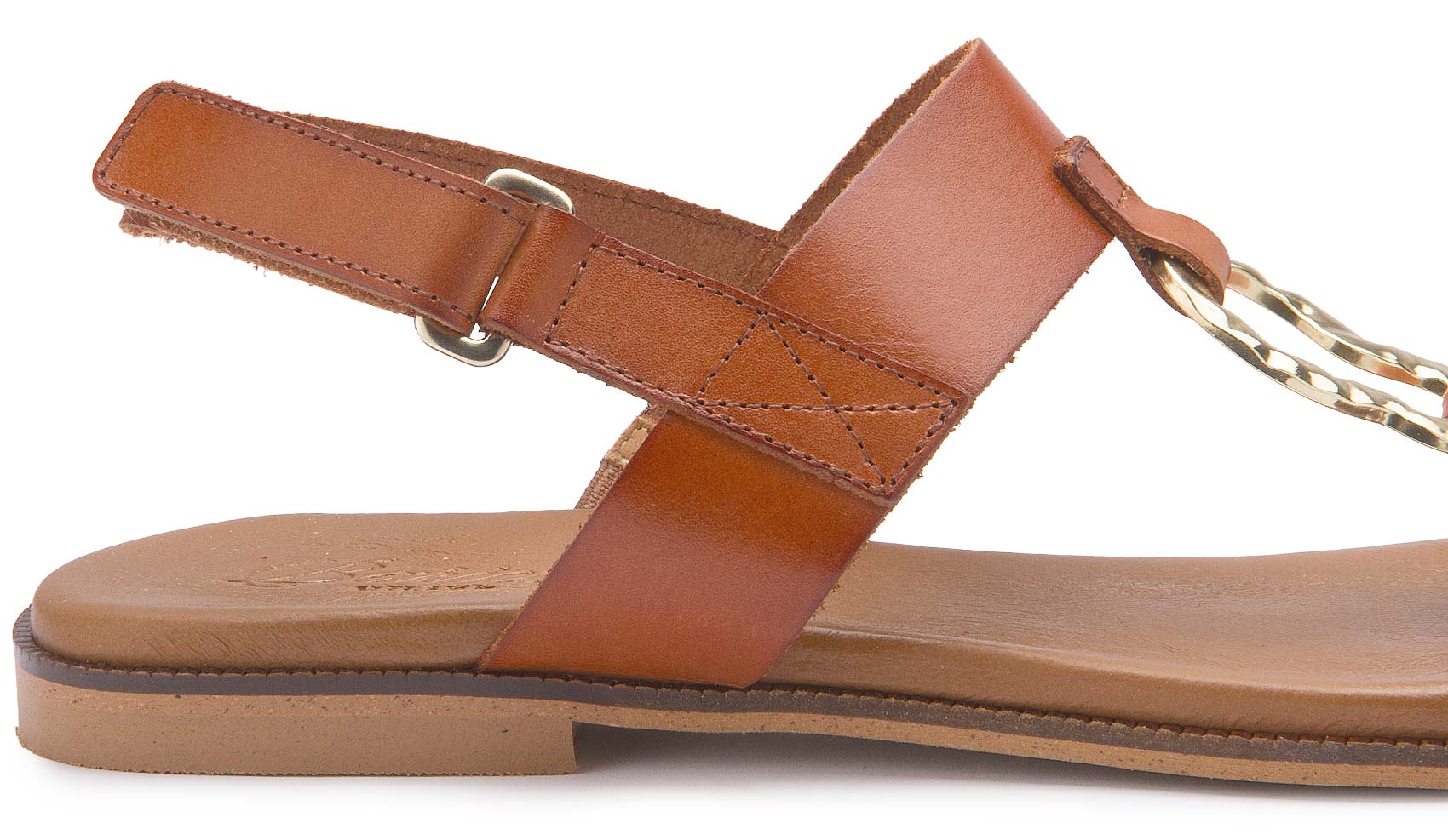 Diese Sandale überzeugt durch hochwertiges Leder und ein dekoratives Metallelement, das dem Design eine edle Note verleiht. Die verstellbaren Riemen sorgen für einen sicheren Sitz und individuellen Komfort. Die flache Sohle macht sie zum idealen Begleiter für warme Tage und stilvolle Sommerlooks.