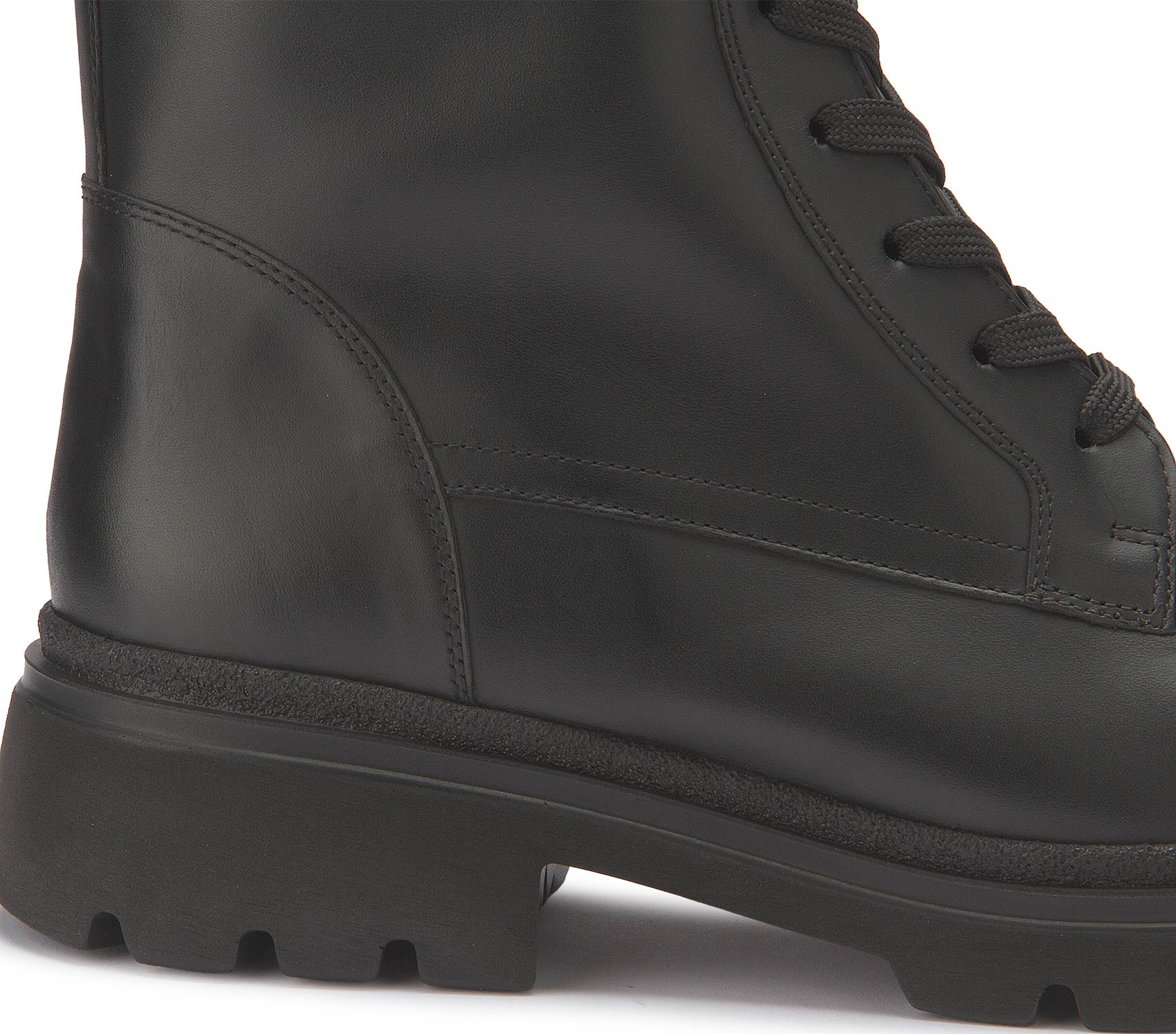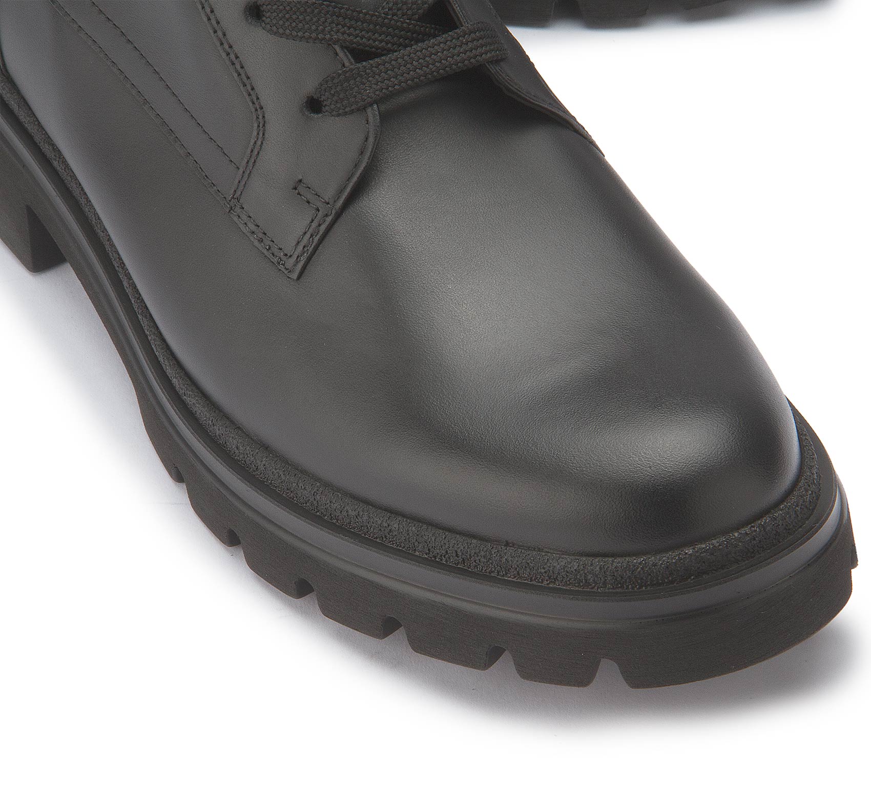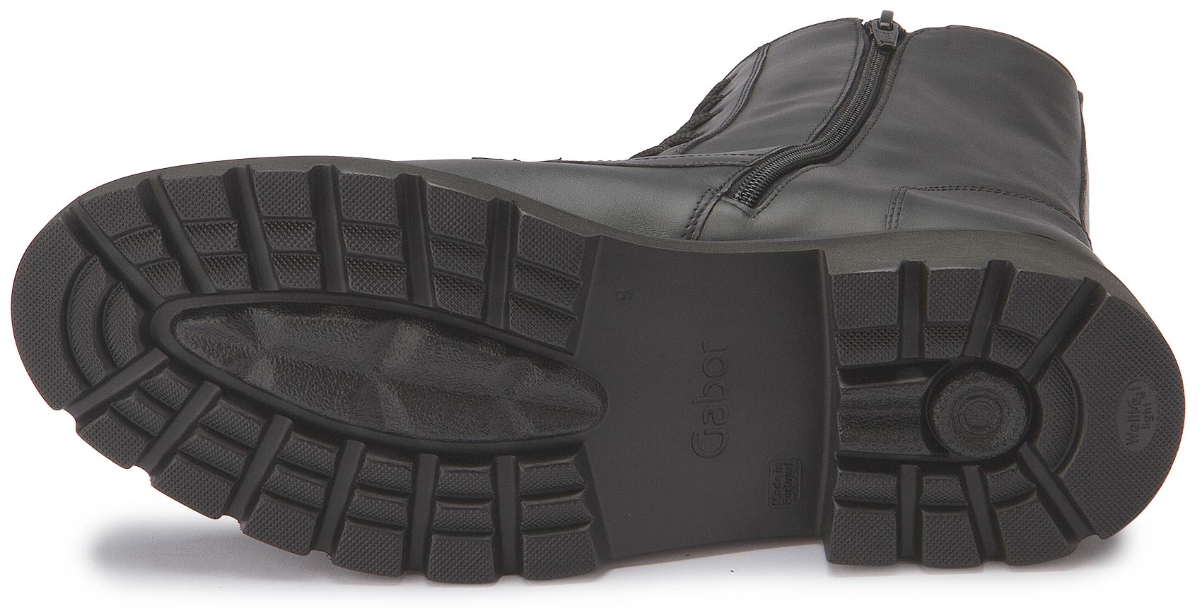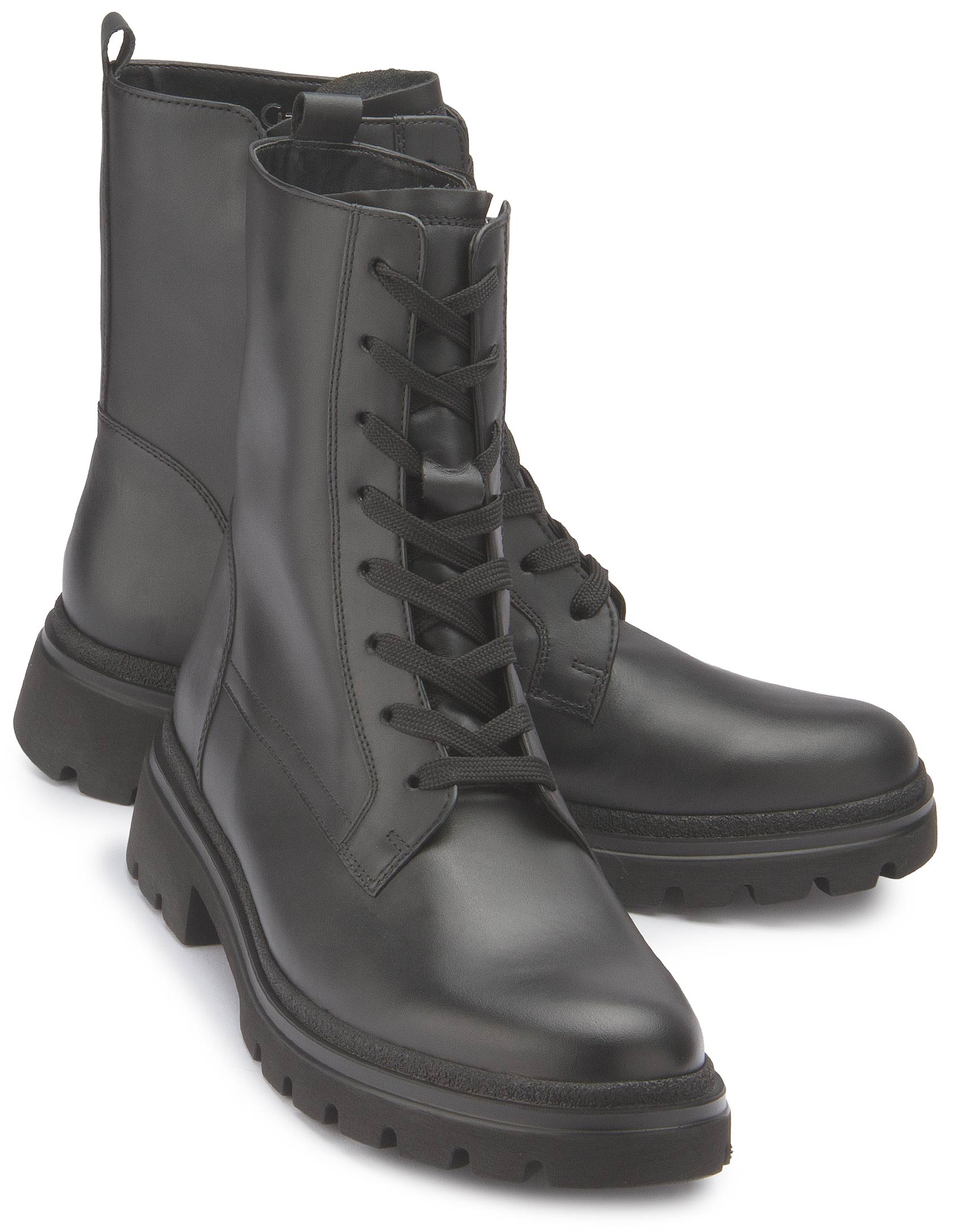 Gabor presents this elegant black lace-up boot made from smooth leather. The timeless design can be combined in a variety of ways. The laces and side zipper ensure an optimal fit and are easy to put on. Thanks to the comfortable G width, this lace-up boot is perfect for stylish everyday looks with extra comfort.