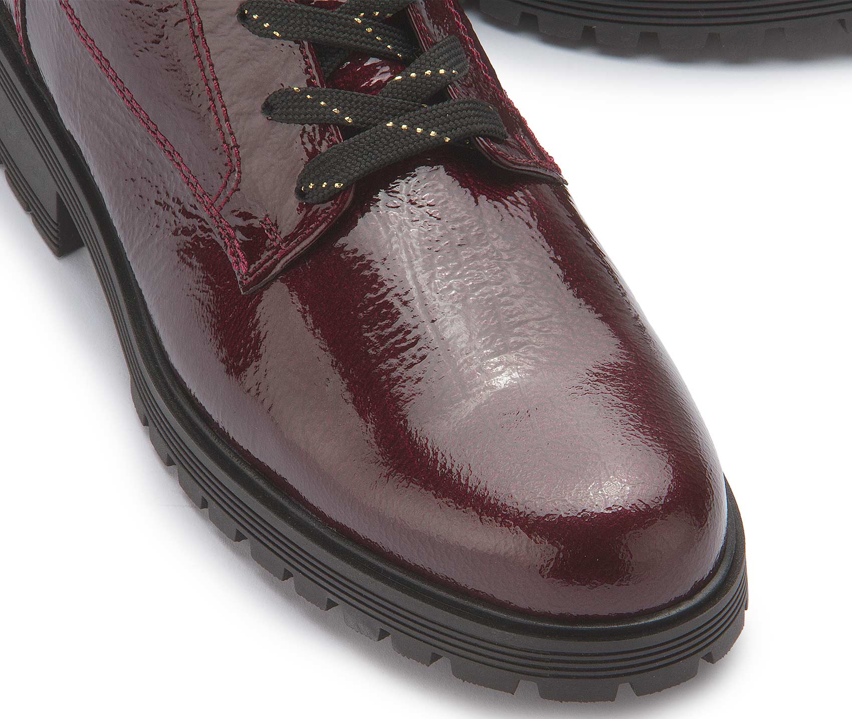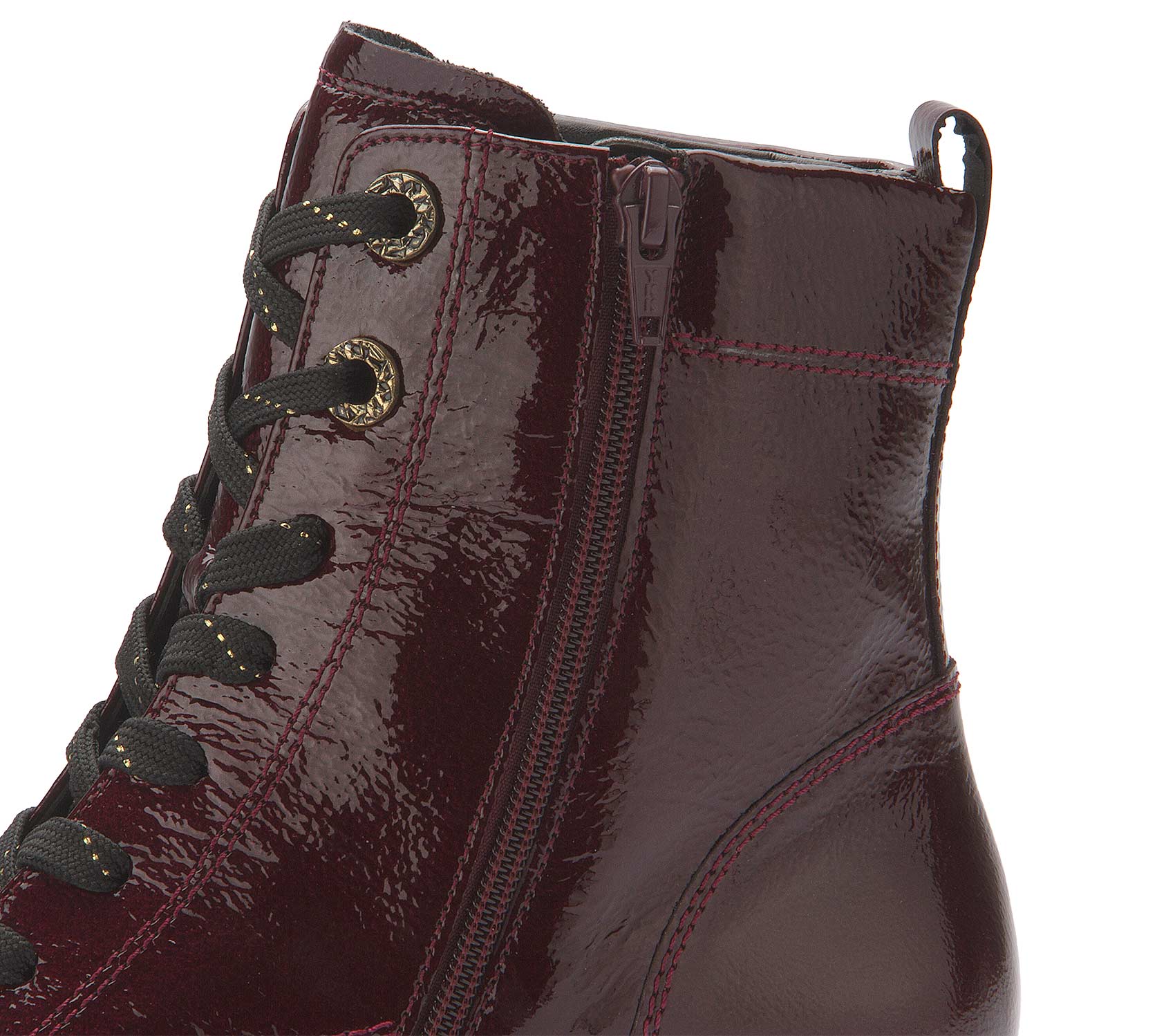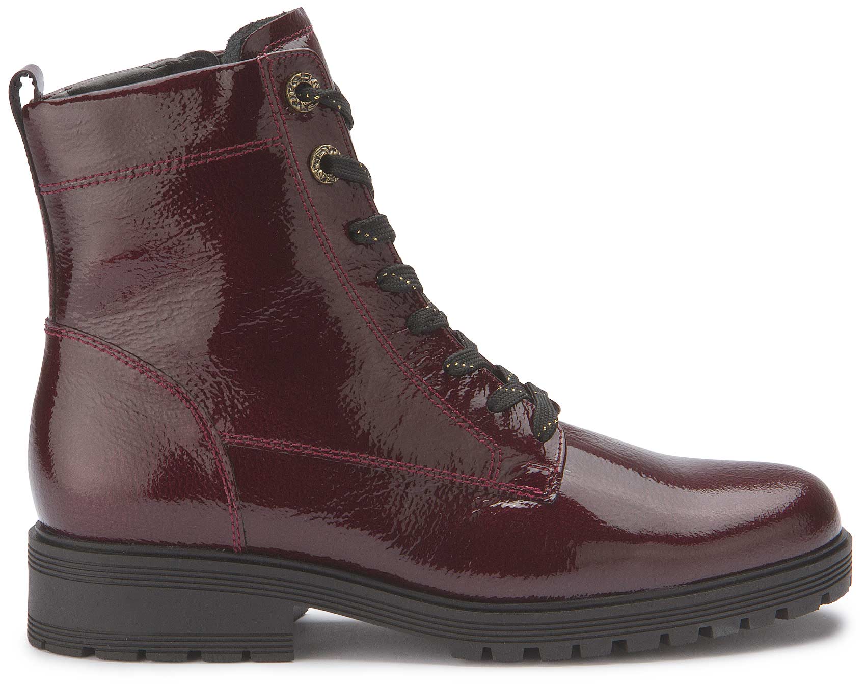 The Gabor lace-up boot in shiny patent leather combines an elegant look with functional comfort. Thanks to the extra width and removable footbed, it offers plenty of space and individual comfort, while the robust sole ensures a secure hold. Perfect for stylish looks with a feel-good guarantee.
