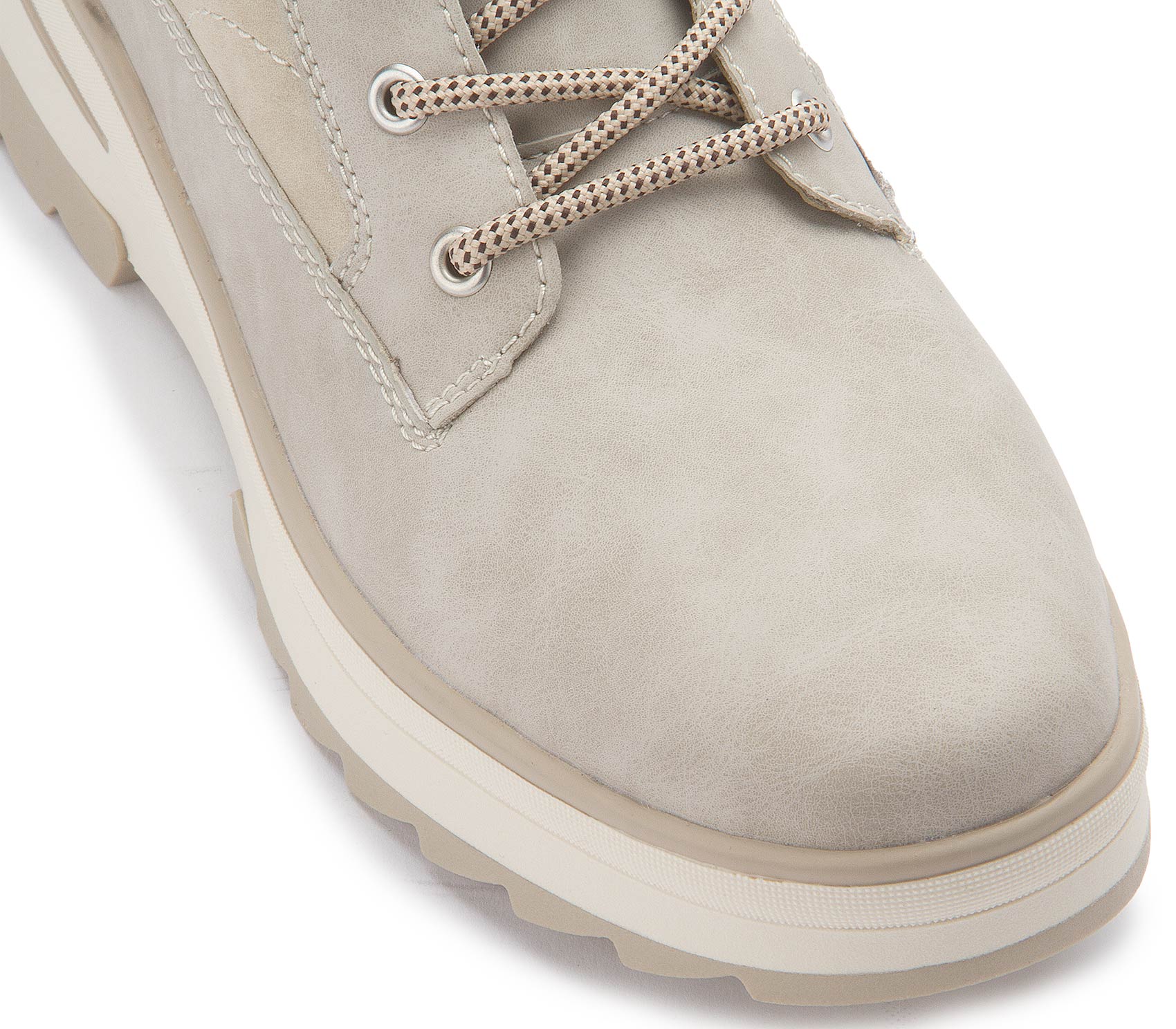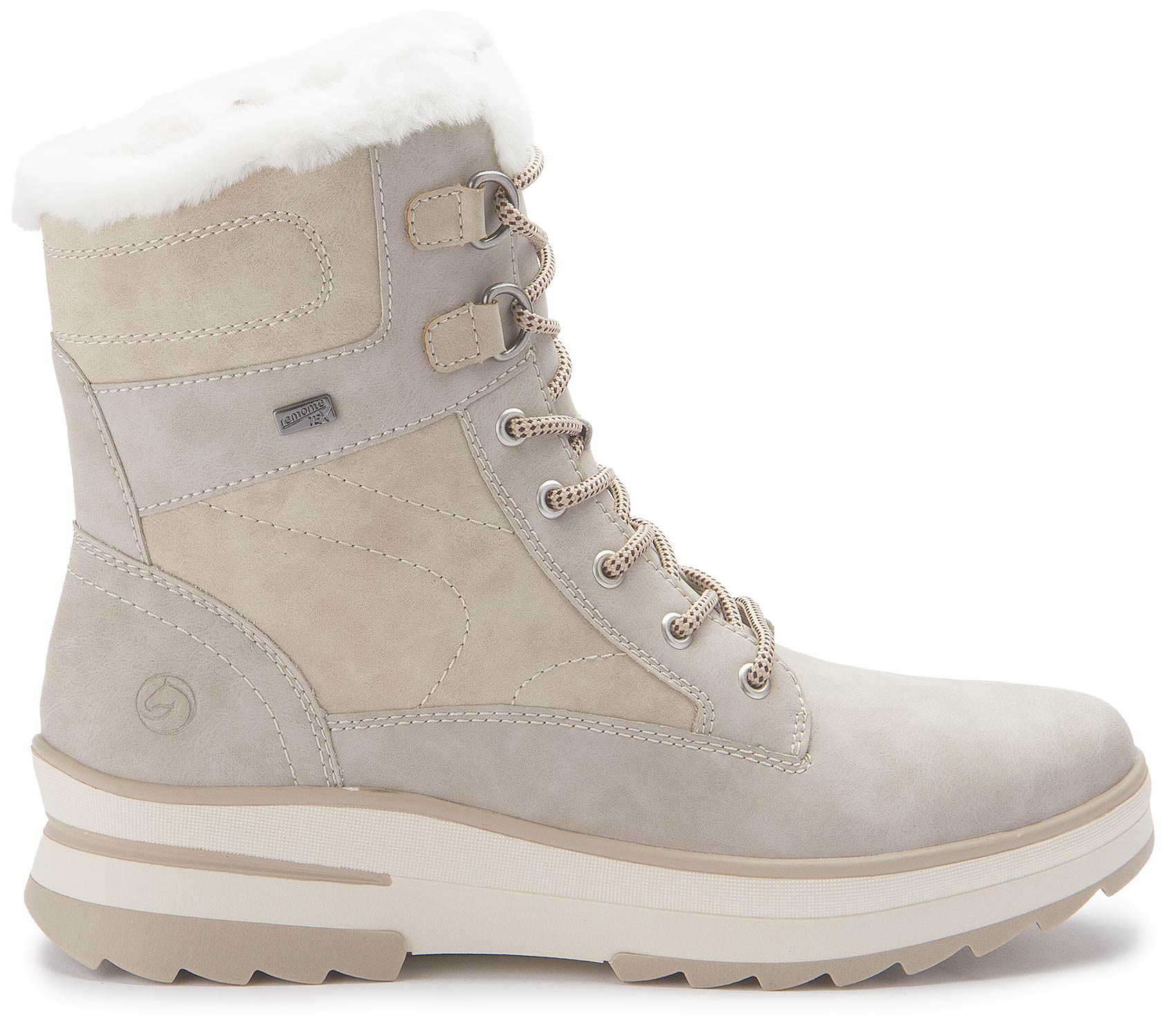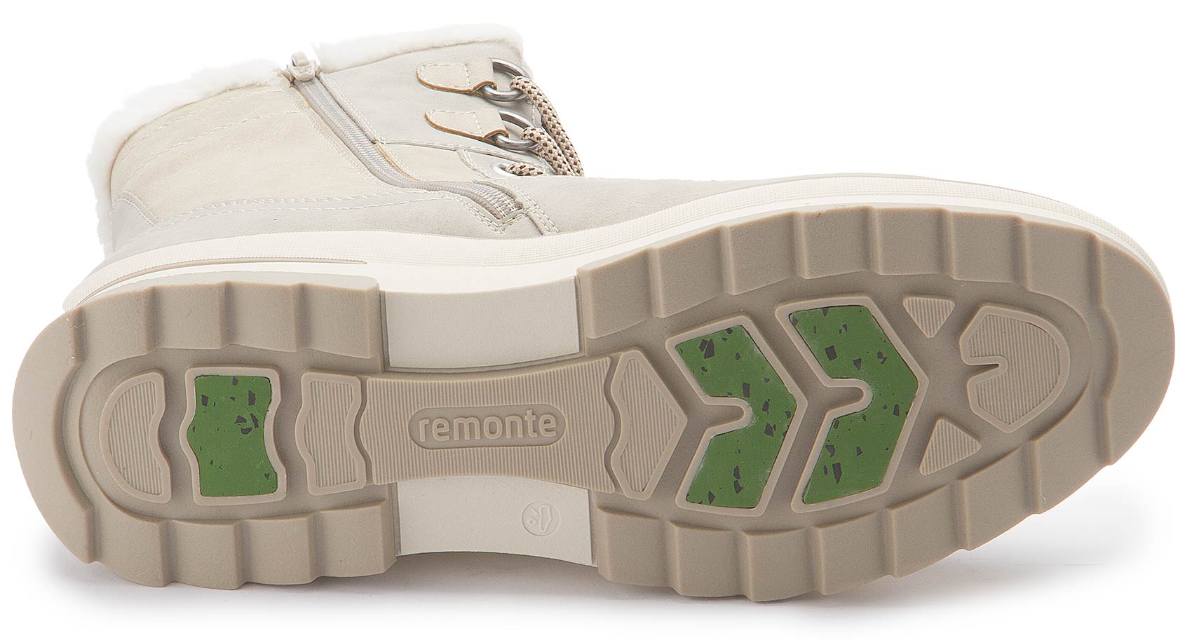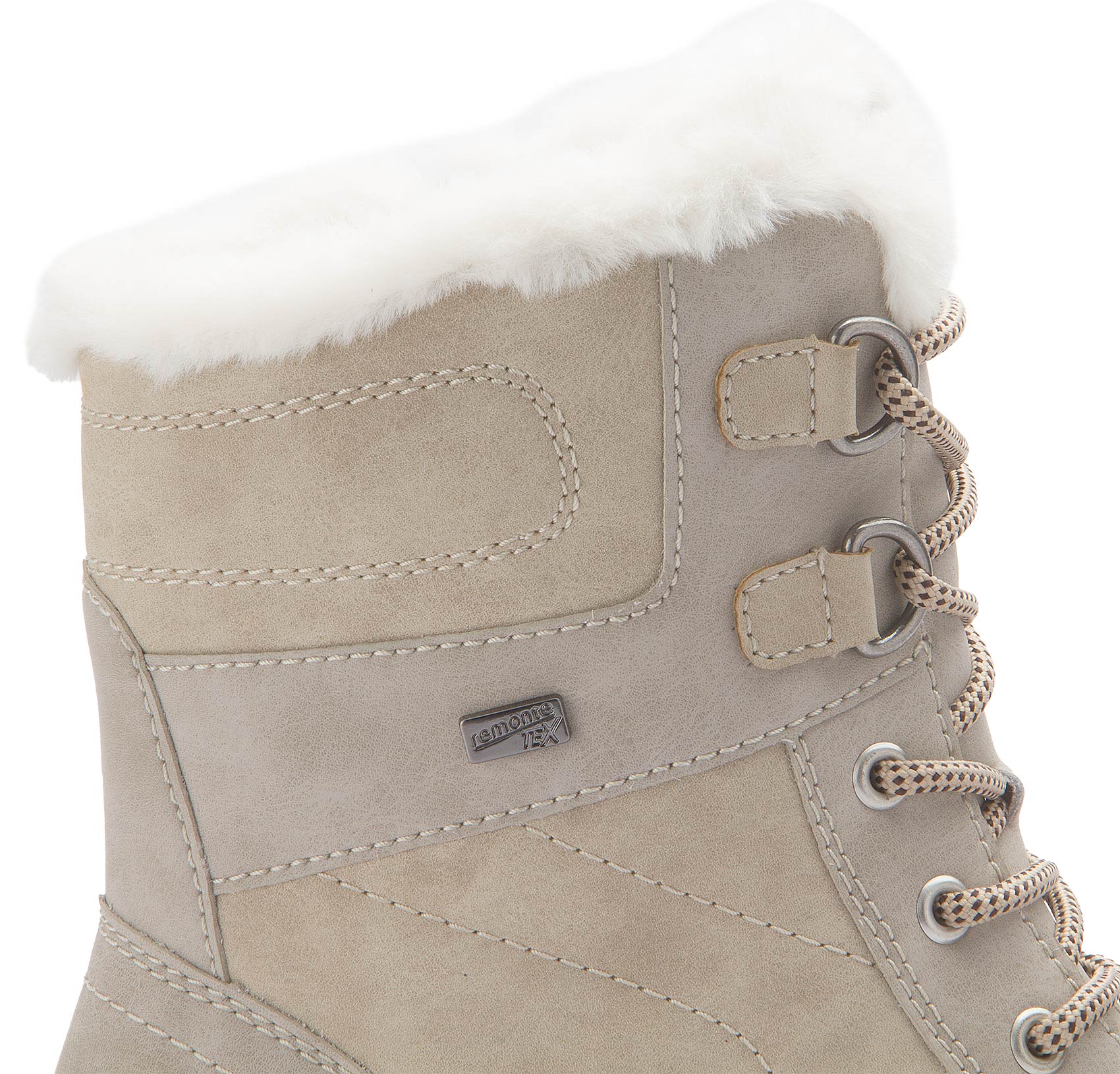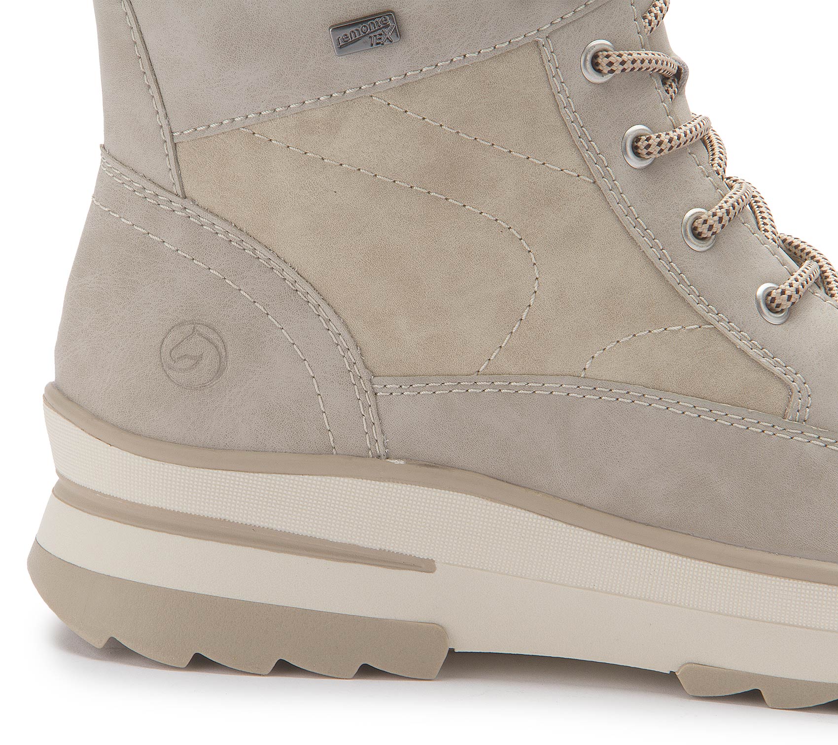 Maximum style, maximum comfort! These beige Remonte lace-up boots made from suede combine a cool design with the best wearing comfort. Despite the zipper, the shoe can be easily closed with a lace-up fastening. The padded and removable insole meets a flexible and grippy sole that provides excellent balance even on hard surfaces. The remonteTEX technology ensures dry feet, while the glass-fiber sole offers extra grip on icy floors. Cozy and very warm new wool keeps your feet warm.
