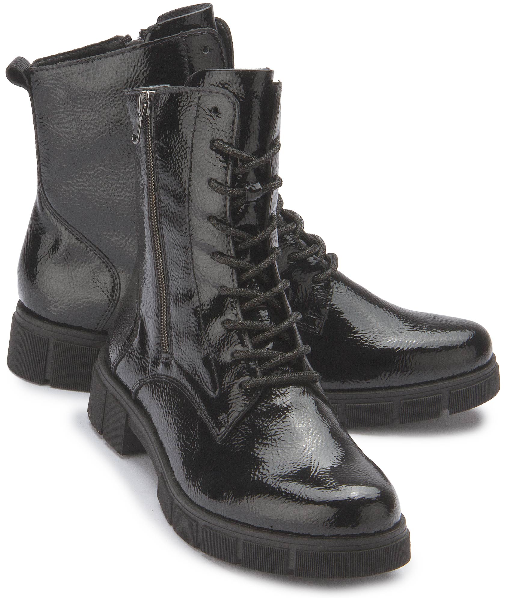 Modern design can be comfortable! These black remonte lace-up boots for women feature a classic color scheme that simply always works! A lace-up fastening complements the zipper and ensures functionality and comfort. The delivery also includes interchangeable laces. The flexible and non-slip sole, together with the padded and removable insole, creates a feeling of well-being with every step. Thanks to the comfort width, there is plenty of room in the forefoot area. Comfort meets style!
