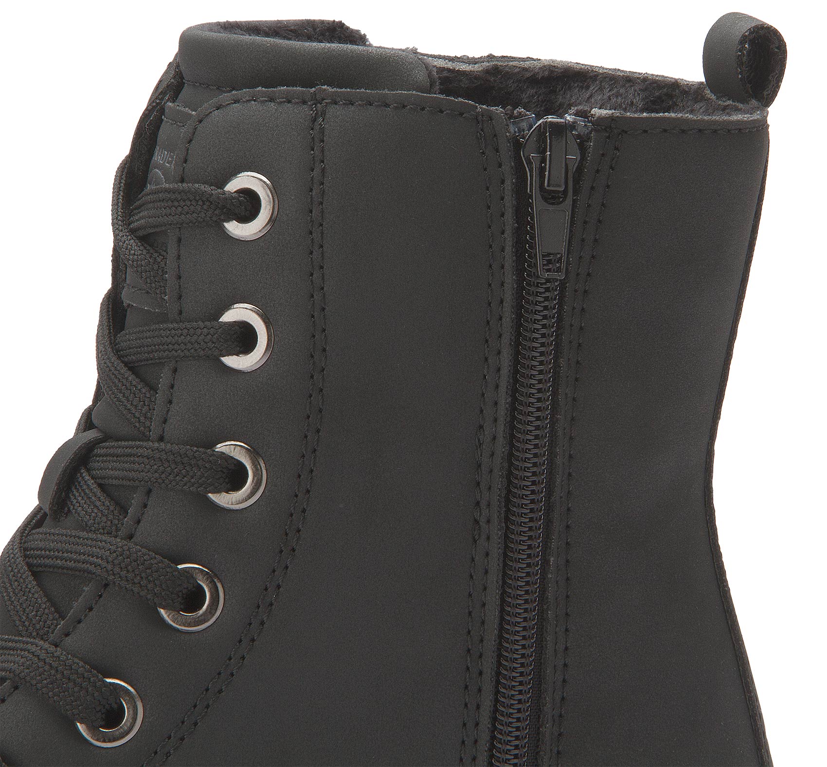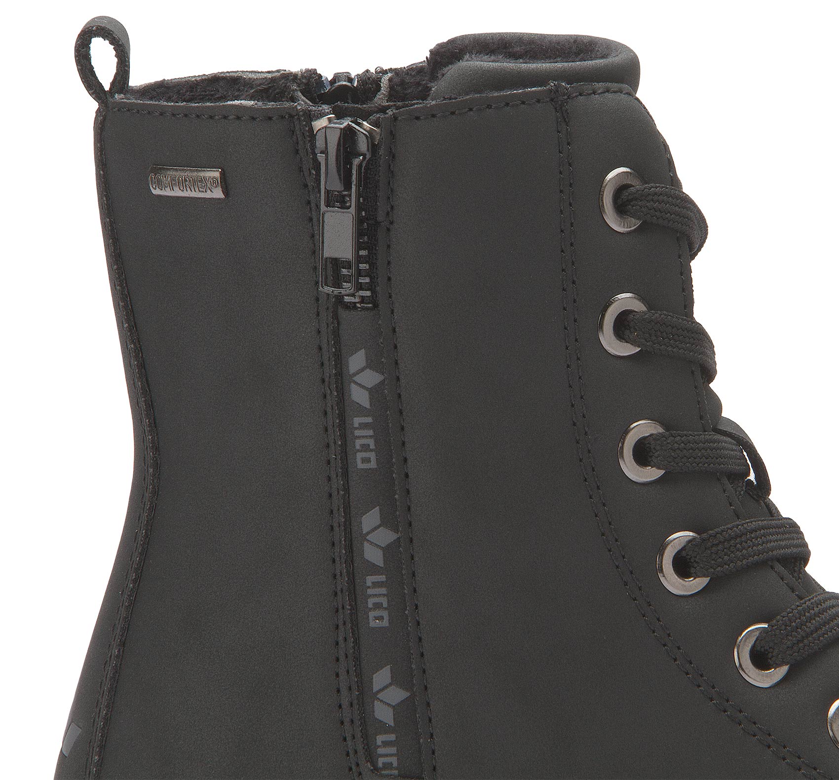Winter boots made of robust synthetic; practical lacing and additional zipper on the inside for easy on and off; waterproof and breathable Comfortex climate membrane; comfortable warm lining made of 100 % polyester; textile insole with warm lining; non-slip and flexible TPR outsole