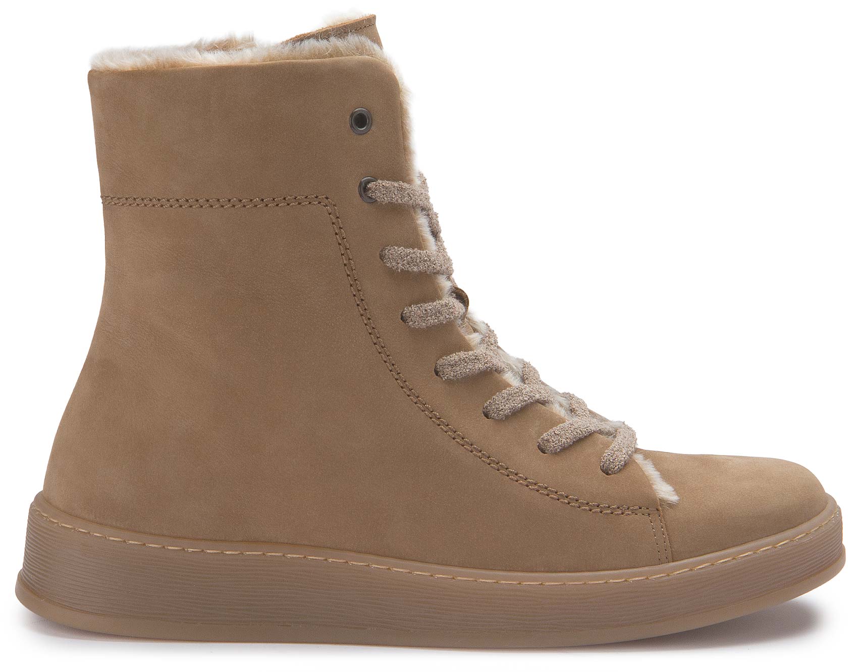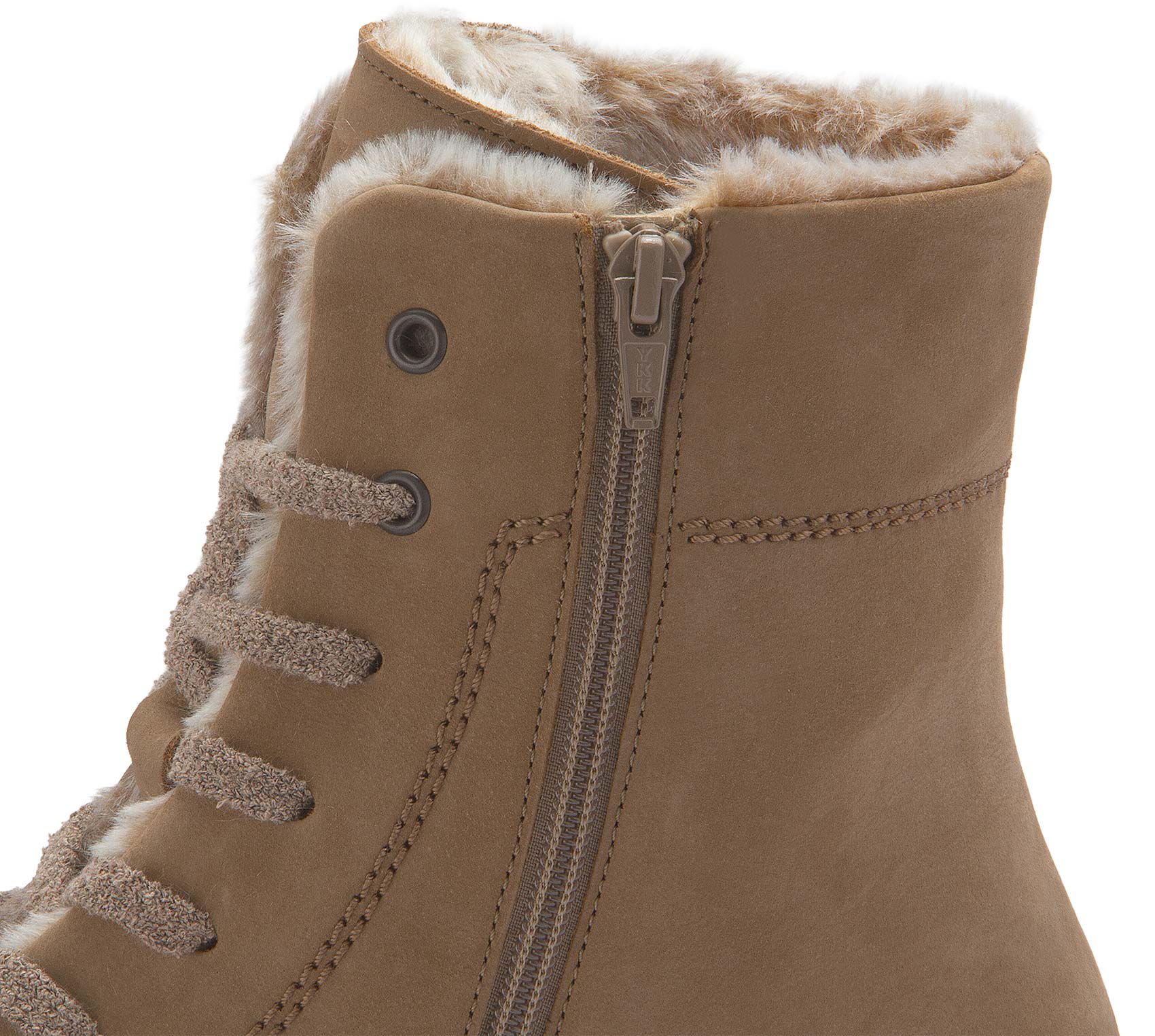 These warmly lined Gabor lace-up boots in H width offer extra space for larger feet and maximum comfort. The soft leather and fluffy lining ensure a pleasant foot climate, while the non-slip sole provides a secure grip. Perfect for stylish looks on cold days.