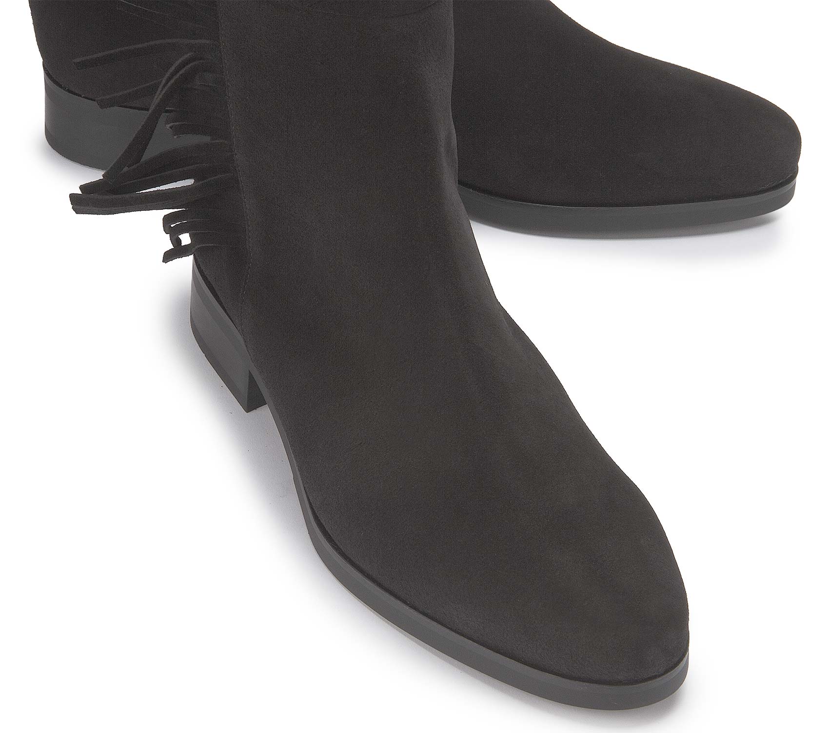 These boots from Bariello combine fashionable western flair with urban elegance. The soft suede and decorative fringes on the outside make them a real eye-catcher. A side zipper makes them easy to put on and take off.