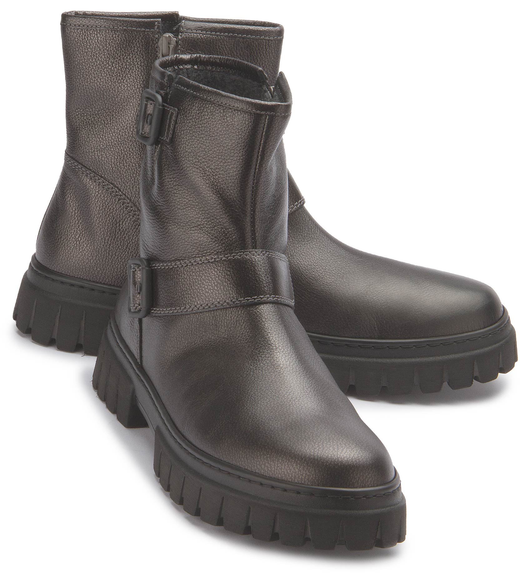 This Gabor ankle boot combines style and comfort in perfect harmony. Made from high-quality leather, this boot impresses with its striking design with two adjustable buckles and a practical zipper that makes it easy to put on and take off. The robust treaded sole offers optimum grip, while the removable footbed provides additional comfort and can be individually adjusted. An essential accessory for the fashion-conscious woman who values quality and functionality.