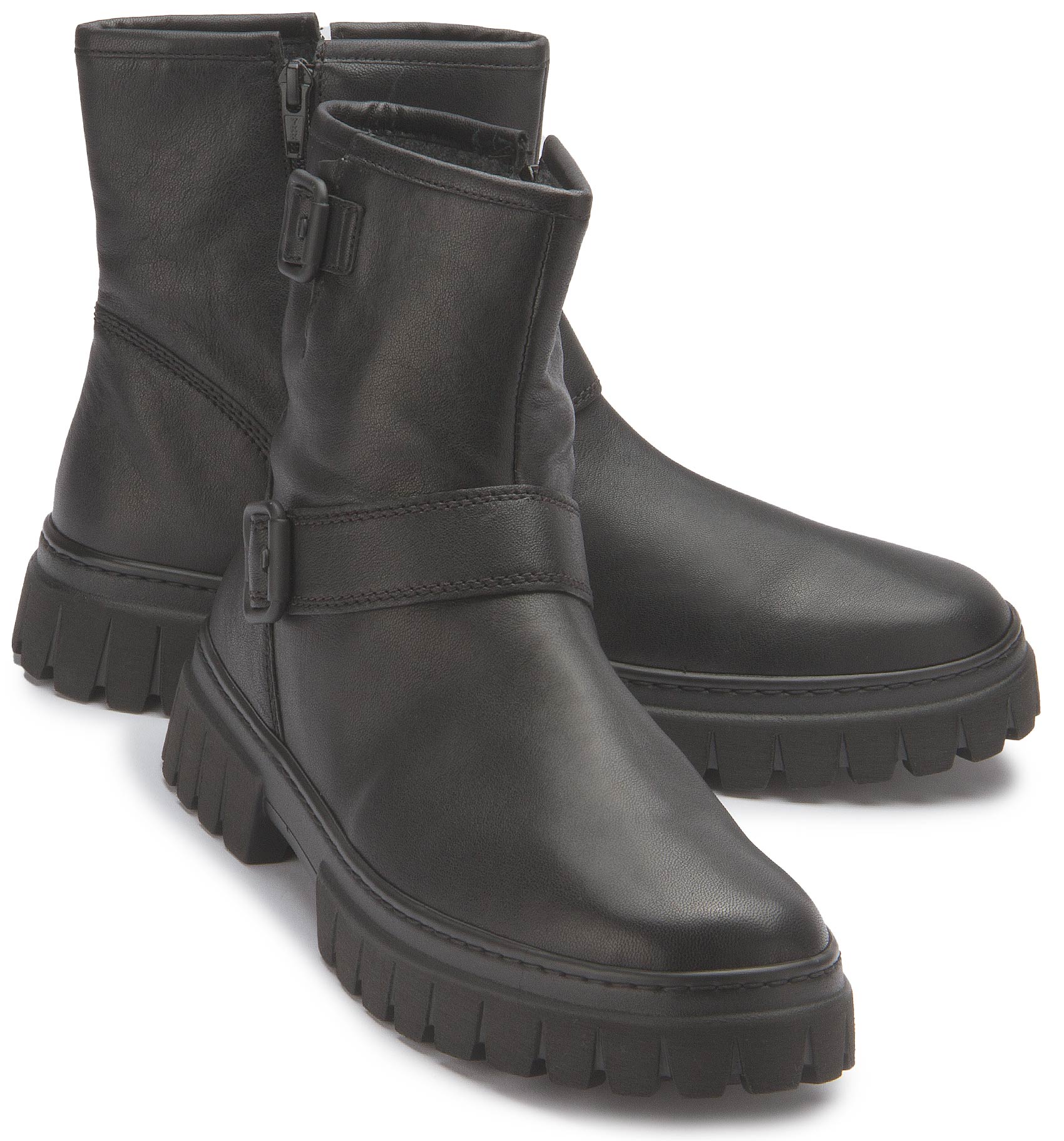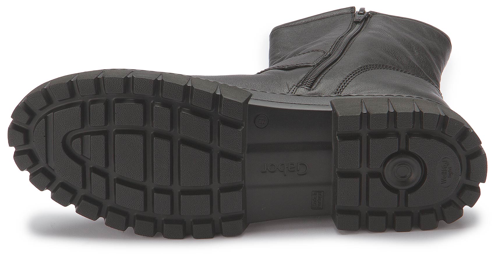 This Gabor ankle boot combines style and comfort in perfect harmony. Made from high-quality black leather, this boot impresses with its striking design with two adjustable buckles and a practical zipper that makes it easy to put on and take off. The robust treaded sole offers optimum grip, while the removable footbed provides additional comfort and can be individually adjusted. An essential accessory for the fashion-conscious woman who values quality and functionality.