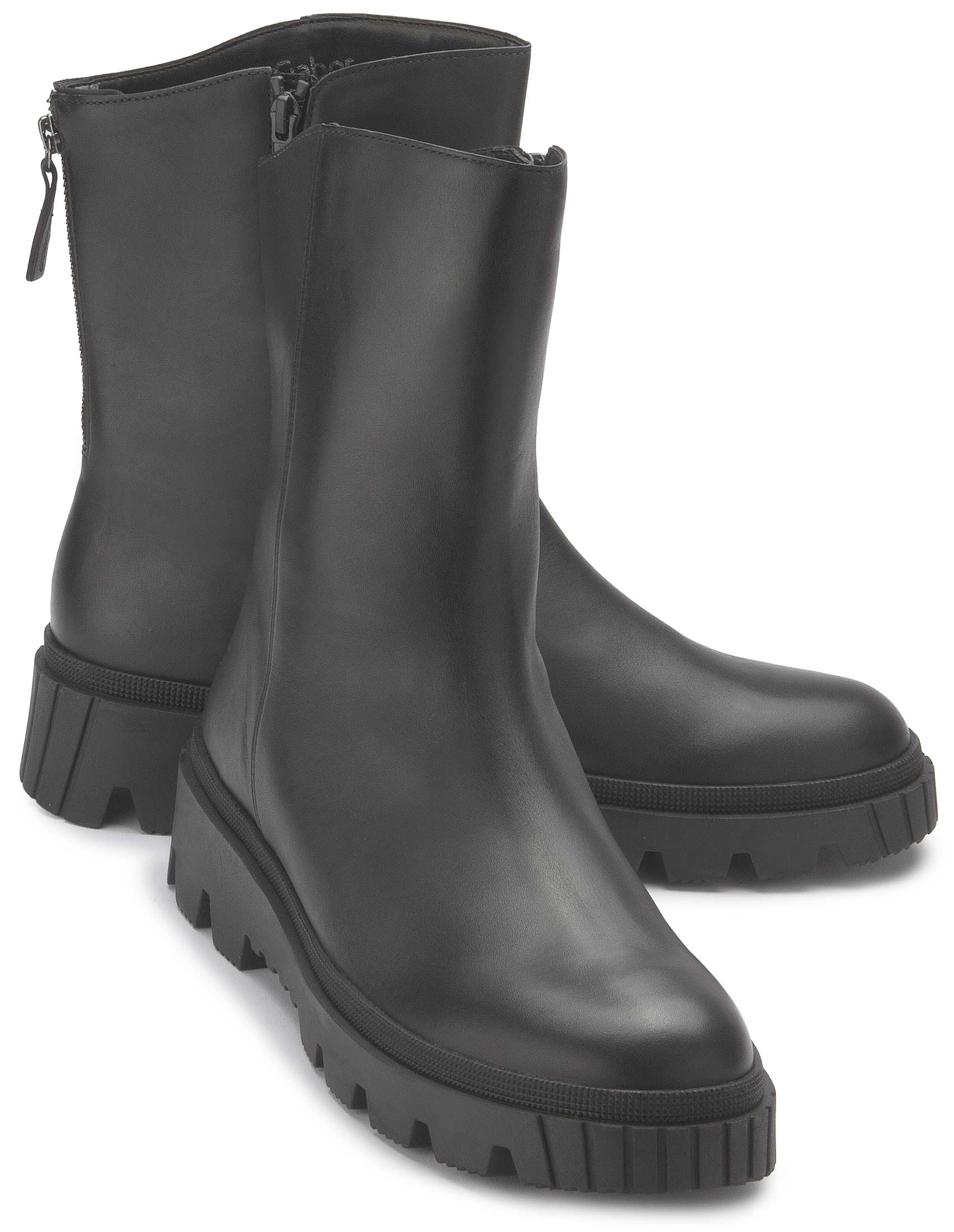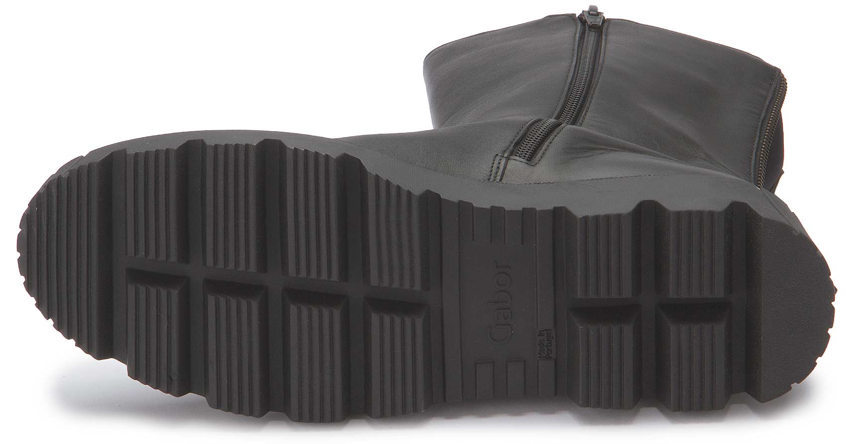 The black boot from Gabor impresses with its simple, modern design and robust treaded sole. Thanks to the high-quality leather and practical zipper, it offers both comfort and durability - perfect for a stylish everyday look.