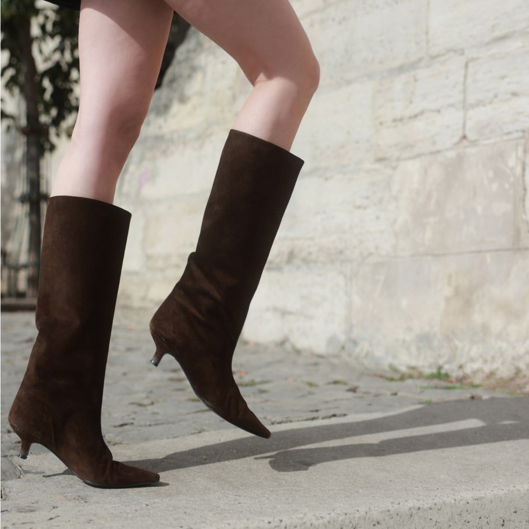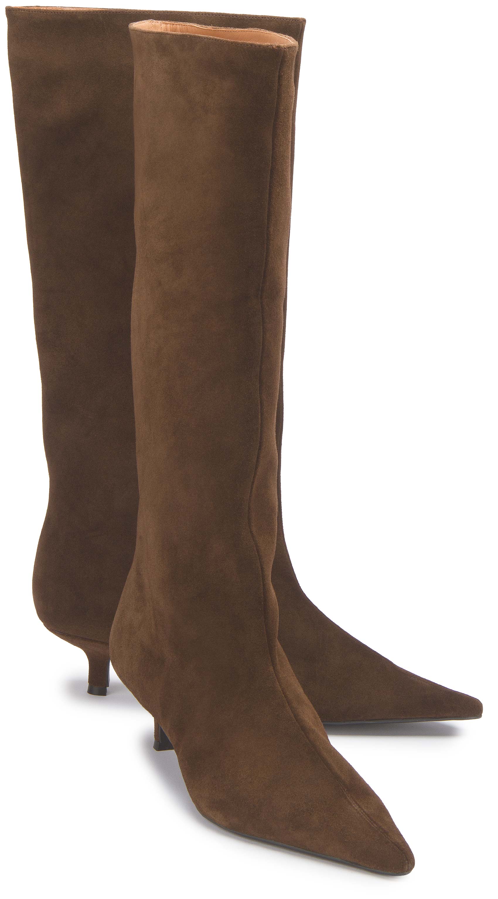 This elegant boot from Bariello impresses with its simple, elegant silhouette. Made from soft suede in warm brown, they add a stylish touch to any outfit. The delicate kitten heel and tapered shape ensure feminine elegance and timeless chic - perfect for modern, sophisticated looks.