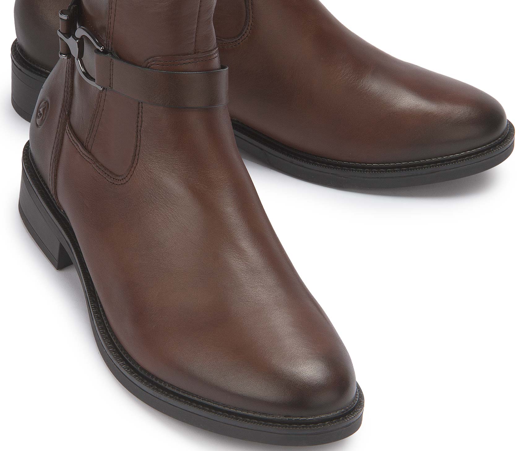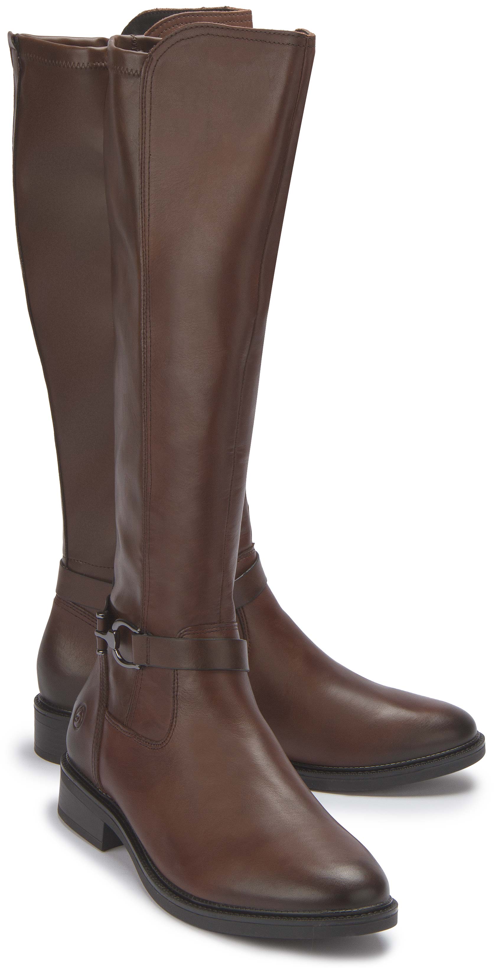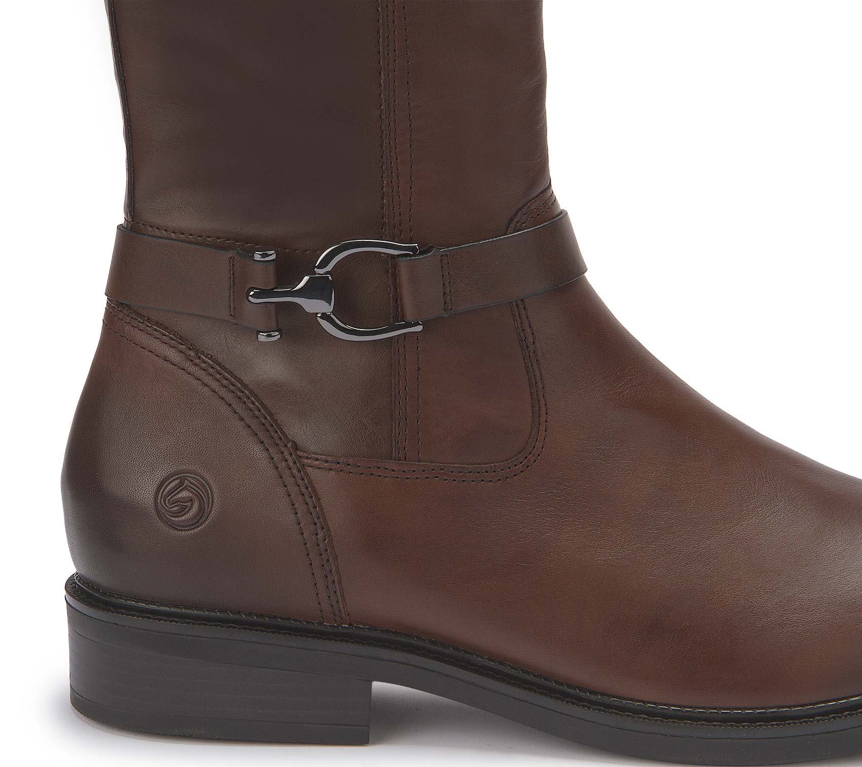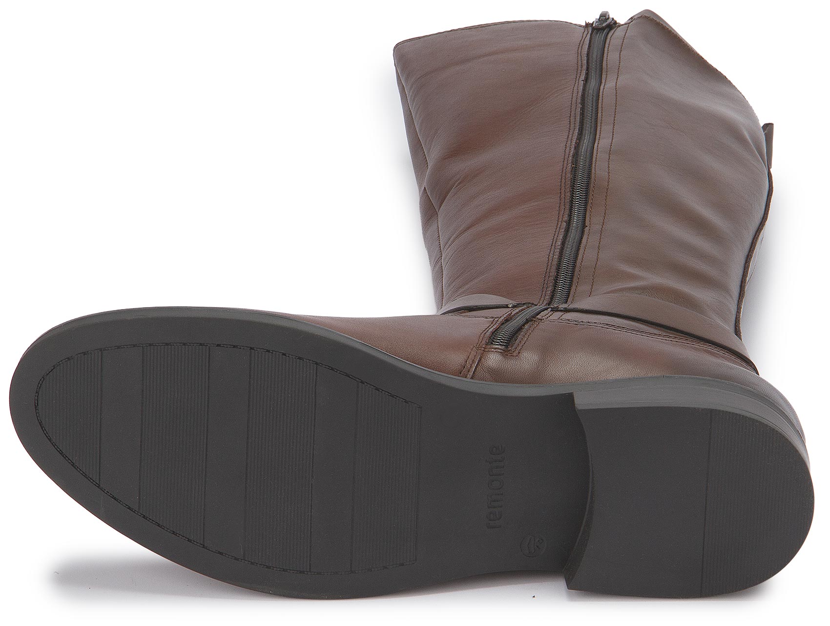On the move in style! These brown remonte high shaft boots made from smooth leather have everything a comfortable shoe needs. The zipper makes them easy to put on and take off. The flexible and cushioning sole and the padded and removable insole pamper your feet with all-round comfort. The shoe has the Vario shaft feature, which allows the shaft width to be individually adjusted. It doesn't get more comfortable than this!