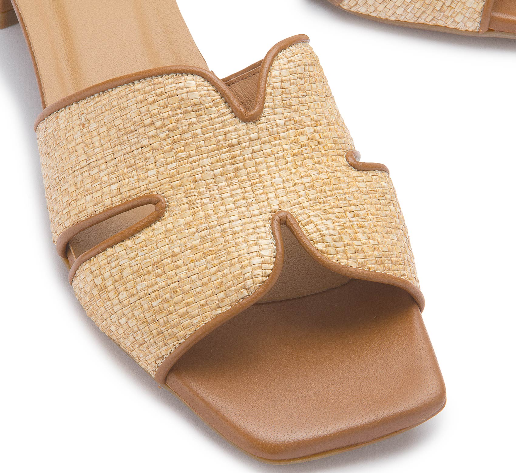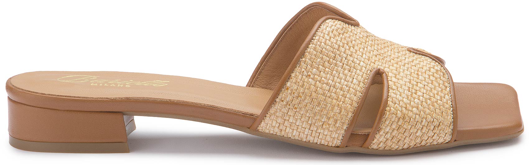 These classically beautiful beige mules from Bariello are made from raffia. The piping in smooth brown leather shows attention to detail. The leather insole is softly padded. Absolutely unbeatable with linen trousers or a dress!