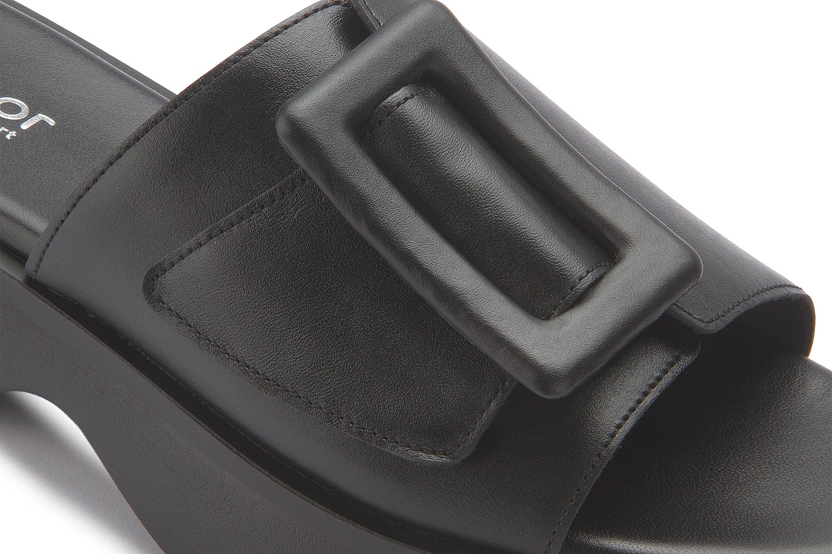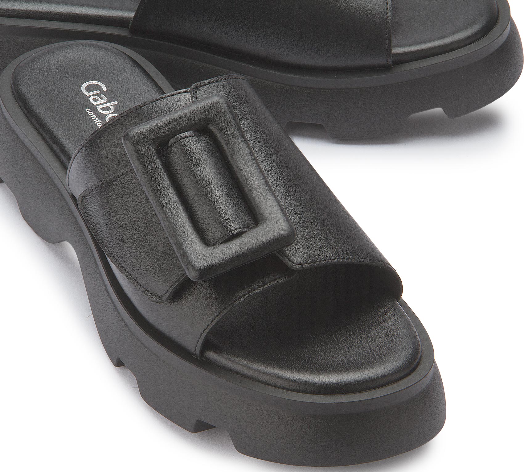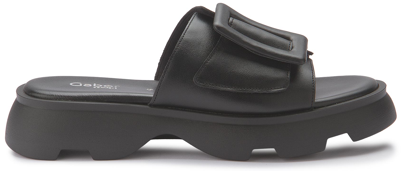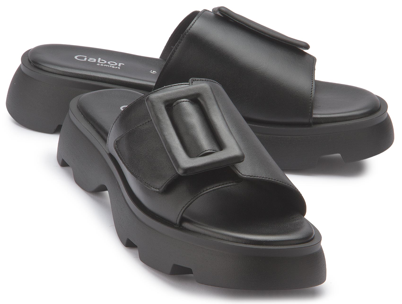 These elegant mules from Gabor impress with high-quality smooth leather in classic black and a stylish decorative buckle as an eye-catcher. The soft leather lining ensures a high level of comfort, while the timeless design can be combined in a variety of ways - ideal for style-conscious appearances in everyday life or at the office.