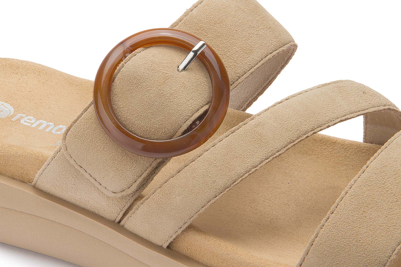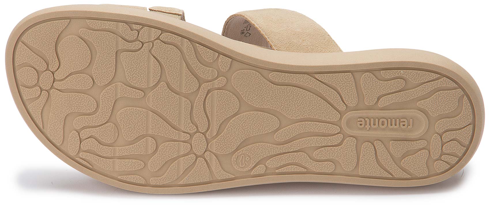 Get through the warm days in comfortable style! These beige remonte mules for women made of suede are sure to attract attention. A Velcro fastener makes them quick and easy to slip on. The Lite 'n Soft technology combines a lightweight outsole with a soft footbed. Jackpot!