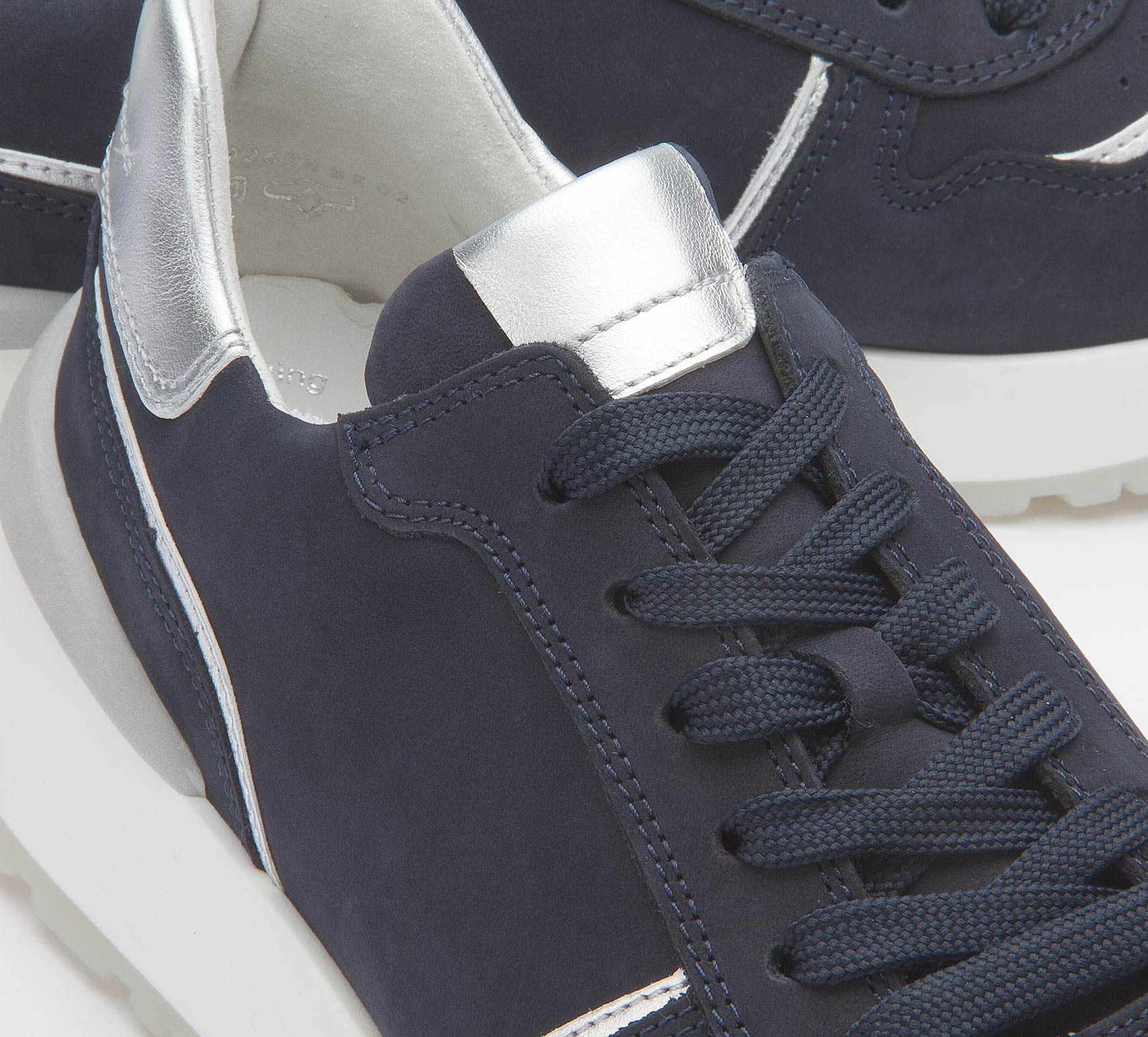 Discover the trendy Gabor sneaker in blue. The high-quality nubuck leather and treaded sole make them the perfect companion. Simply slip them on, feel good and go about your day in style.