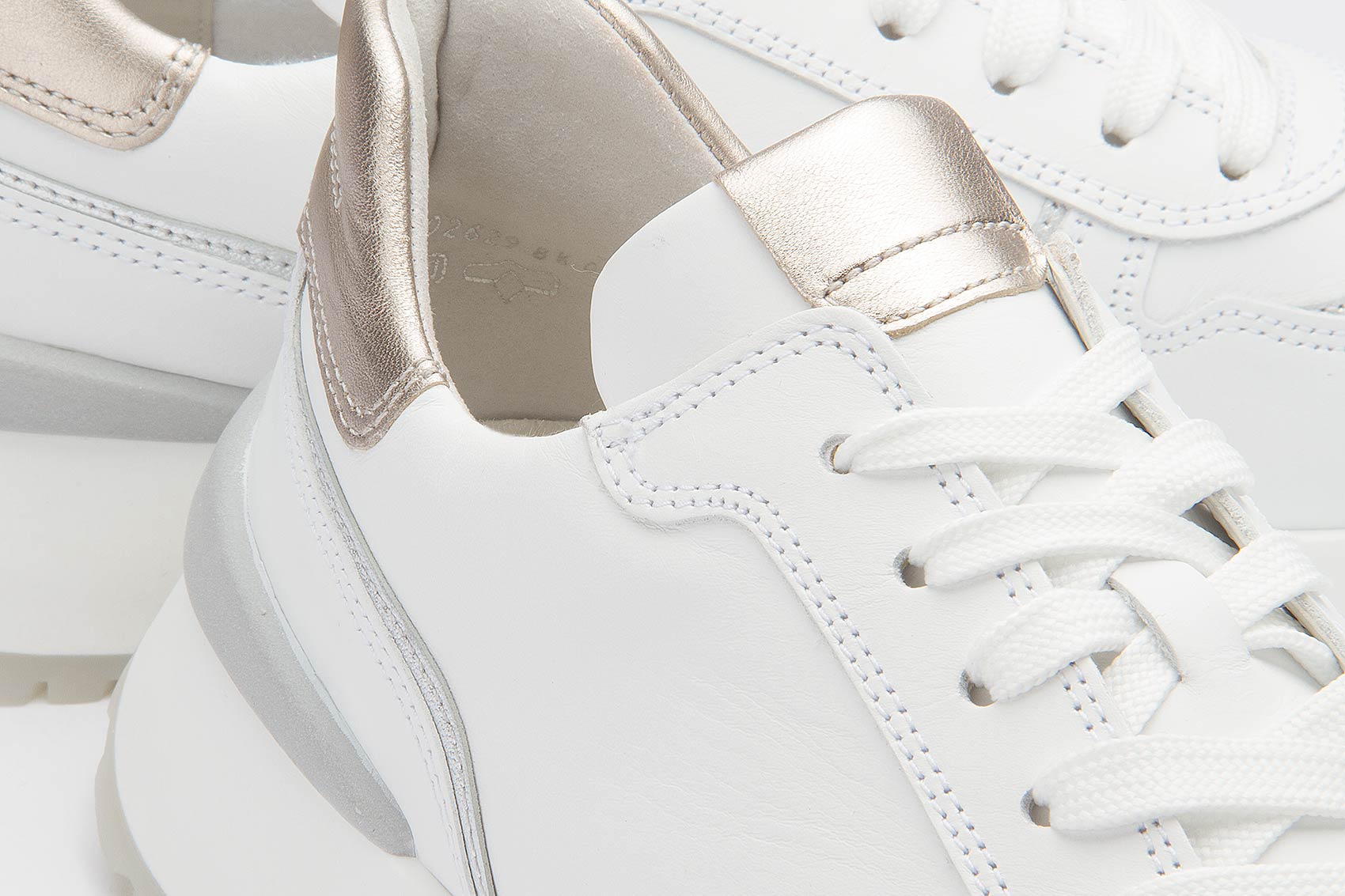 Discover the trendy Gabor sneaker in white. The high-quality nappa leather and treaded sole make them the perfect companion. The rose gold and silver details enhance the design. Simply slip them on, feel good and go about your day in style.