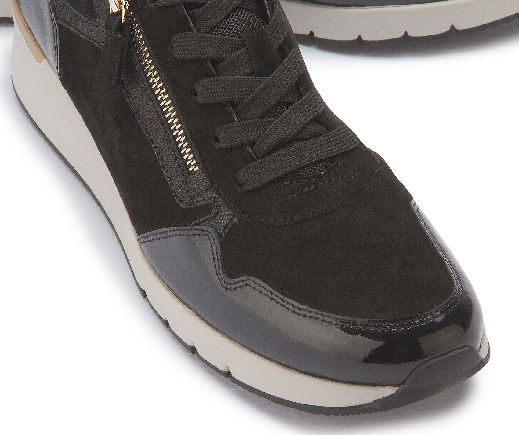 Gabor presents stylish and versatile shoes. The timeless design goes with any outfit and the comfortable casual shoe impresses with its sporty shape. Whether jeans, chinos, shorts or a skirt - this sneaker goes with everything. A real all-rounder with a comfortable G width.