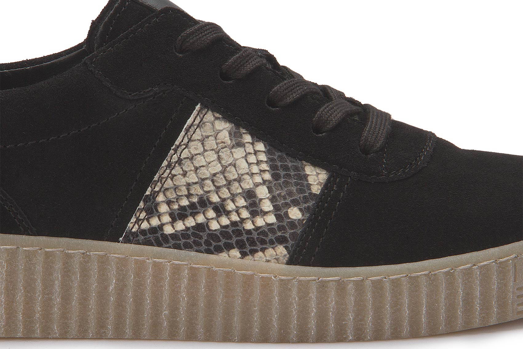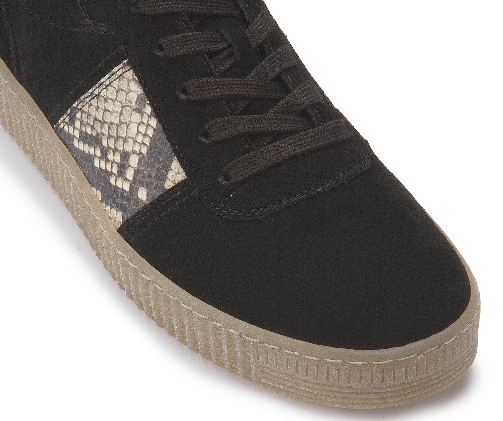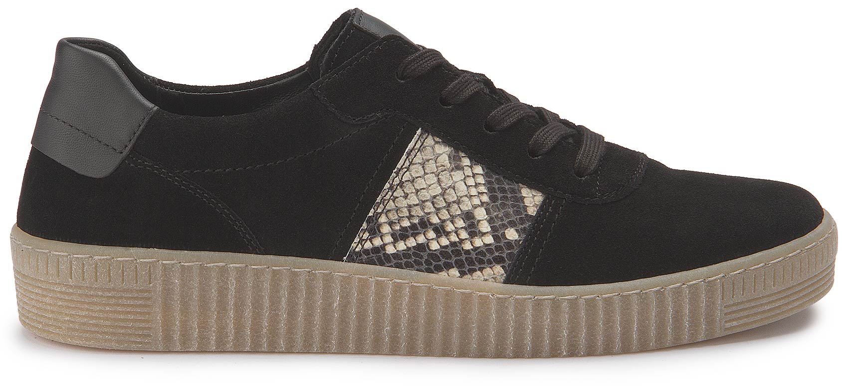 These stylish trainers from Gabor impress with their black suede leather, shiny snake detail and fashionable platform sole. They add a trendy touch to any outfit and are also extremely comfortable to wear. The integrated removable footbed also allows you to use your own insoles - ideal for individual comfort.