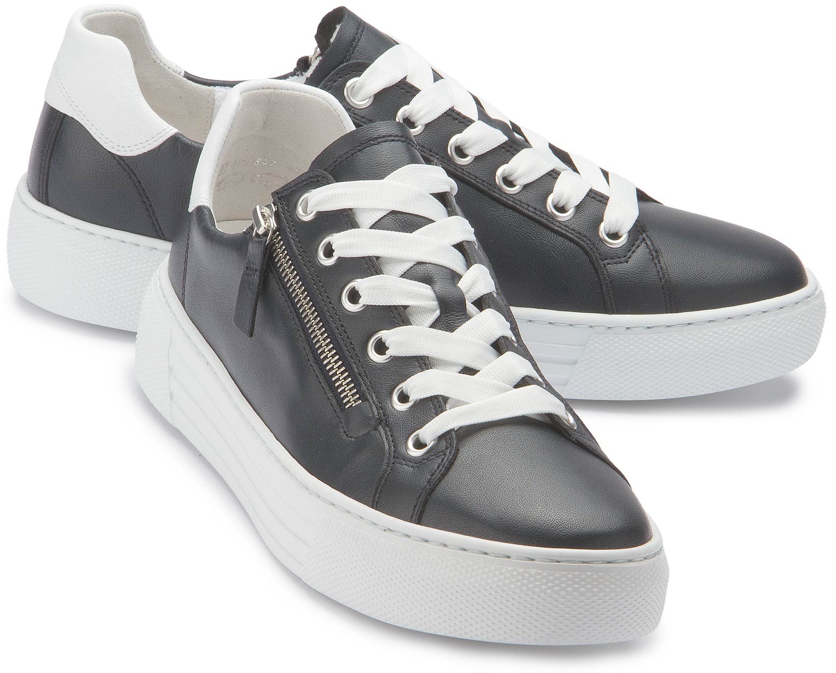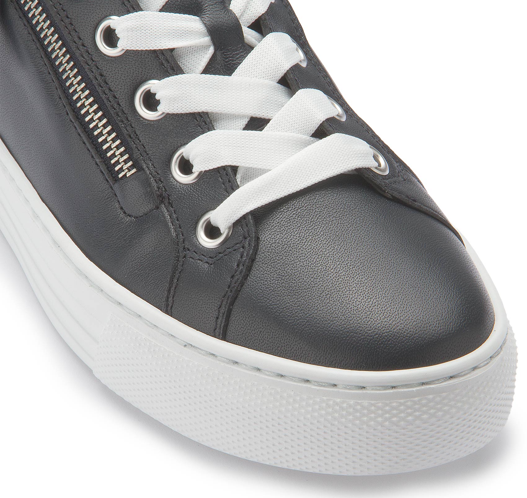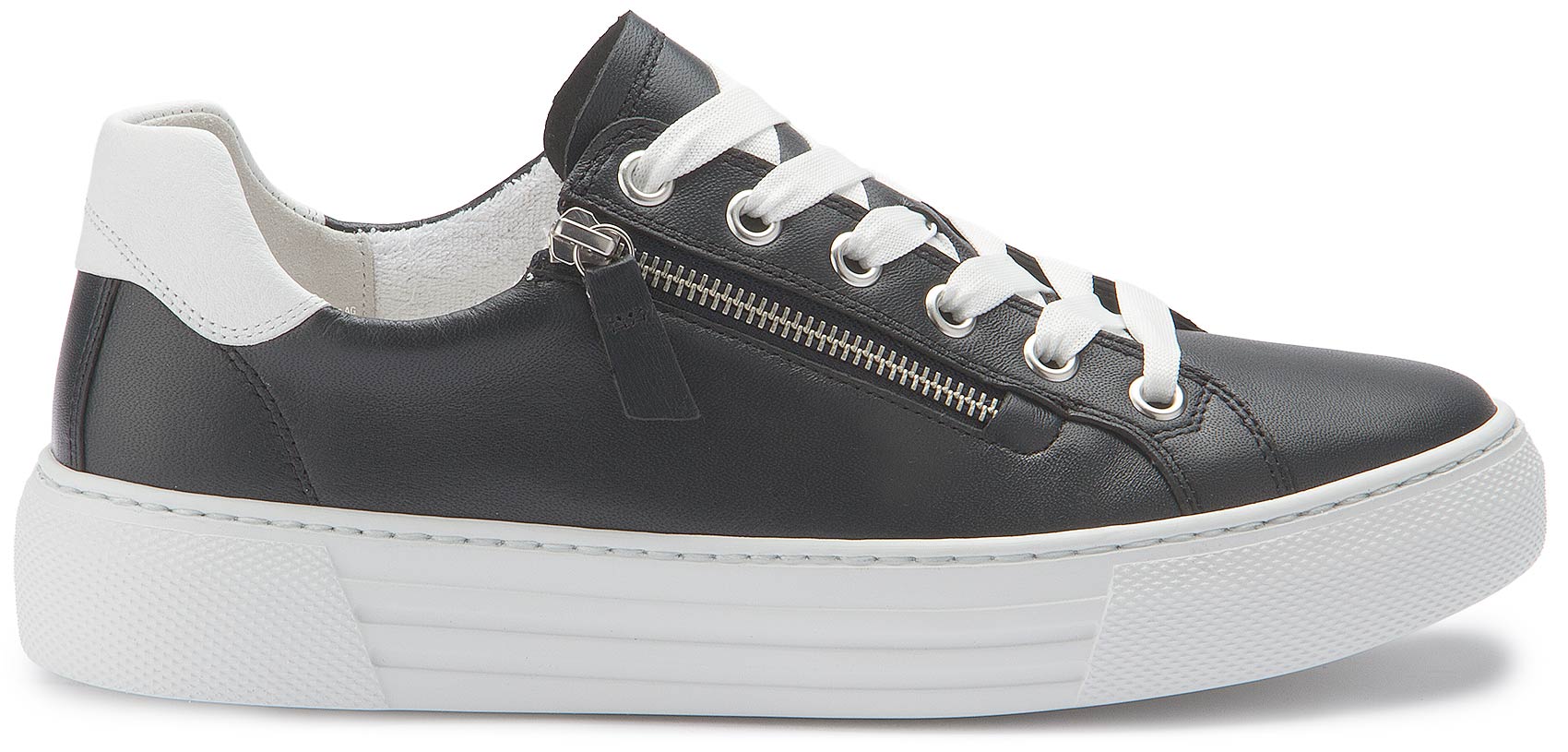 Gabor presents its latest sneaker: an elegant model made of blue leather with a sophisticated zipper on the outside. Thanks to the generous G width and the practical removable footbed, the shoe offers exceptional comfort. A successful combination of sophisticated design and outstanding comfort!