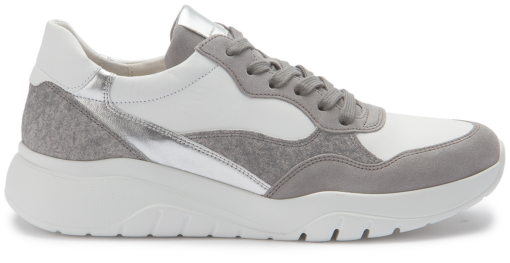 This fashionable sneaker from Gabor impresses with a high-quality leather lining and a practical removable footbed for individual comfort. The harmonious combination of different materials and colors gives the shoe a modern look. The robust sole ensures a secure grip and makes the sneaker an ideal companion for long autumn walks. Perfect for anyone who wants fashionable comfort even in the cooler months.