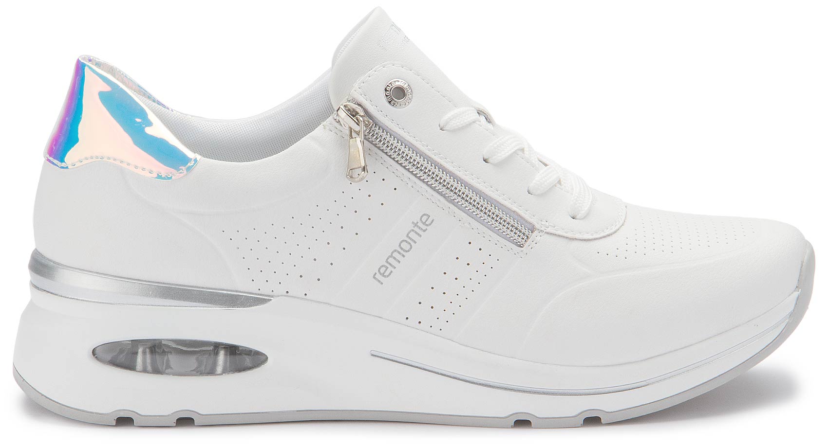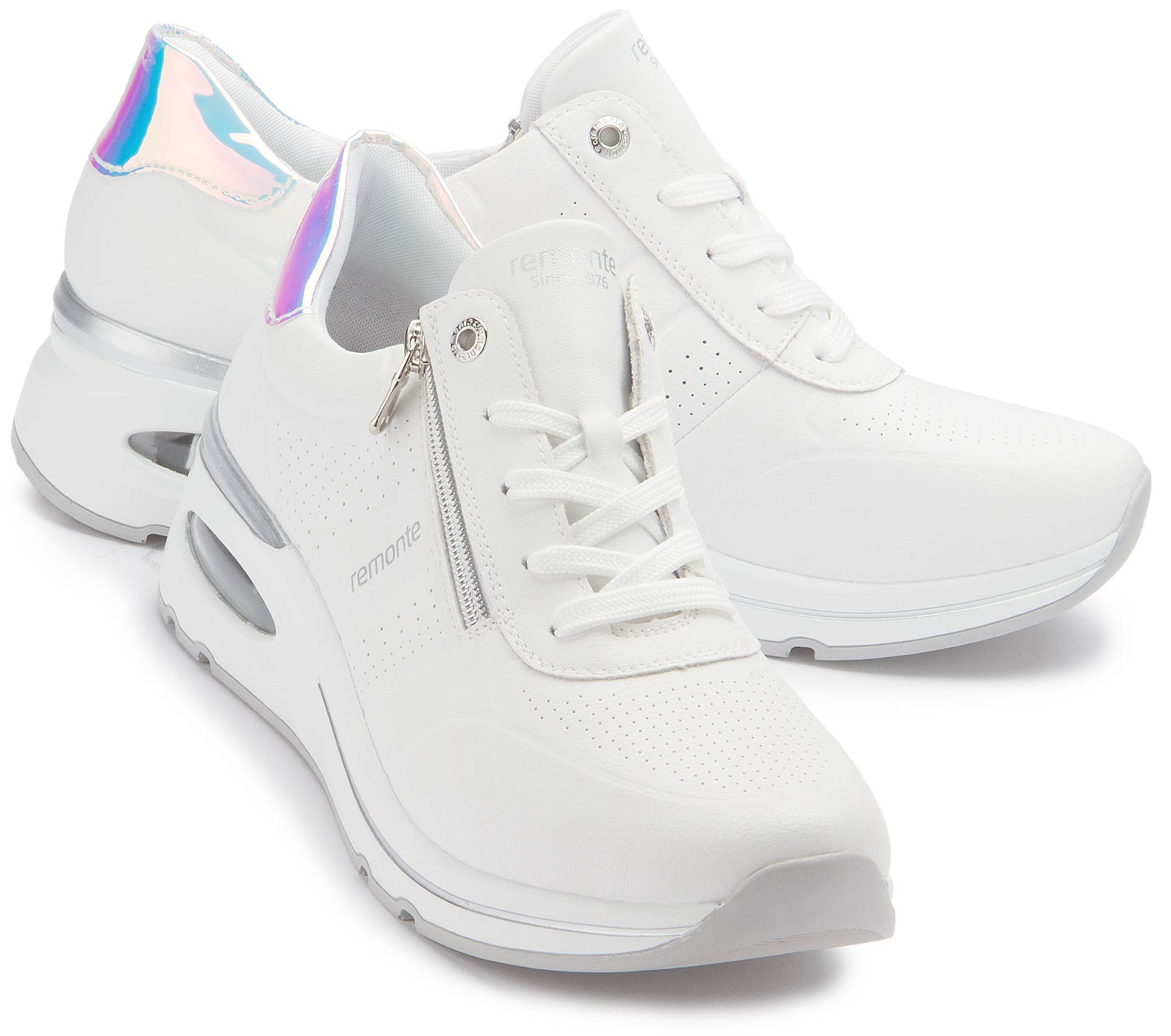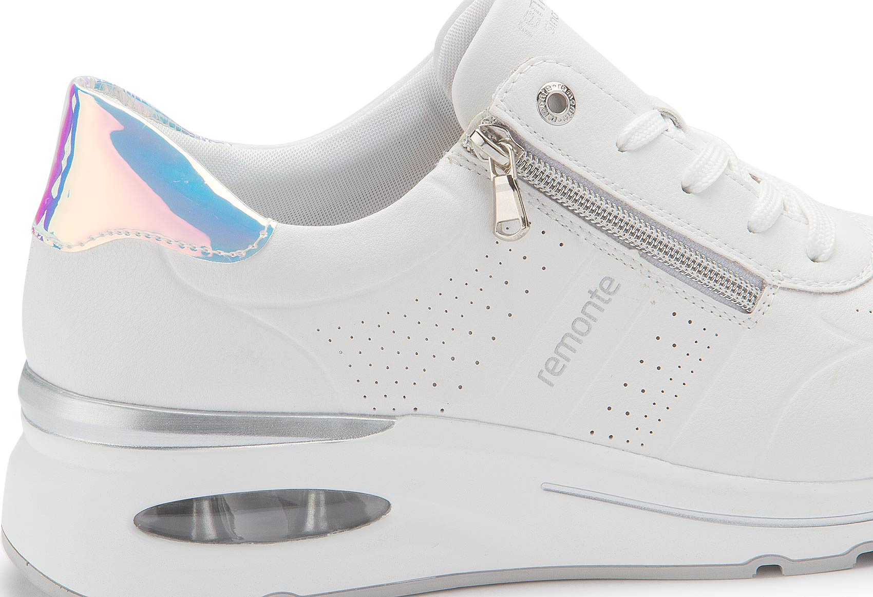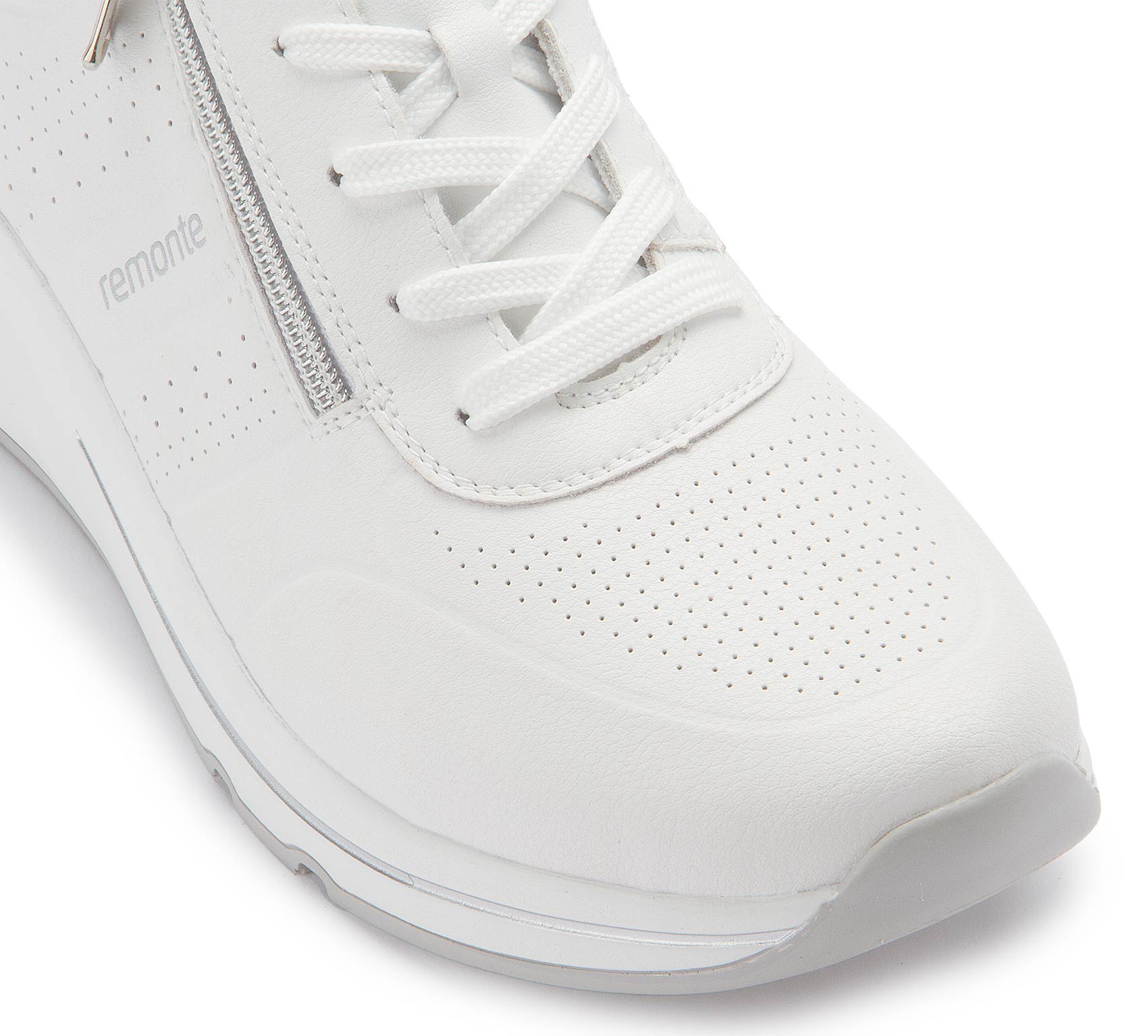 These comfortable white remonte trainers made from smooth leather impress with their cool design and functional power. The laces give the shoe a perfect fit on the foot. The Lite 'n Soft technology combines a lightweight outsole with a padded and removable insole. The model has an extra-wide cut and is equipped with a breathable micro velour lining.