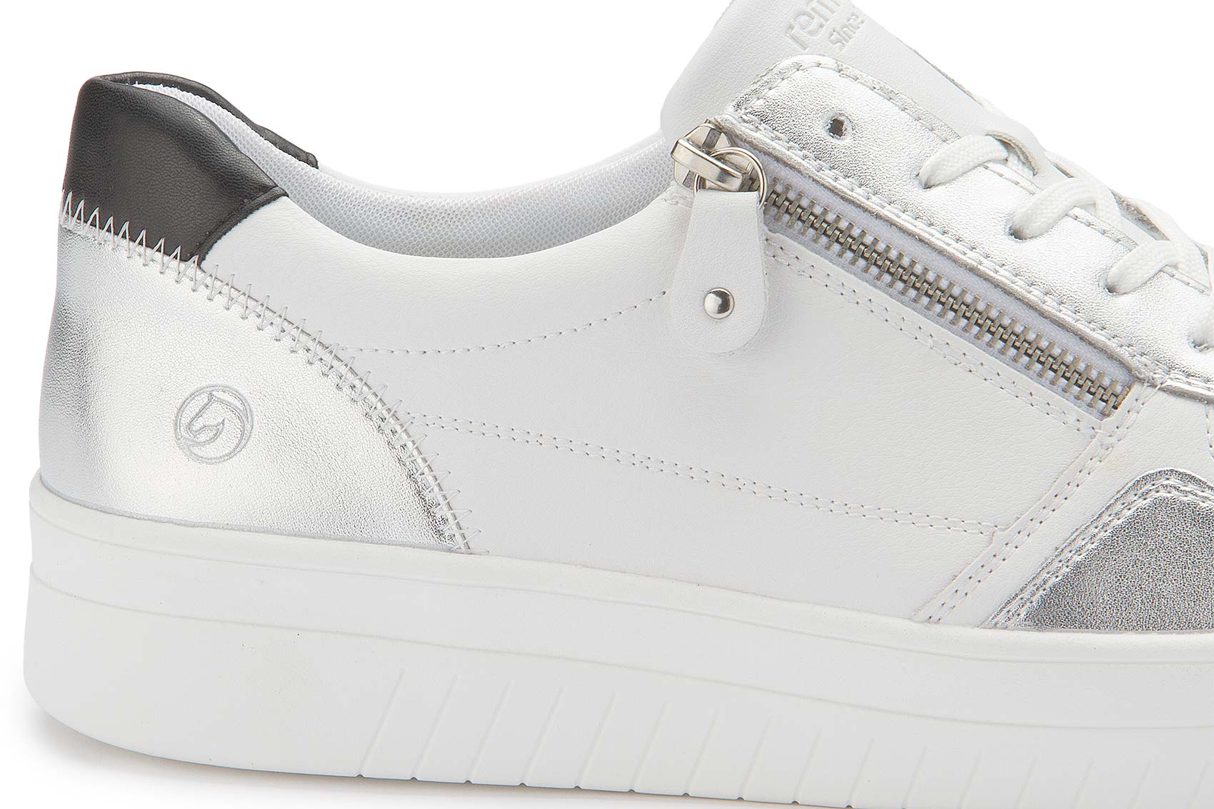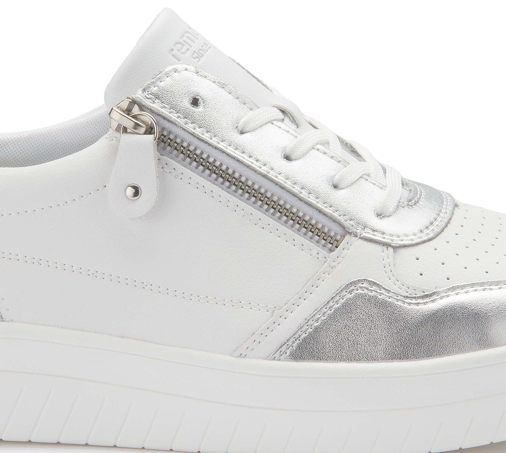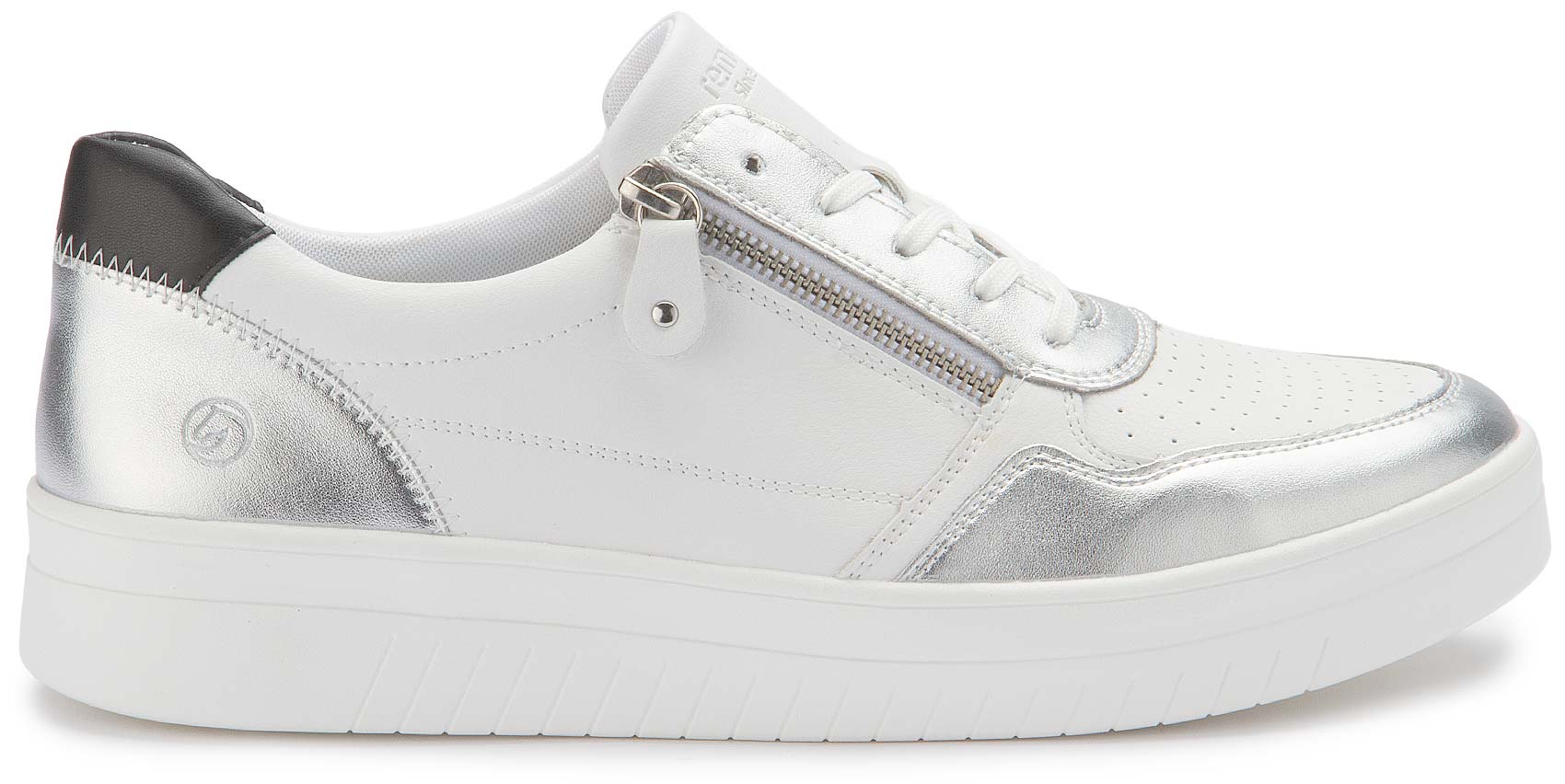 White is the trump card - because shoes in this classic color always fit. These white remonte trainers made of smooth leather will accompany you through the season with style and the best walking comfort. Despite the laces, the shoe can be easily closed with a zipper. Thanks to the tried-and-tested remonte Lite 'n Soft technology and the padded and removable insole, these trainers are light as a feather and comfortable to wear. The micro velour lining ensures absolute comfort underfoot.