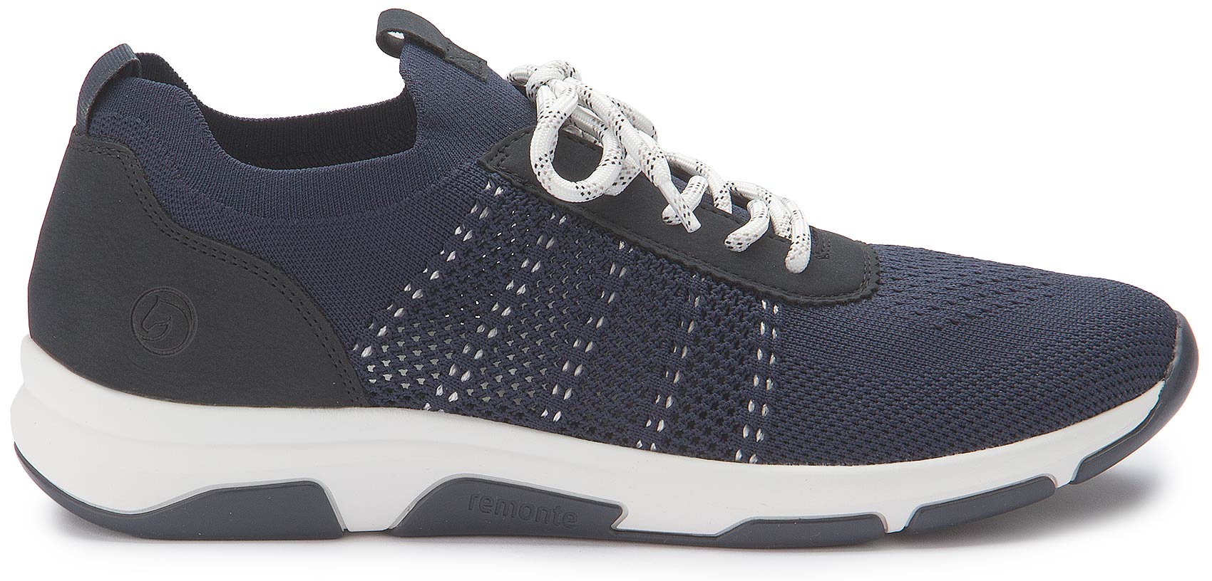 Time has run out again and you need to get your shoes on as quickly as possible... These dark blue Remonte sneakers for women are an absolute must-have in any shoe wardrobe. The elasticated strap makes them easy to slip on. Thanks to the tried-and-tested Remonte Lite 'n Soft technology and the padded and removable insole, these slip-on trainers are light as a feather and comfortable to wear. The model is cut in a comfort width.