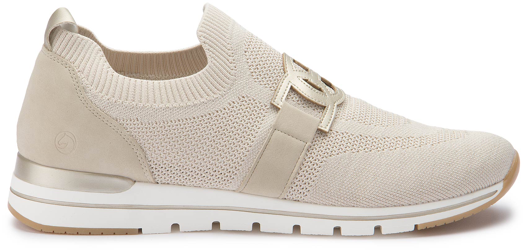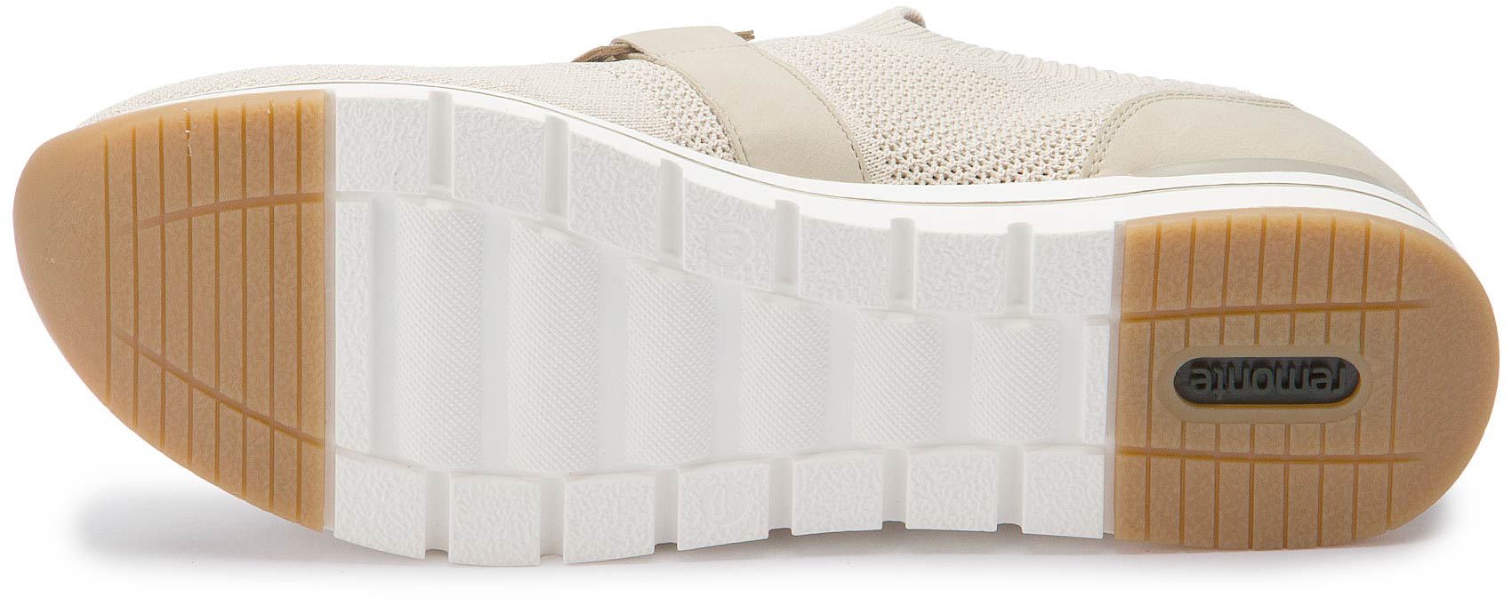Slipping on to perfection: these beige remonte trainers are an absolute must-have in any shoe wardrobe. The elasticated strap makes them easy to slip on. The design is complemented by the padded, removable insole and a non-slip, lightweight sole. A great, comfortable companion for beautiful days!