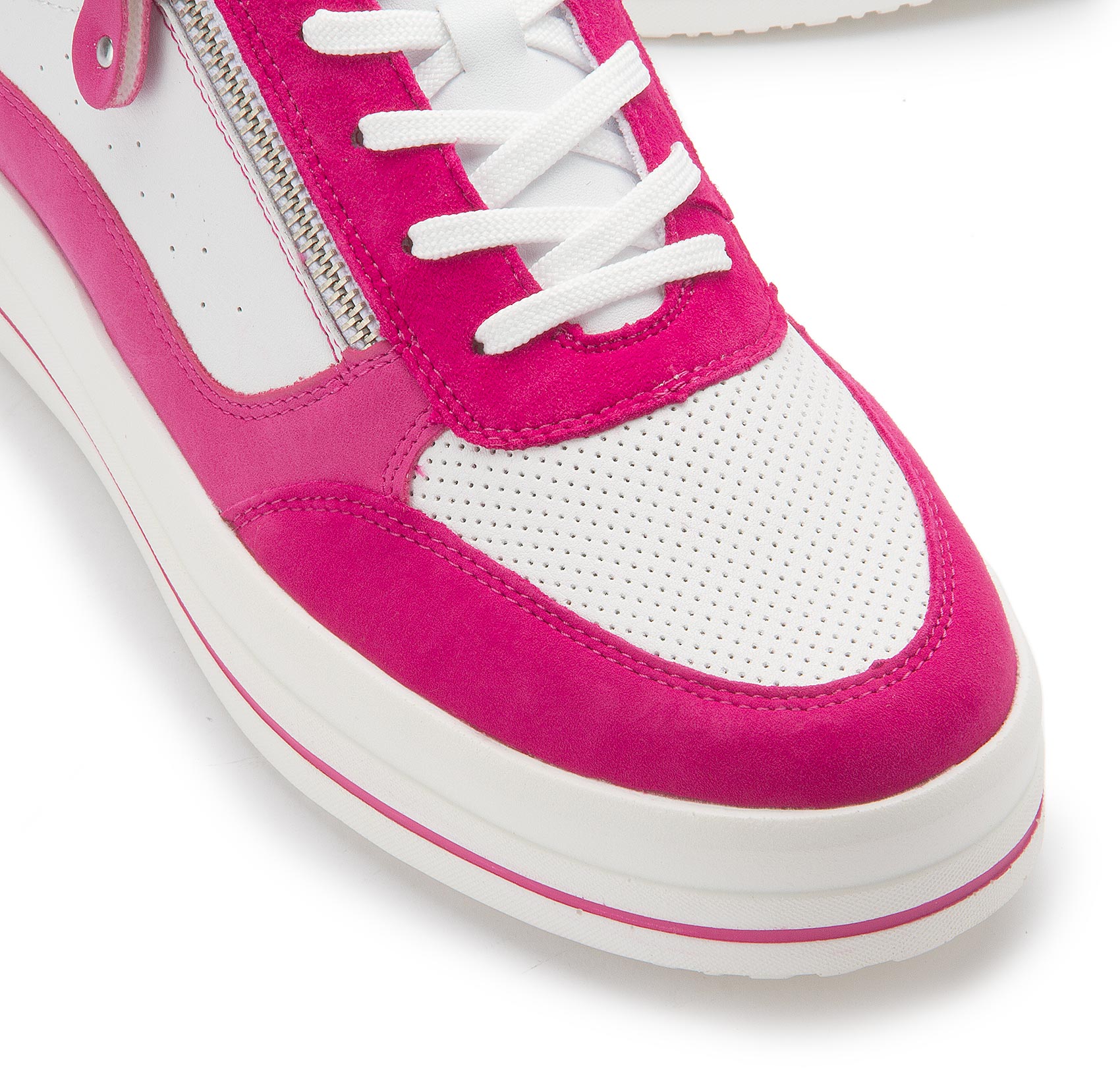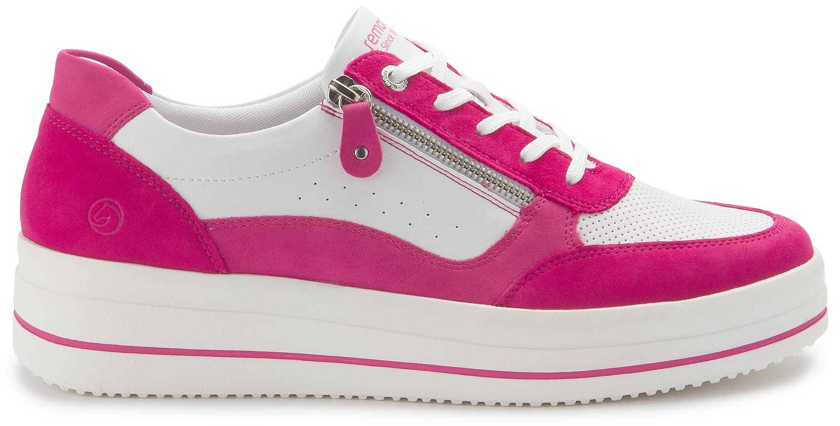 Cool style with maximum comfort? Here it is! These snow-white leather remonte trainers for women will make the hearts of fashion-conscious women beat faster. The zipper is complemented by a lace-up fastening, guaranteeing optimum support and a perfect fit. Lite 'n Soft: a soft feel in the removable footbed meets an ultra-light outsole. The sneakers are equipped with a lightweight micro velour lining. What are you waiting for?