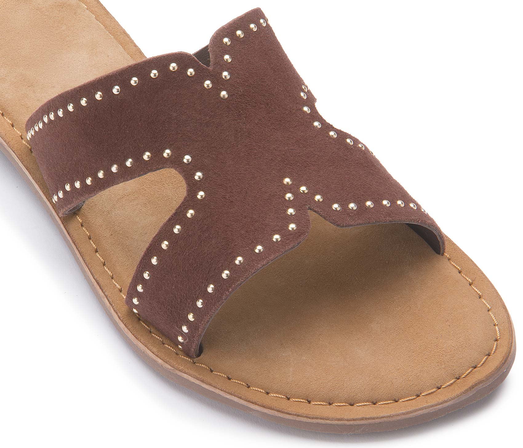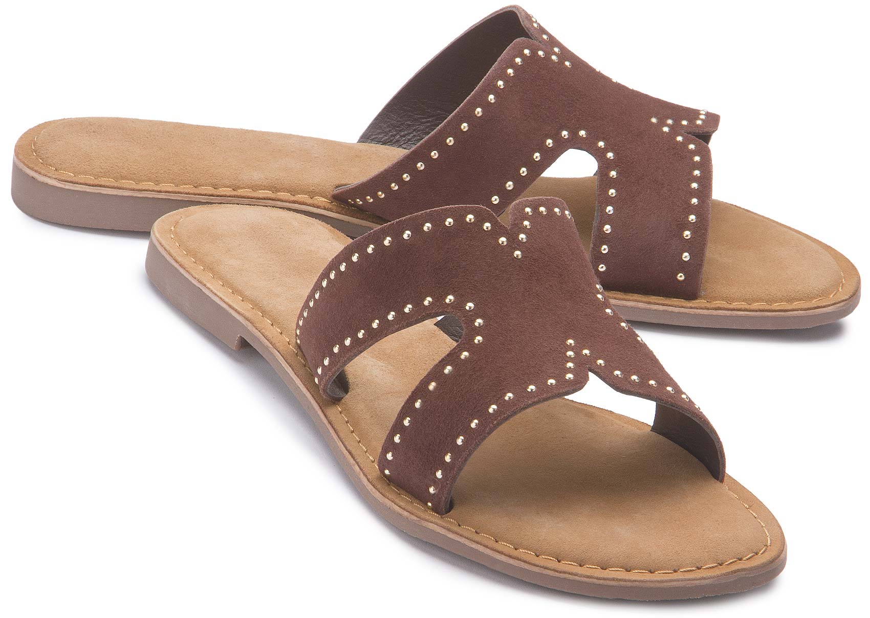 Diese trendigen Pantoletten bestechen durch ihr hochwertiges, Obermaterial und die dekorativen Nieten, die dem Design eine edle Note verleihen. Das weich gepolsterte Fußbett sorgt für hohen Tragekomfort, während die offene Form ein angenehmes, luftiges Gefühl bietet. Perfekt für stilvolle Sommer-Looks – unkompliziert und vielseitig kombinierbar.