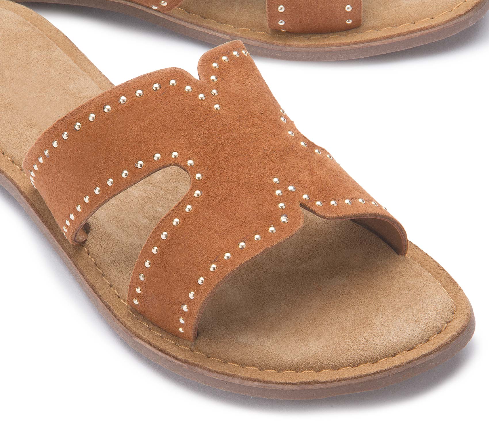 Diese trendigen Pantoletten bestechen durch ihr hochwertiges, Obermaterial und die dekorativen Nieten, die dem Design eine edle Note verleihen. Das weich gepolsterte Fußbett sorgt für hohen Tragekomfort, während die offene Form ein angenehmes, luftiges Gefühl bietet. Perfekt für stilvolle Sommer-Looks – unkompliziert und vielseitig kombinierbar.