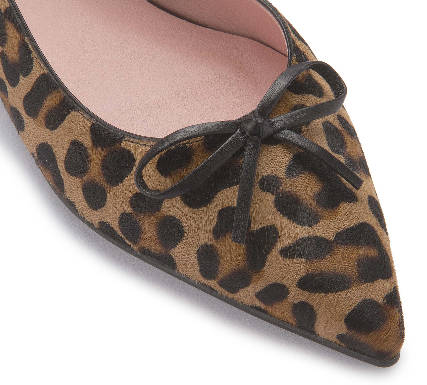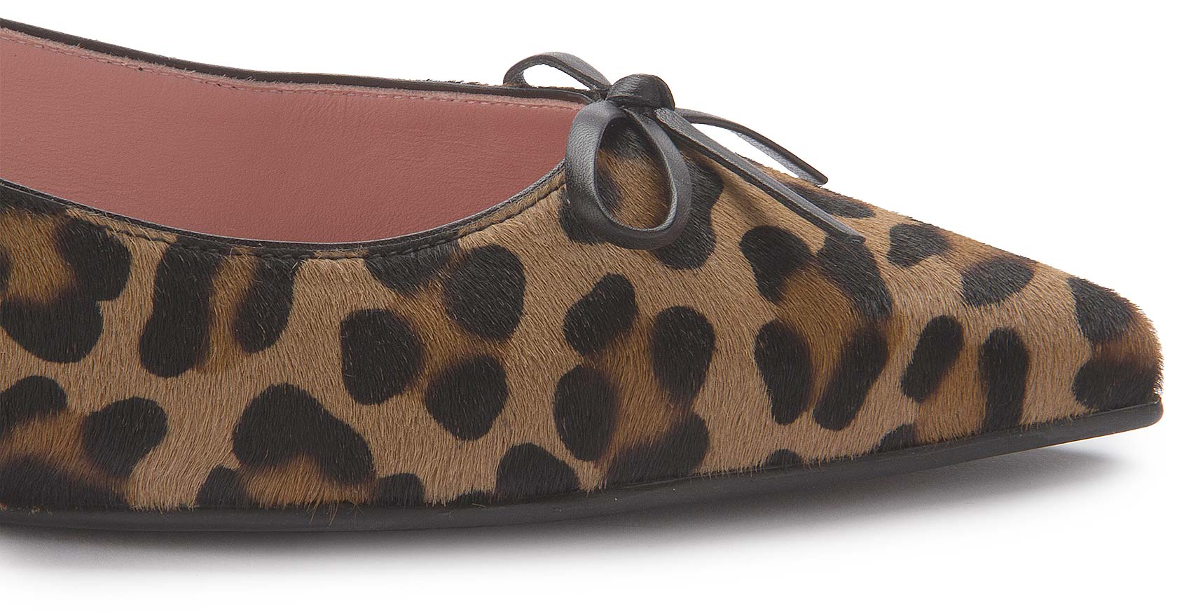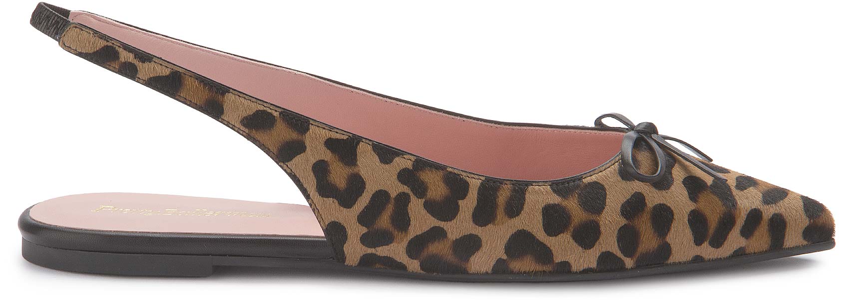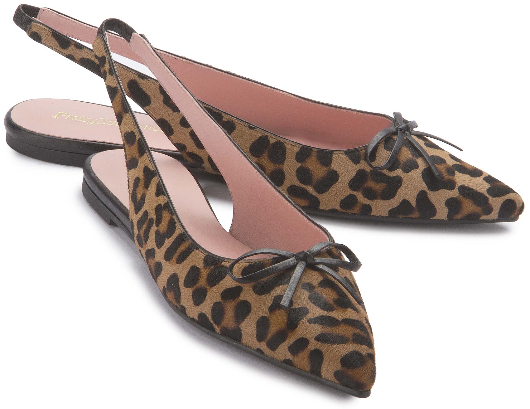 These pointed sling ballerinas from Pretty Ballerina are doubly animalistic. On the one hand, the slip-on shoes are made of leather with fur trim and on the other, they are adorned with a cool leopard pattern. You can style animalistic looks with them.