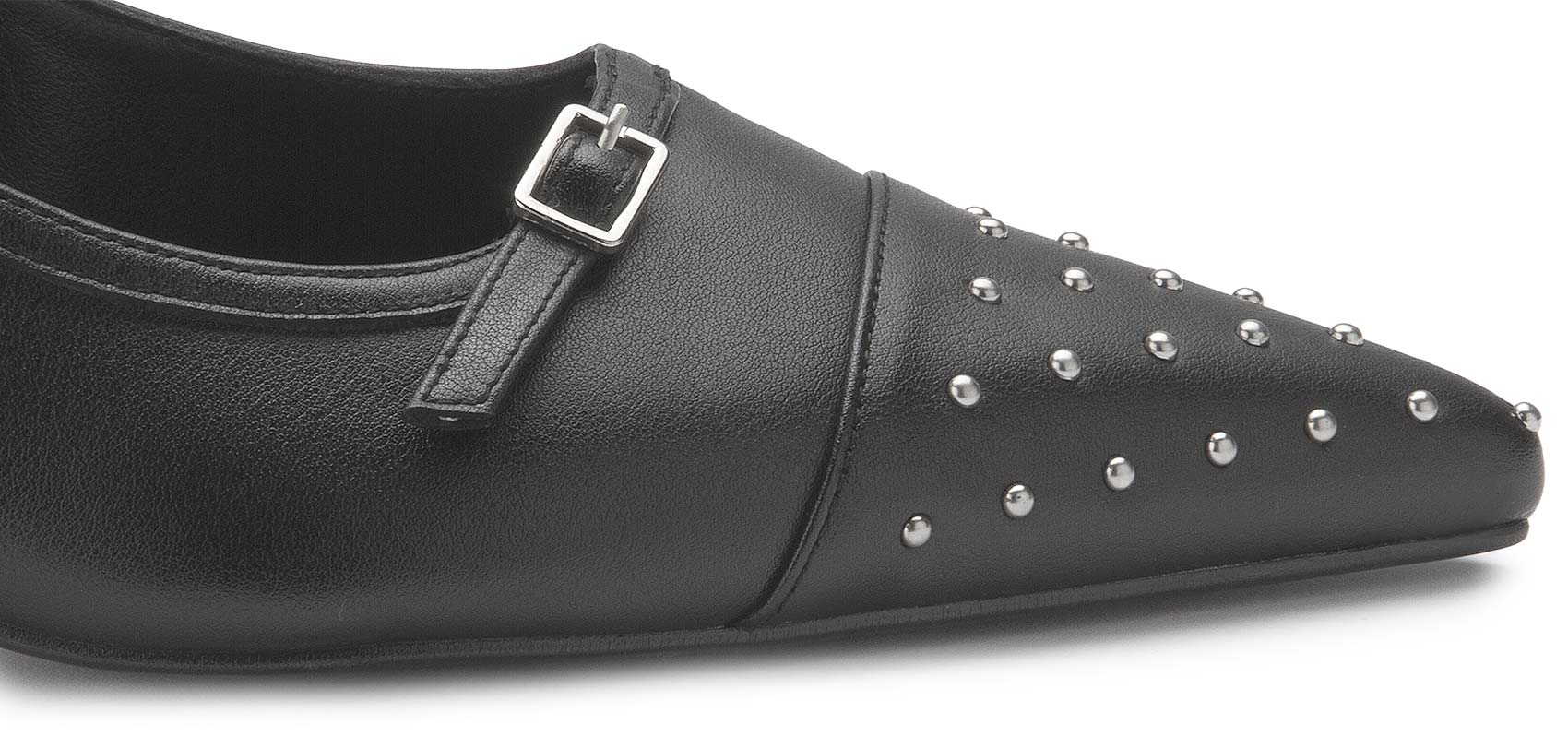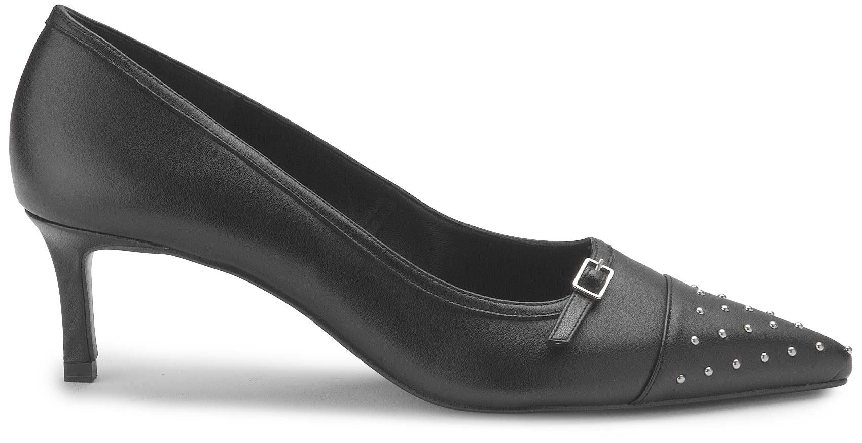 These sophisticated pumps from Bariello combine classic elegance with modern chic. The pointed shape and subtle stud embellishments on the toe cap give the shoe a stylish sophistication, while the small buckle adds a feminine accent. Ideal for elegant business looks or special occasions.