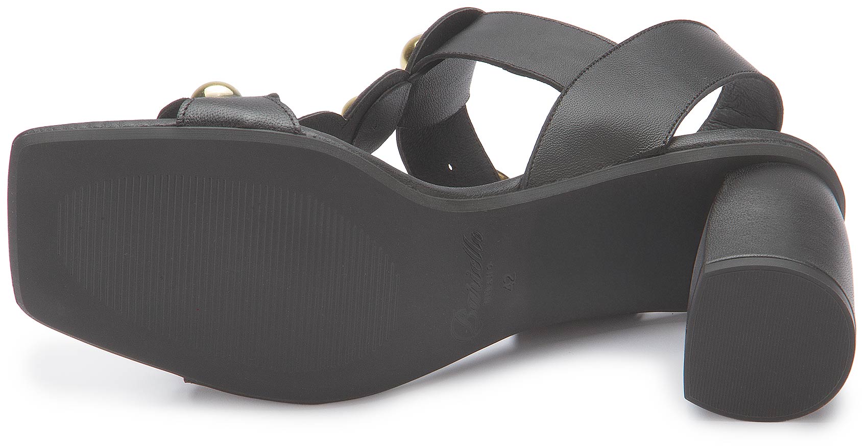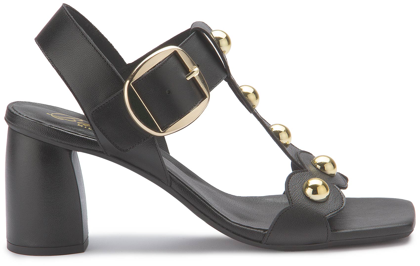Enhance your feminine look with this sandal from Bariello. The soft, smooth leather is high-quality and looks sophisticated. The large pin buckle in gold enhances the design and makes it easier to put on and take off. The sturdy block heel and padded leather sole also make this sandal super comfortable!