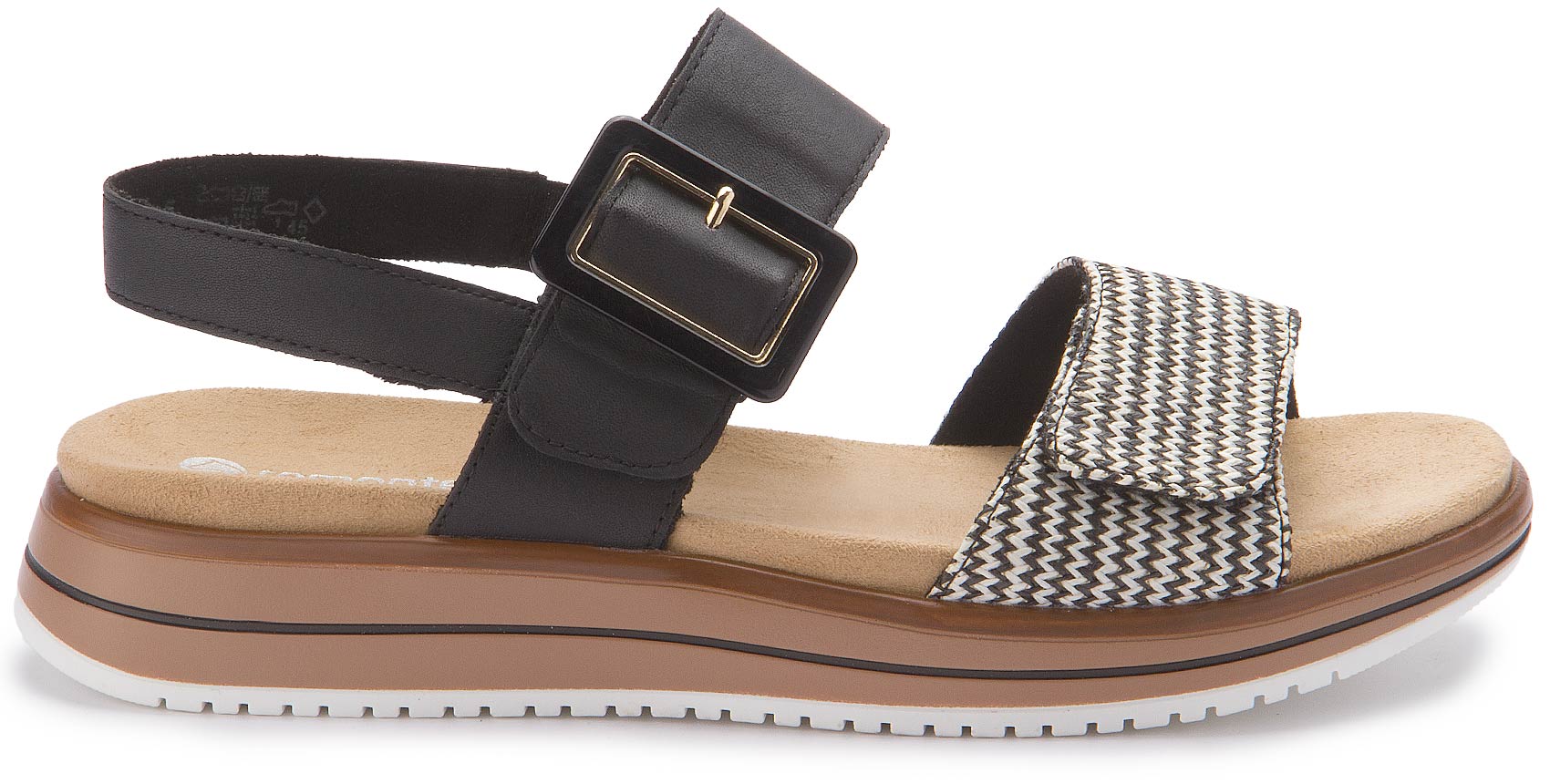 Remonte presents an elegant sandal in black. This high-quality and comfortable combination of design and functionality makes it a perfect companion for various occasions. The renowned German manufacturer Remonte stands for quality and comfort, and this sandal is no exception. The Velcro fastening allows for individual adjustment and easy on and off, while the textile inner material ensures pleasant ventilation. With this shoe, you can rely on style and comfort in equal measure.