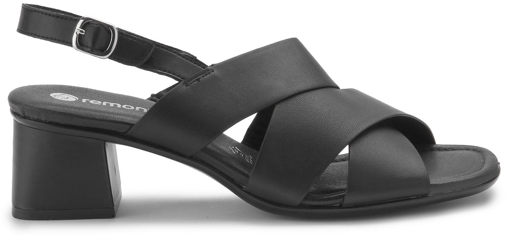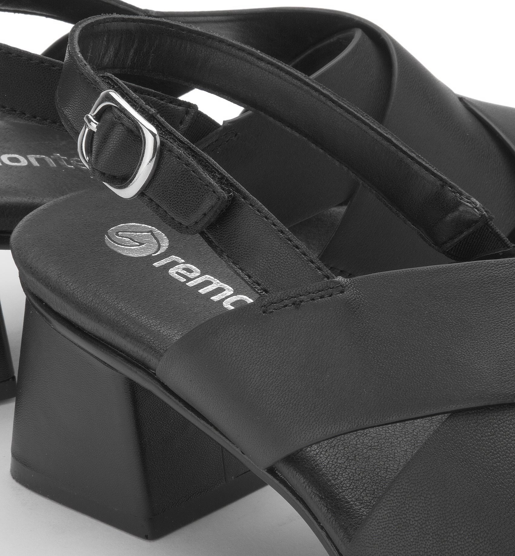 Compromise is not the answer! These black remonte strappy sandals made of smooth leather will keep you cool and casual, yet stylish. Crossed straps and a Velcro fastener, together with the narrow heel strap, ensure ideal support. The block heel sole is both lightweight and cushioning, offering double the comfort with every step. The inner lining made of breathable leather guarantees a natural foot climate. More comfort is not possible!