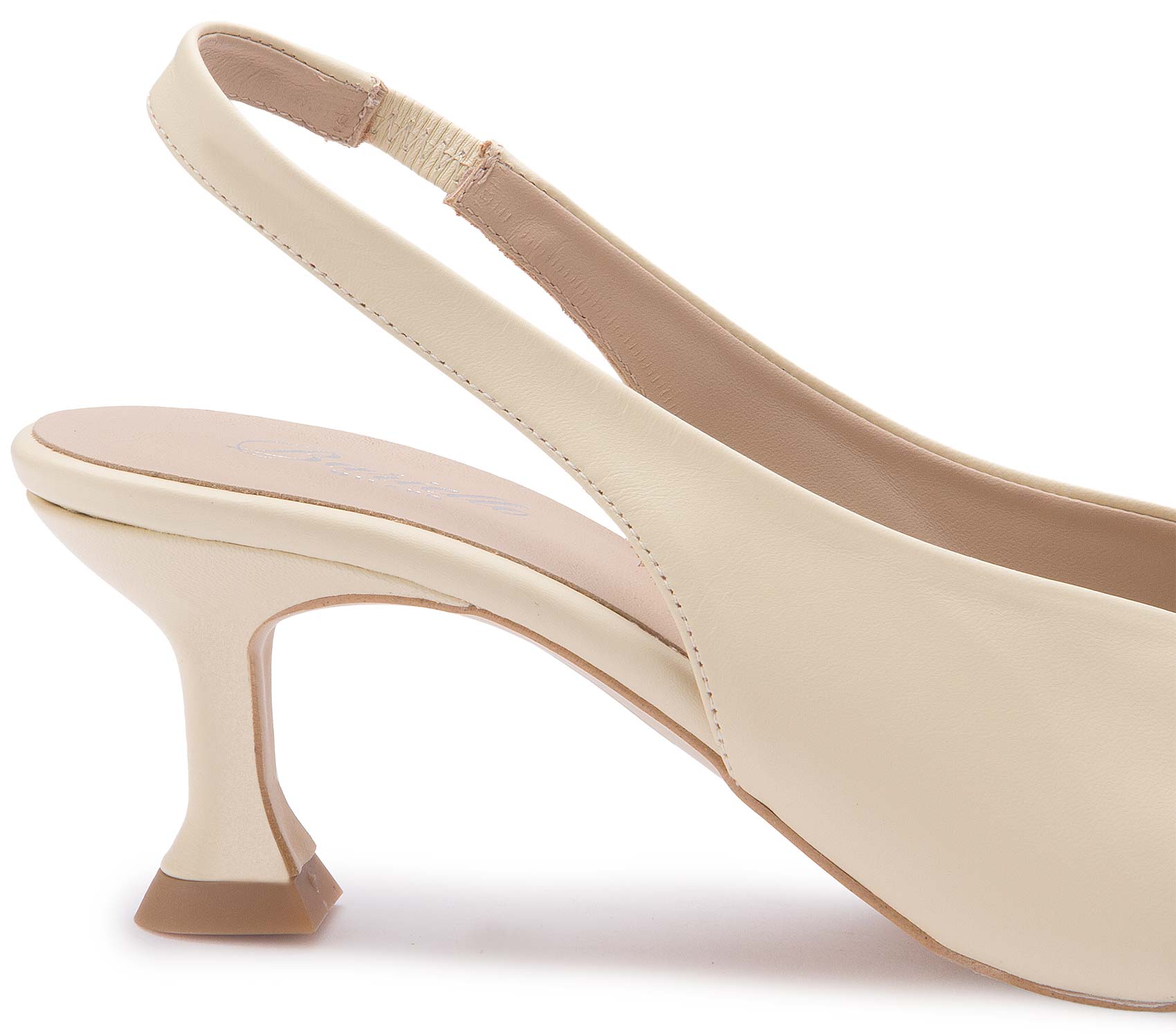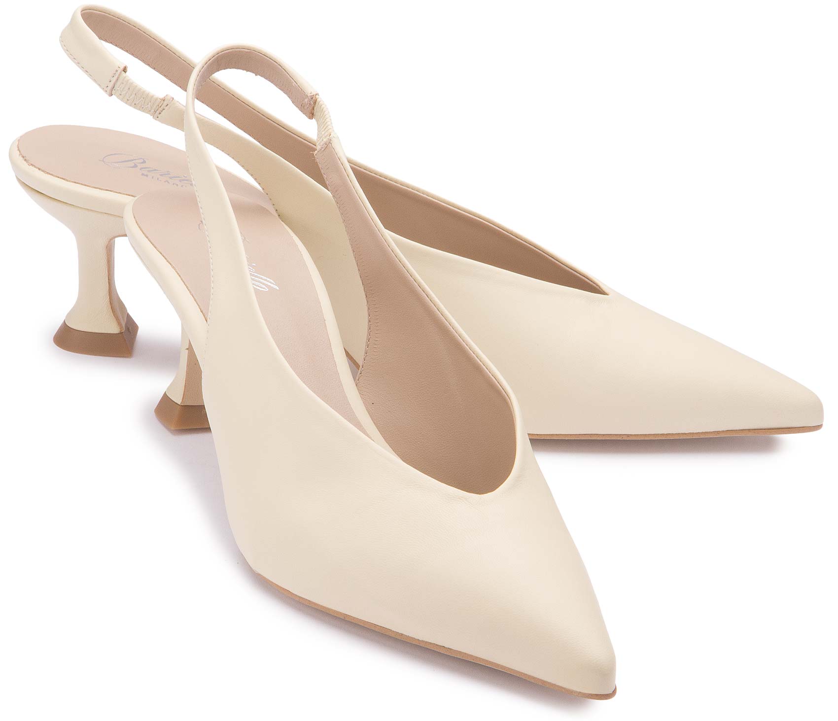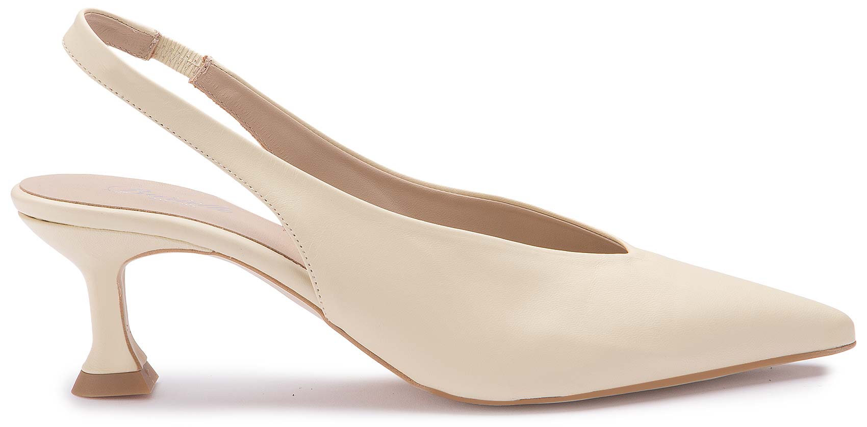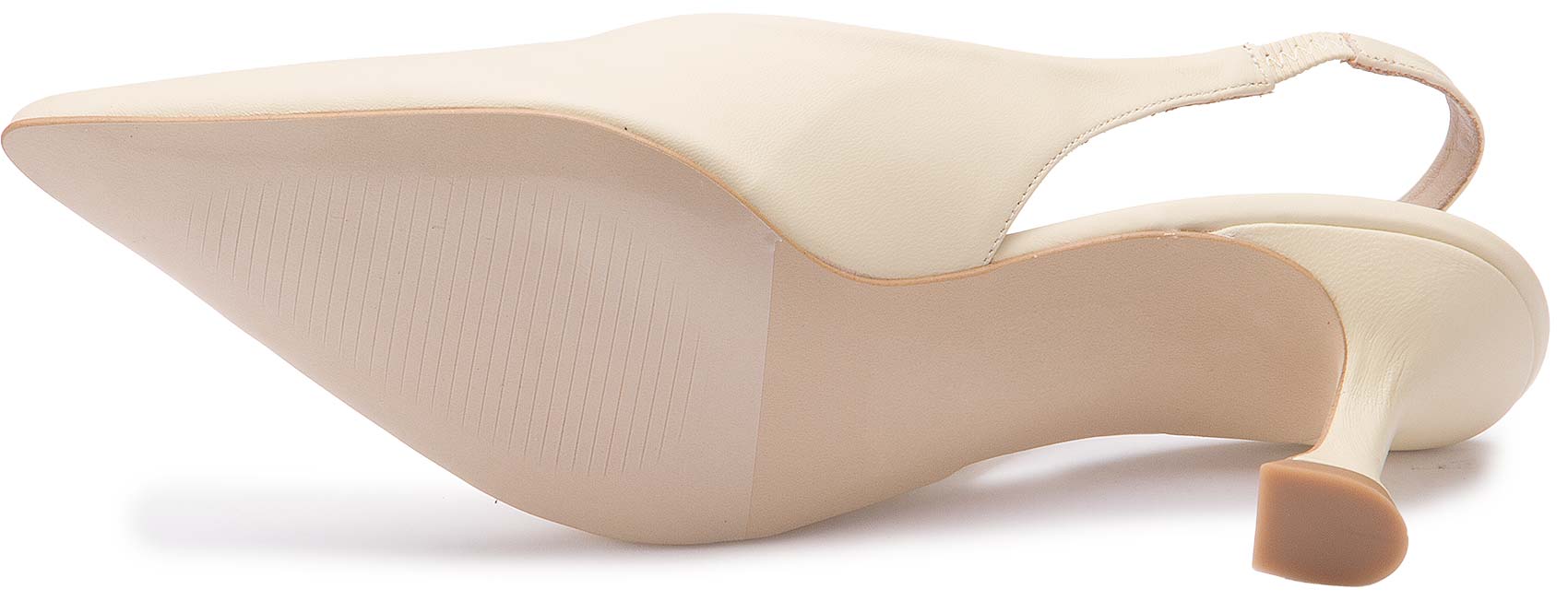 Diese eleganten Slings überzeugen mit ihrem puristischen Design und einer edlen, spitz zulaufenden Silhouette. Das glatte Obermaterial in hellem Ton verleiht dem Schuh eine zeitlose Leichtigkeit, während der raffinierte Absatz für einen modernen Akzent sorgt. Dank des elastischen Fersenriemens bieten sie angenehmen Halt und sind die perfekte Wahl für stilvolle Auftritte.