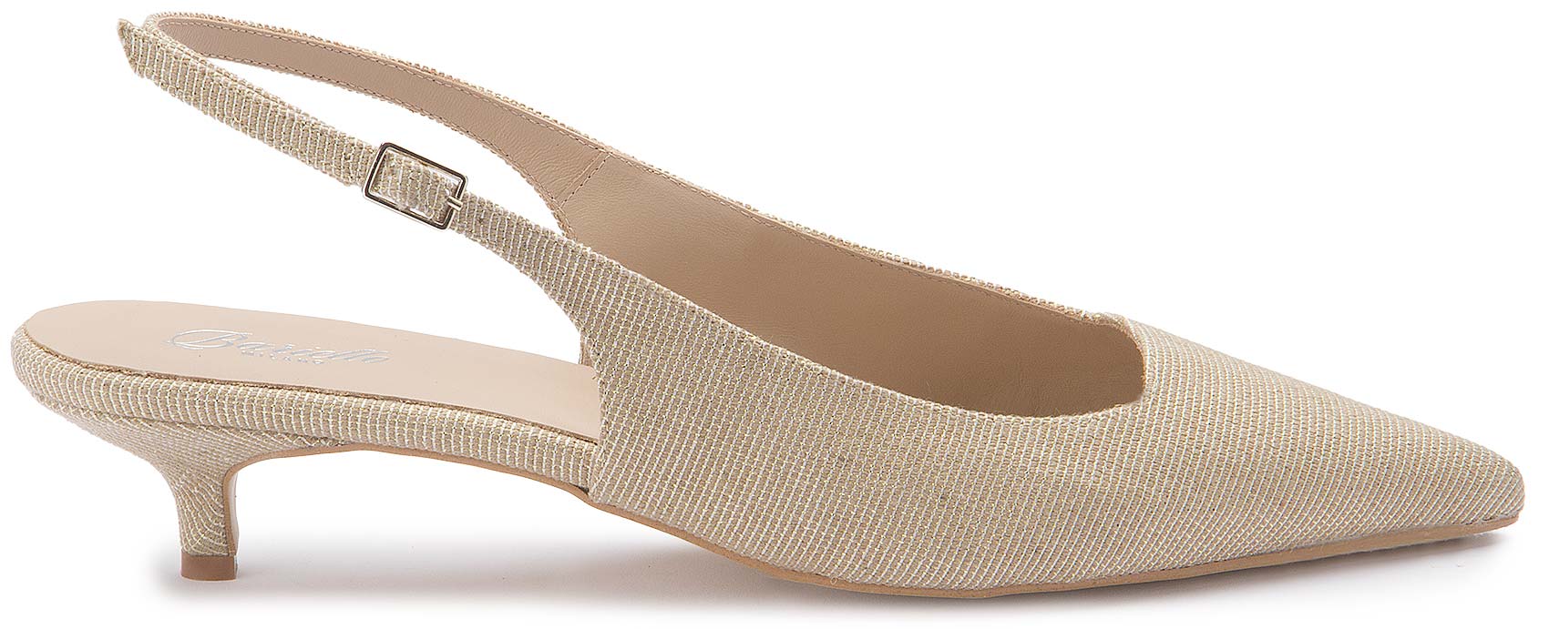 Diese edlen Slings von Bariello überzeugen mit ihrem eleganten Design und der zarten beigem Obermaterial. Der spitz zulaufende Schnitt und der Absatz verleihen jedem Outfit einen femininen, raffinierten Look – ideal für besondere Anlässe oder einen stilvollen Auftritt.