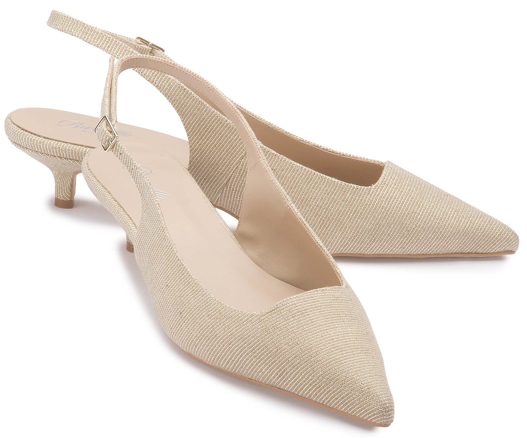 Diese edlen Slings von Bariello überzeugen mit ihrem eleganten Design und der zarten beigem Obermaterial. Der spitz zulaufende Schnitt und der Absatz verleihen jedem Outfit einen femininen, raffinierten Look – ideal für besondere Anlässe oder einen stilvollen Auftritt.
