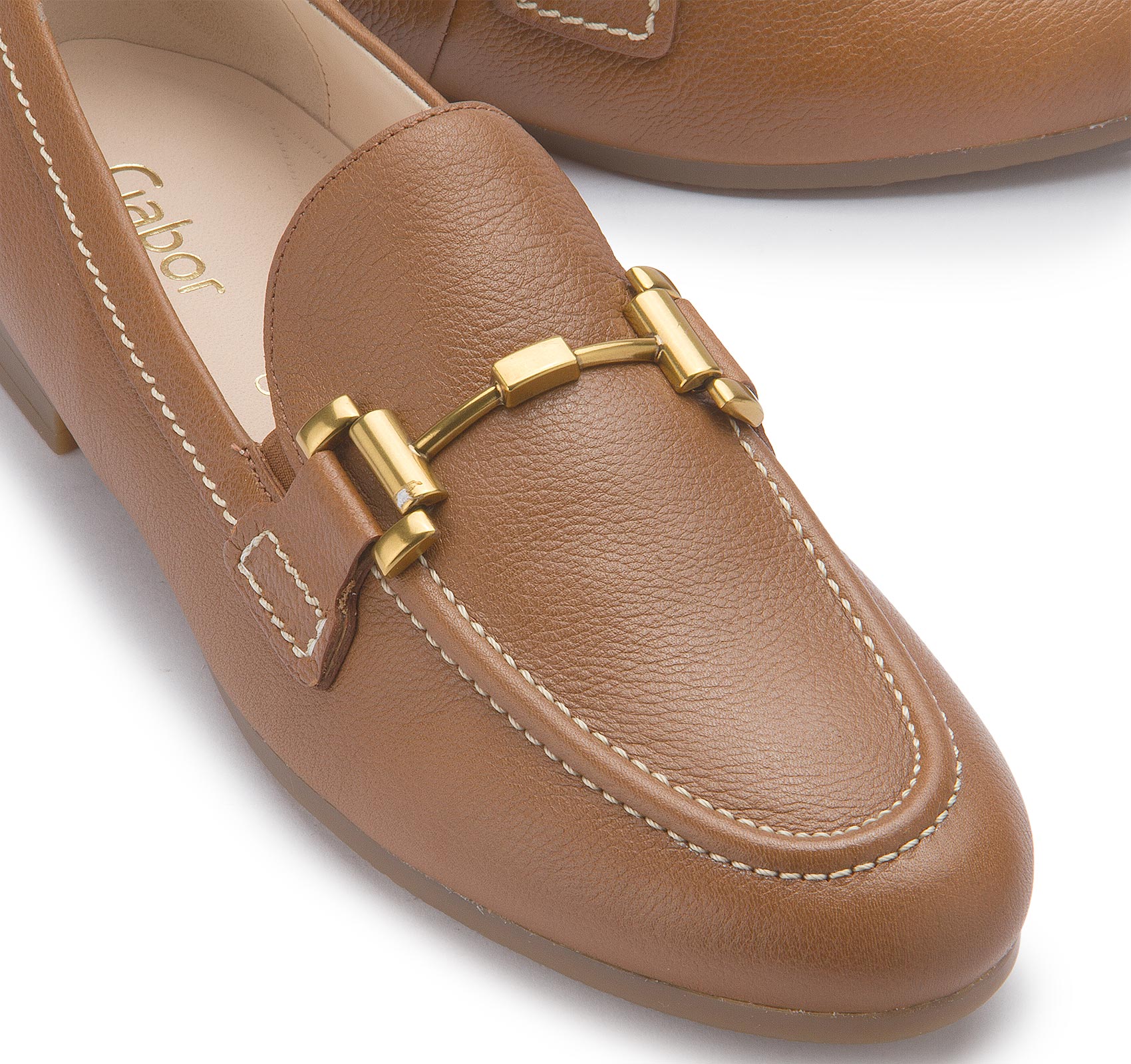 Gabor delights with a new shoe model! The slip-on shoe made from high-quality leather is an absolute eye-catcher. The pleasant material and leather lining guarantee maximum comfort. The gold-colored bridle gives the slip-on shoe an elegant touch and adds a stylish accent. A must-have for anyone who appreciates comfort and style.